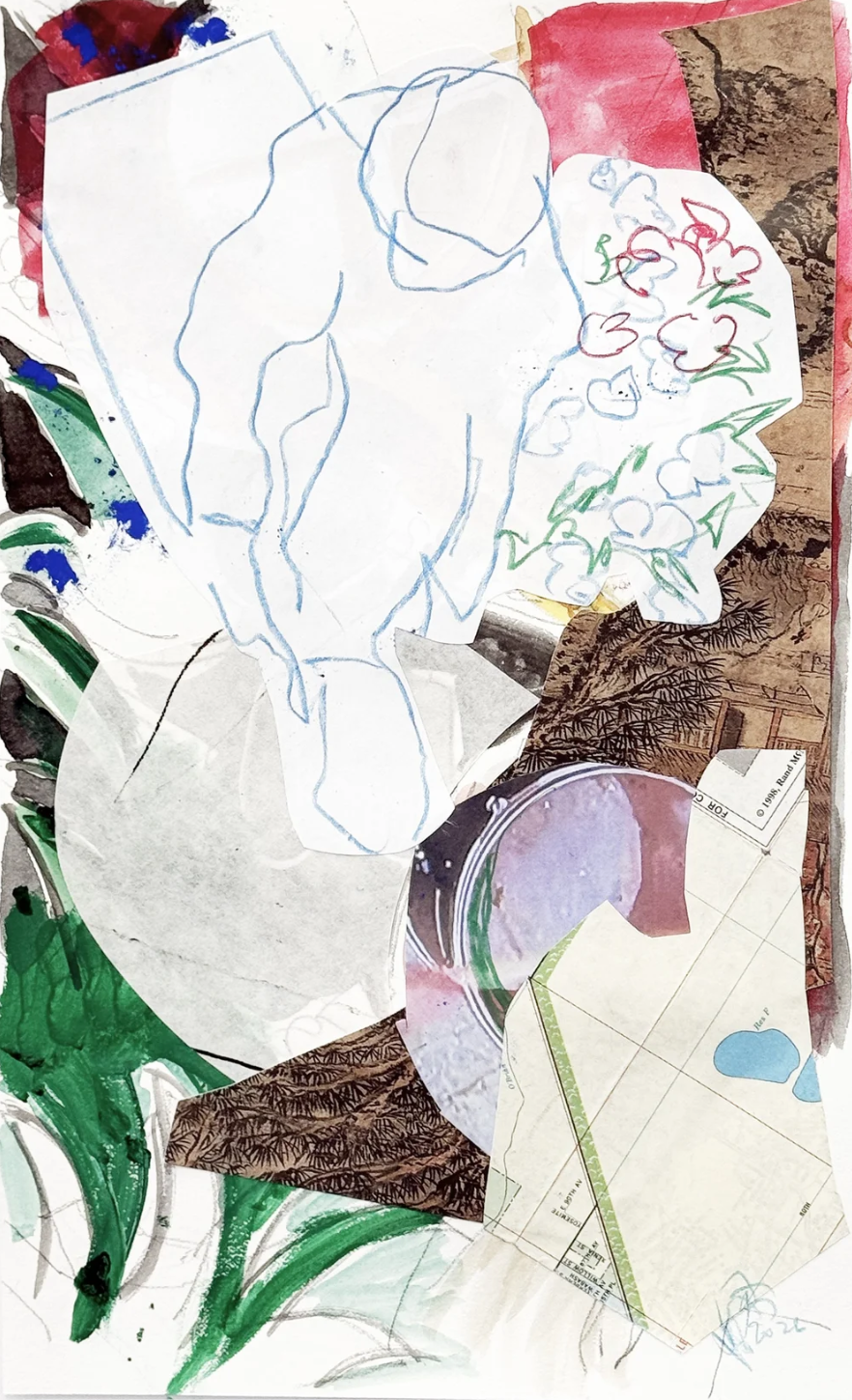 towards sundown, 7x11” 2026, gouache and collage on paper