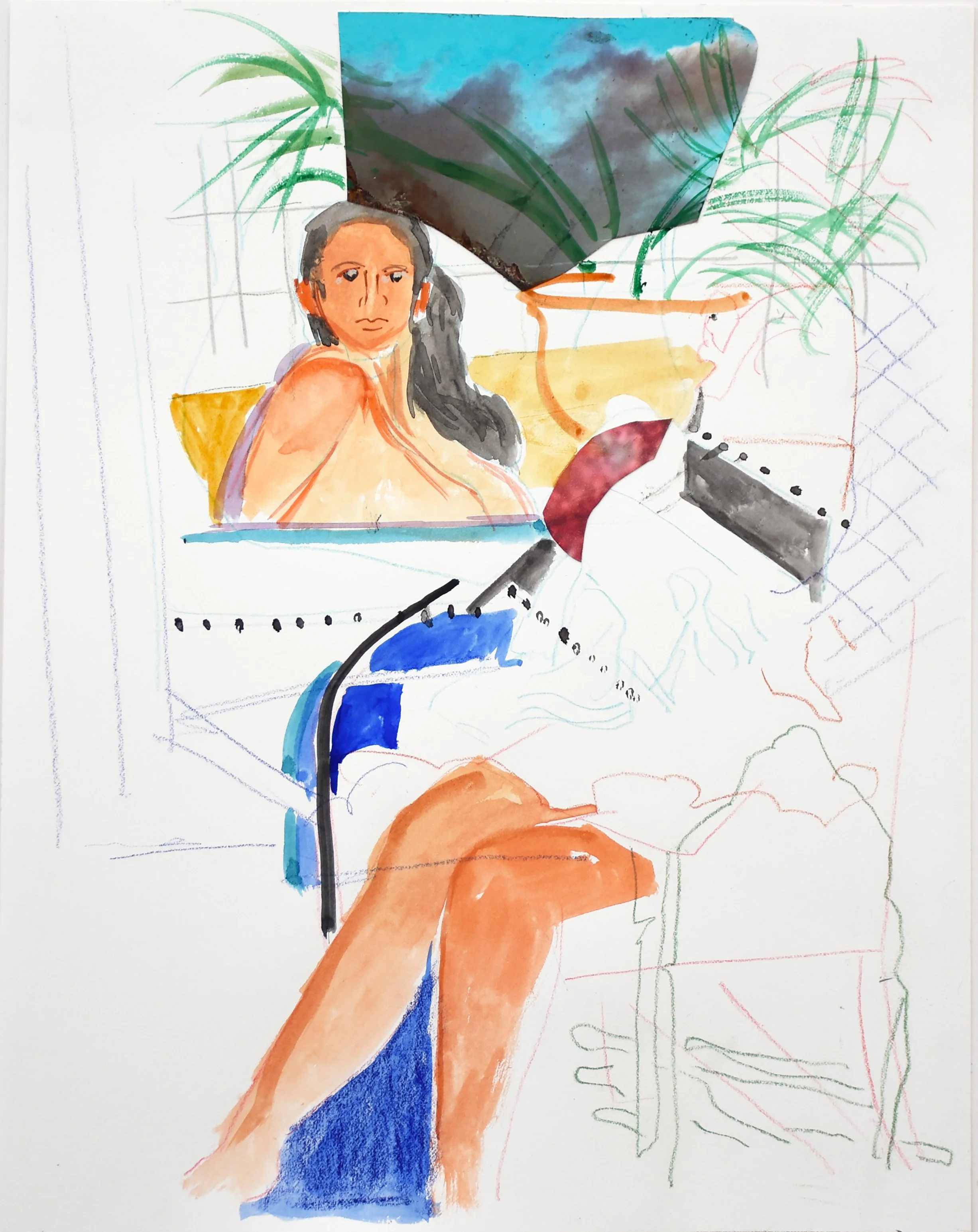 bathing, 11 1/2x14 1/2” watercolor & collage on bristol paper