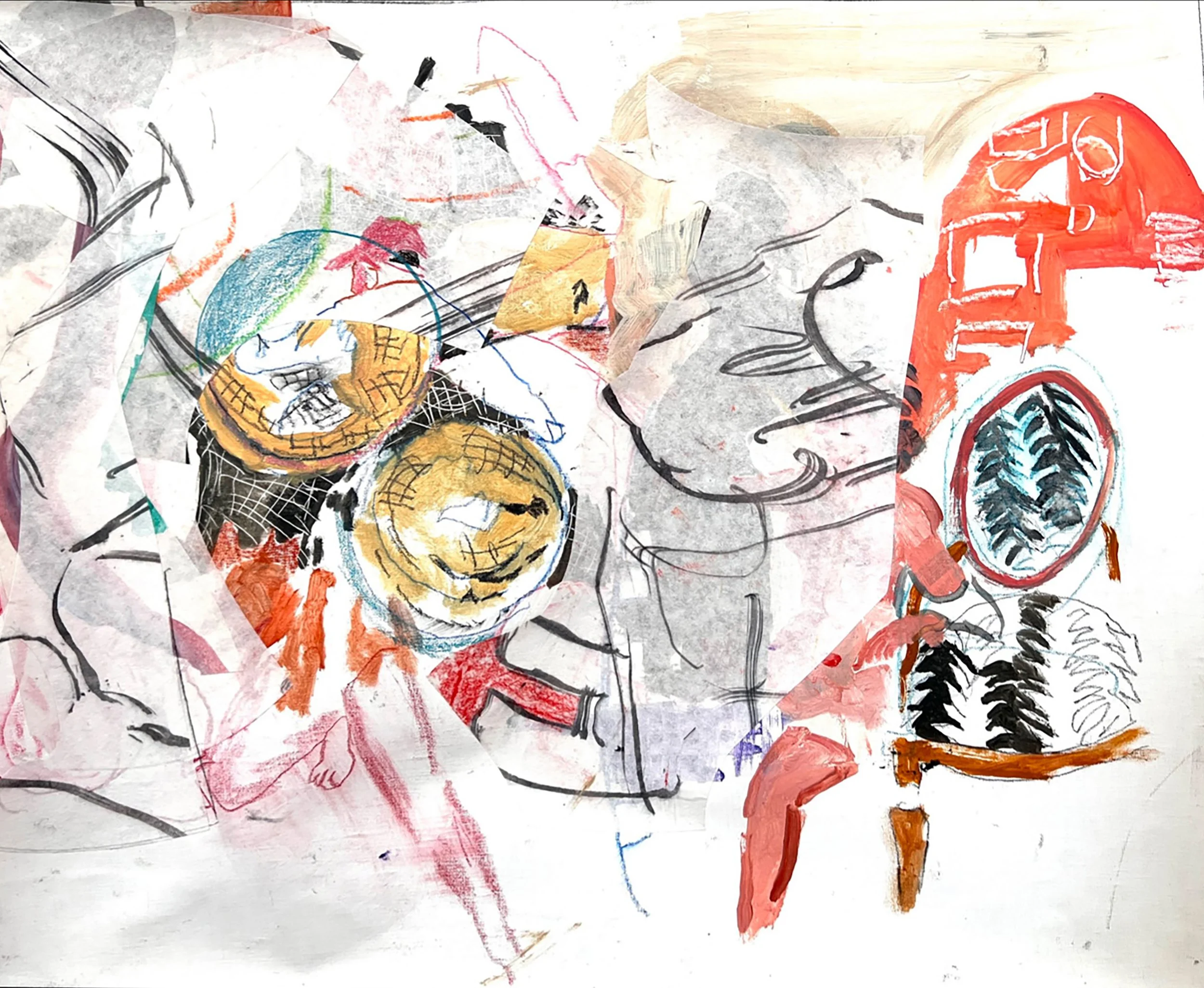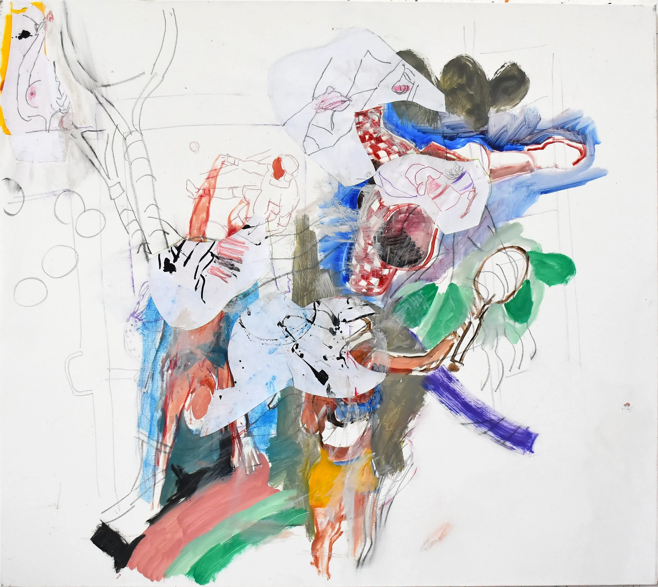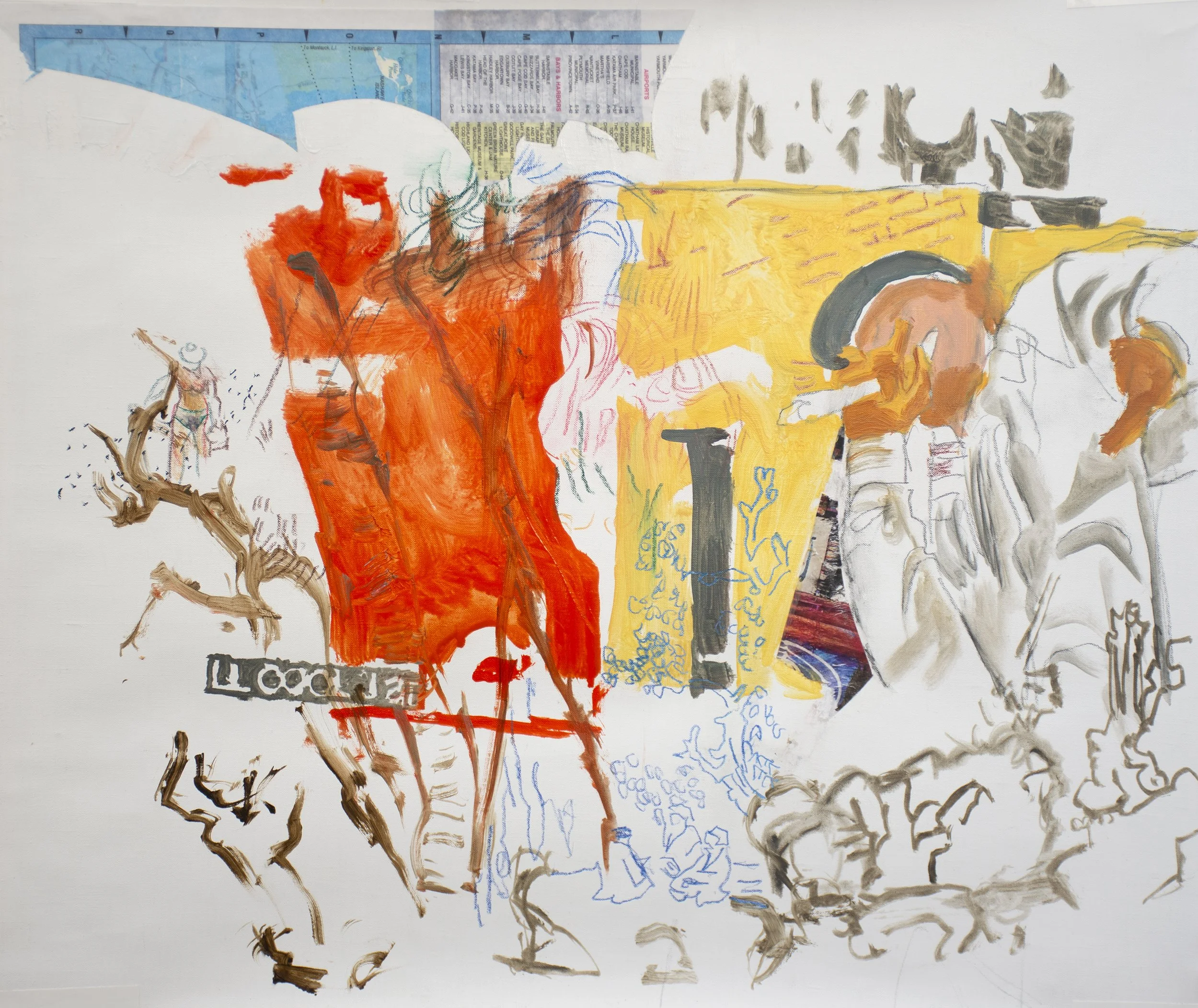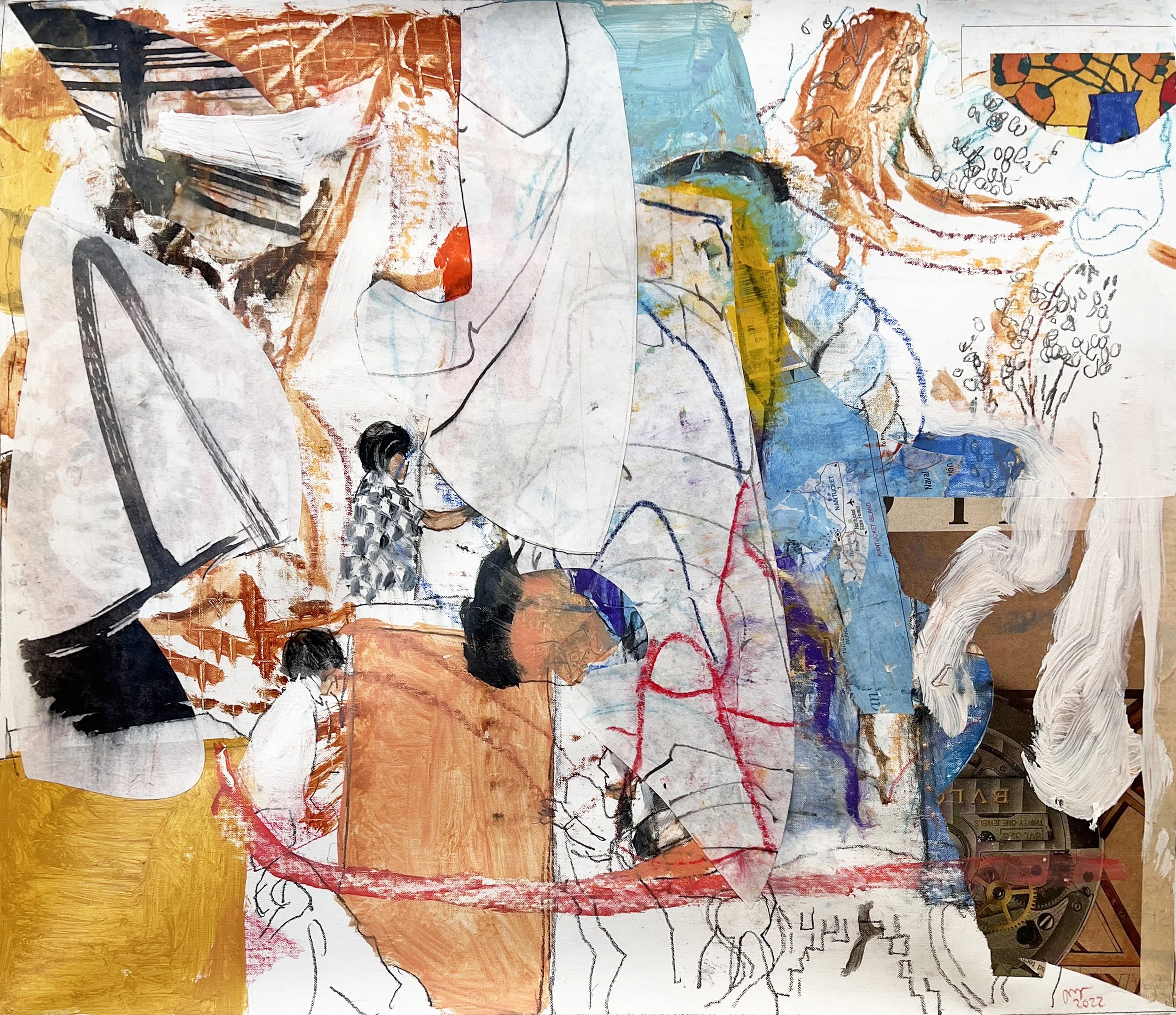 9/22/2021 painting/collage 42 x 54 in. oil, oil stick and collage on portrait linen