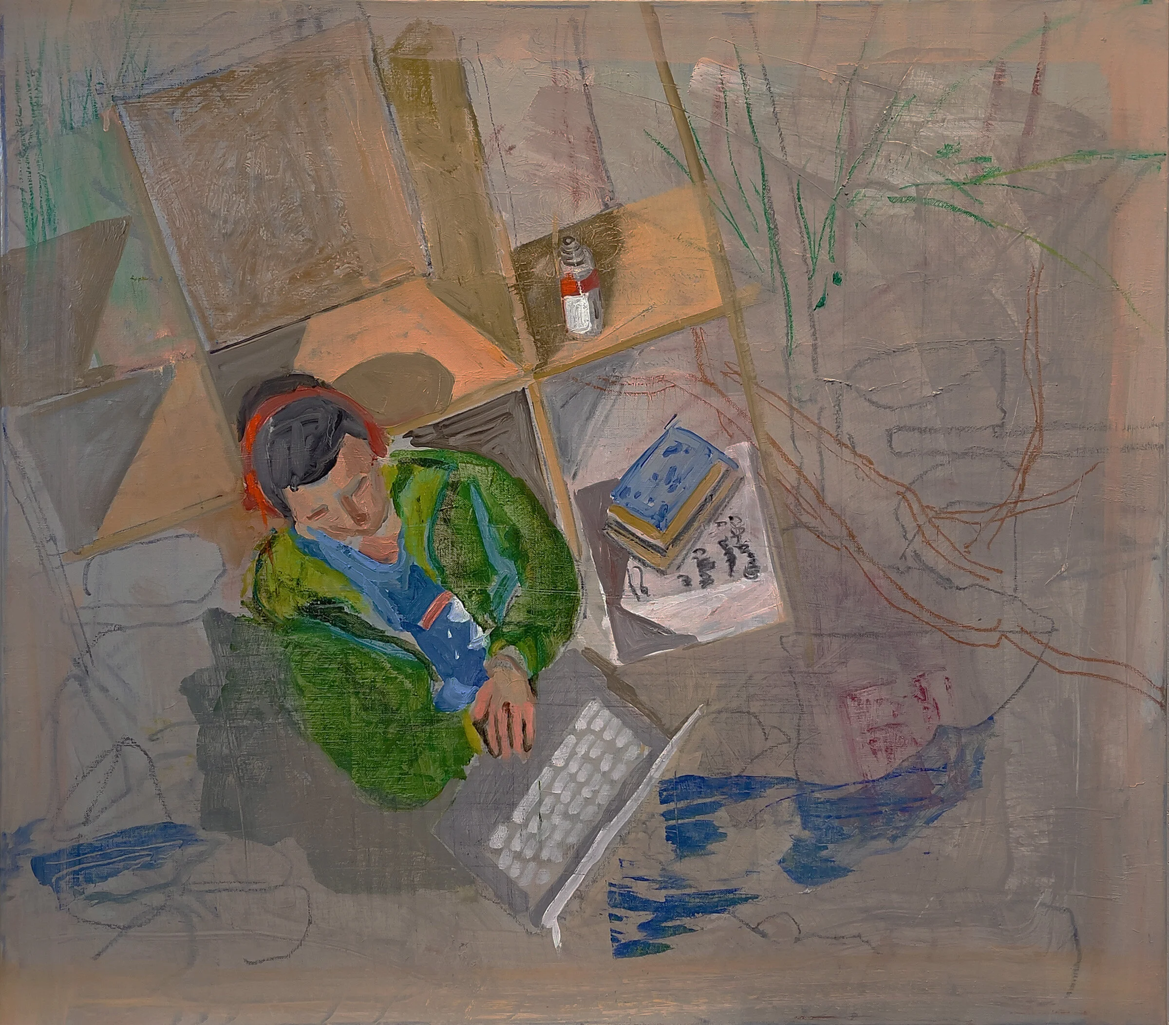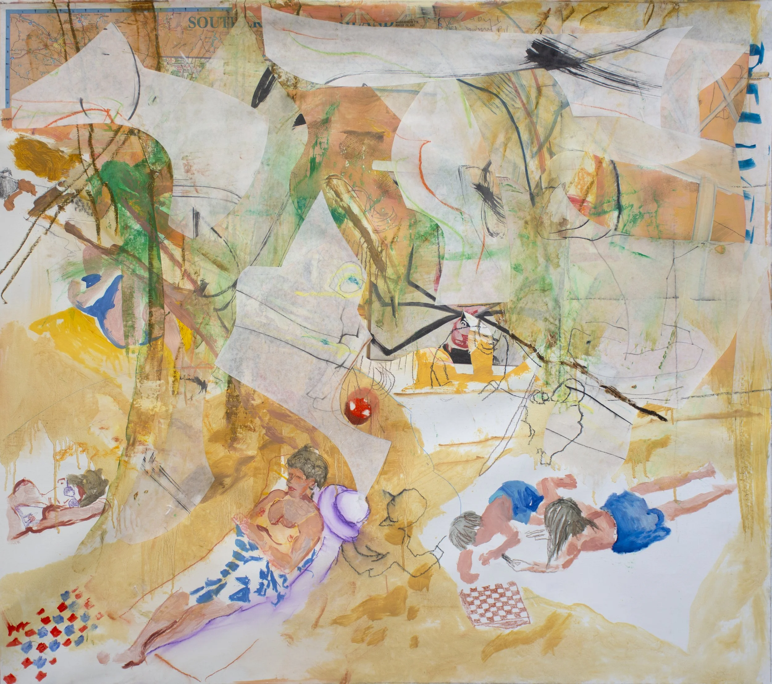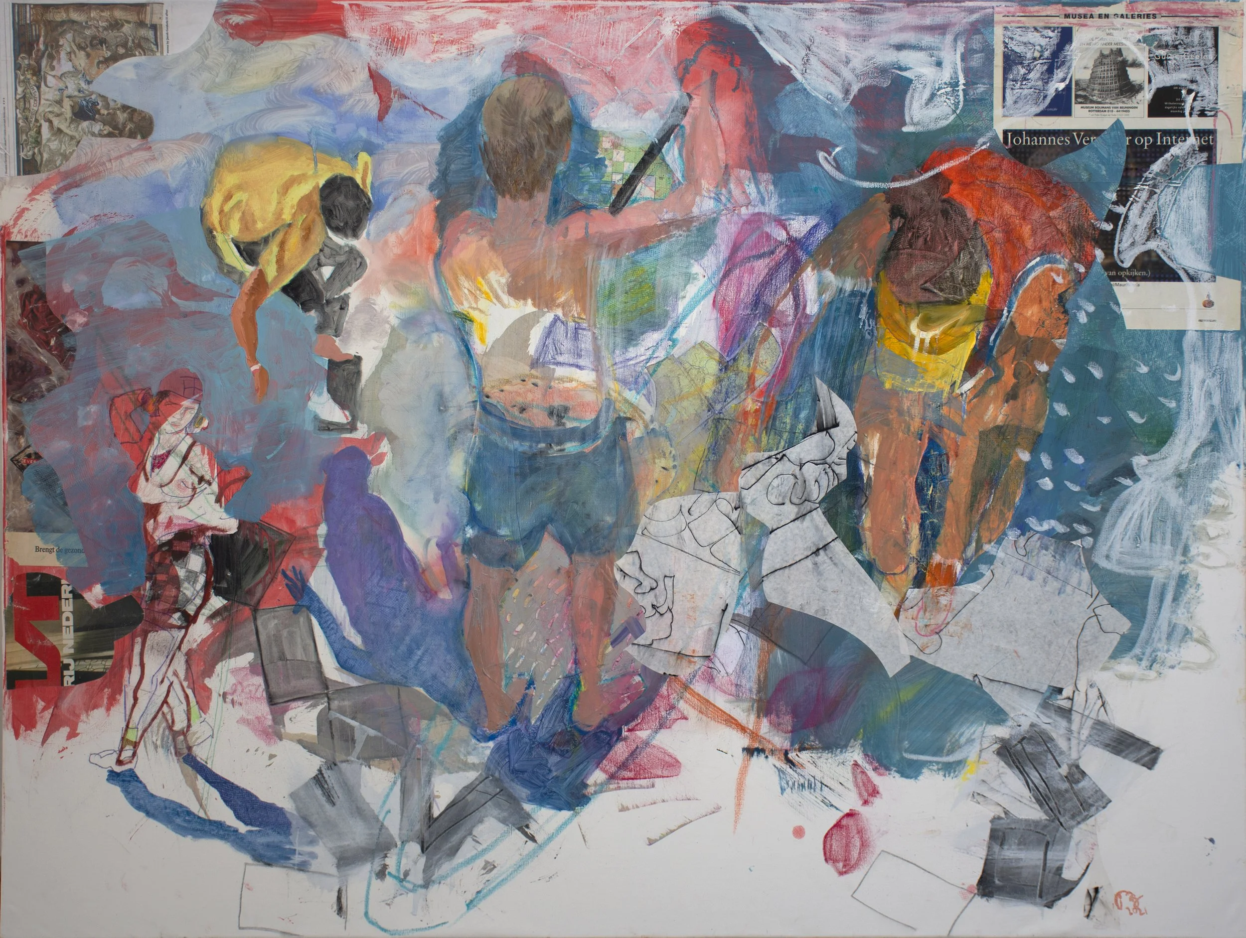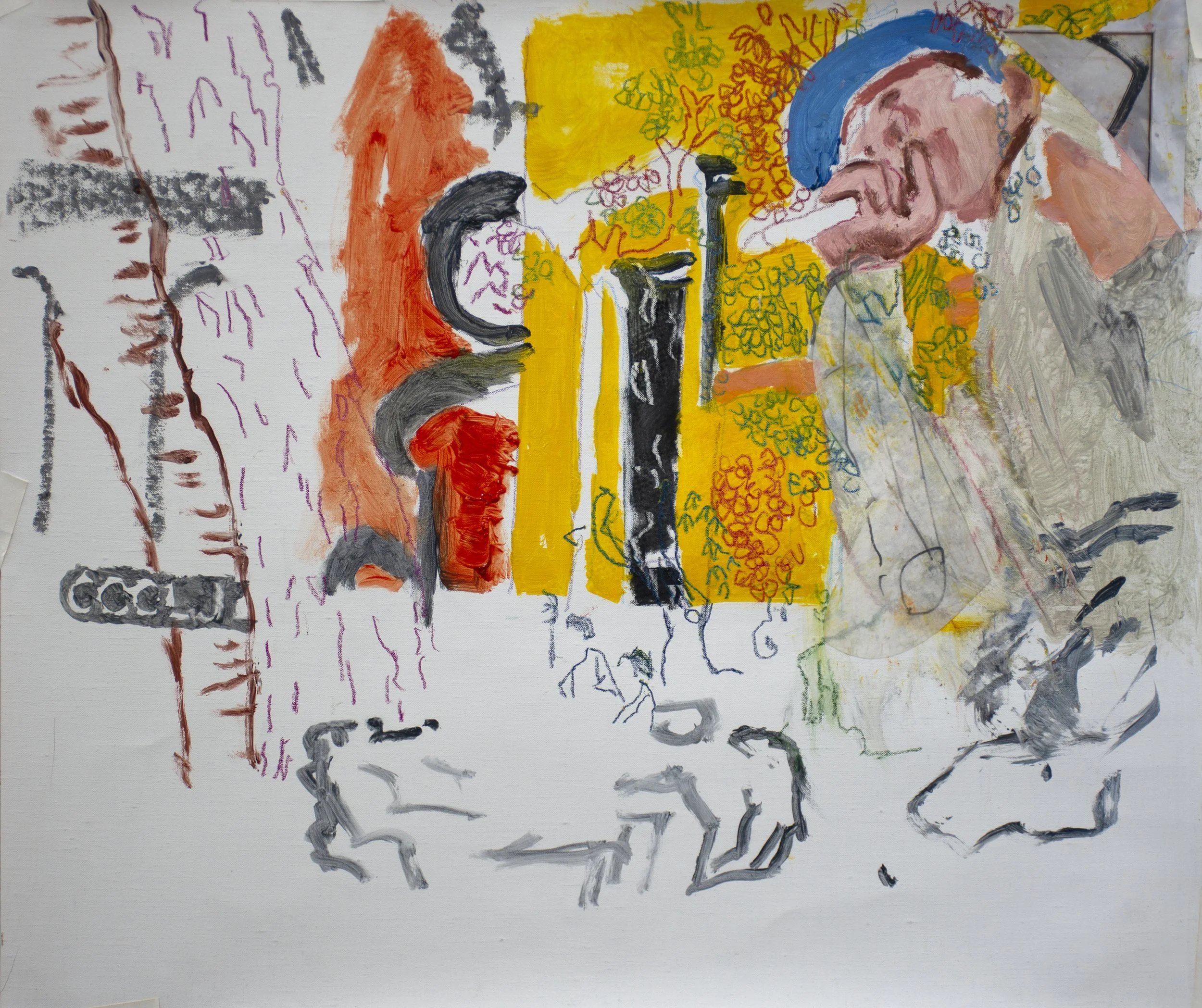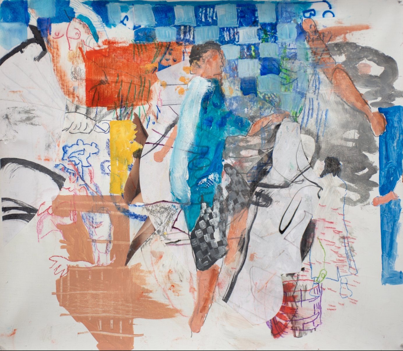 9/22/2021 painting/collage 42 x 54 in. oil, oil stick and collage on portrait linen