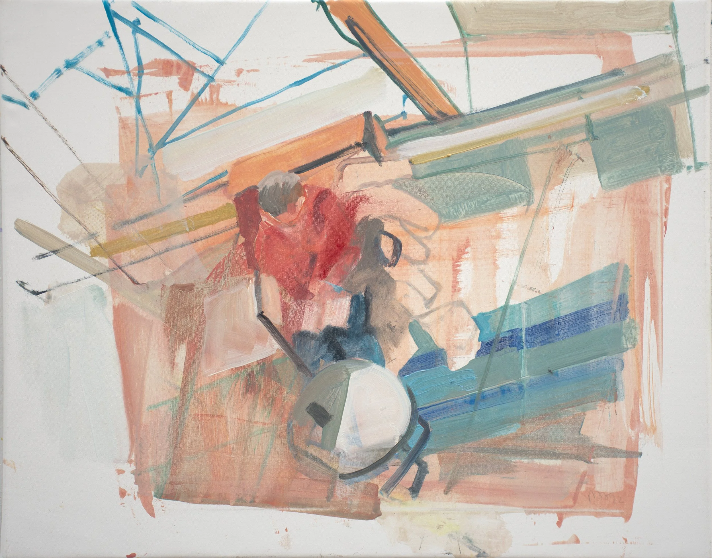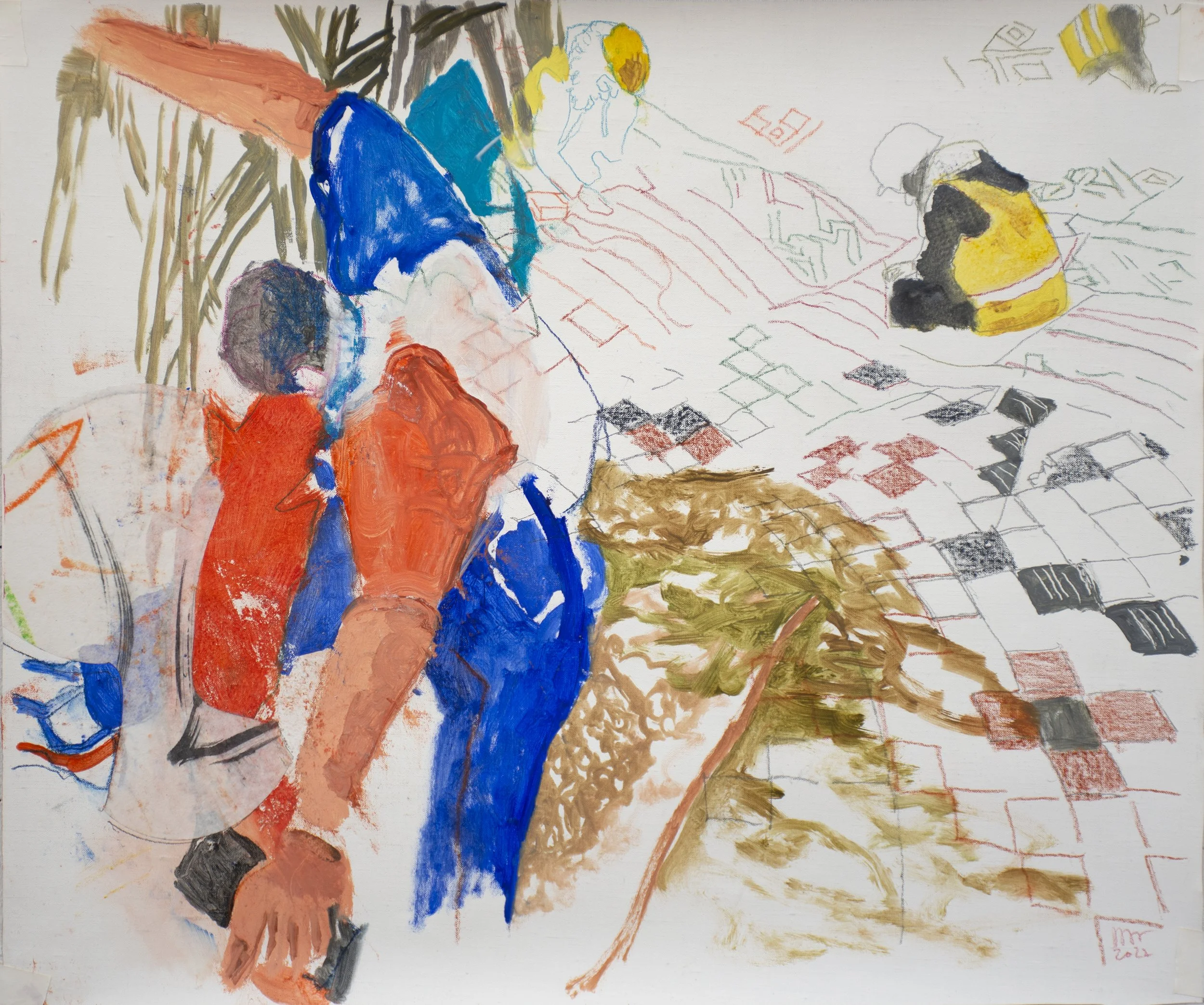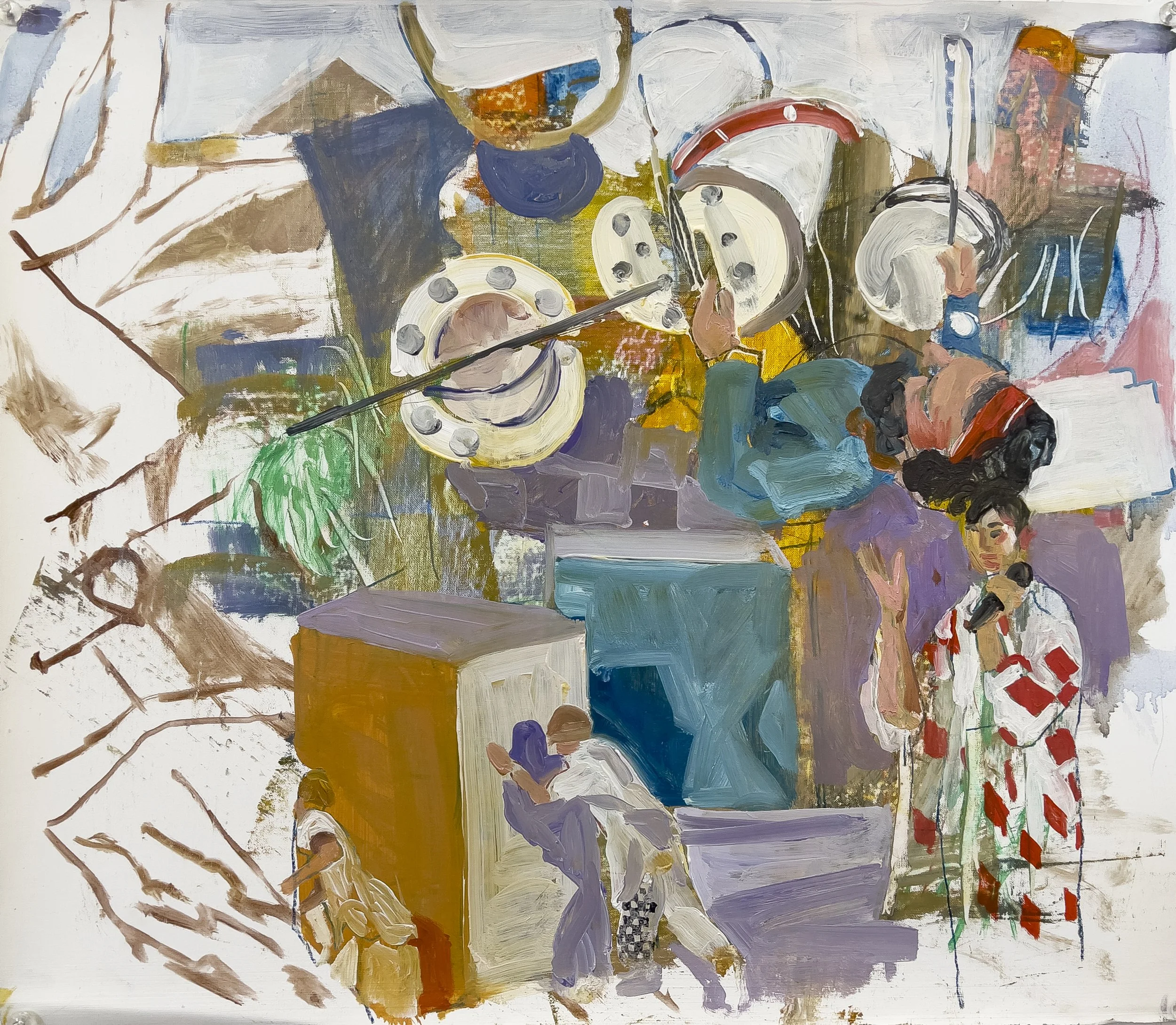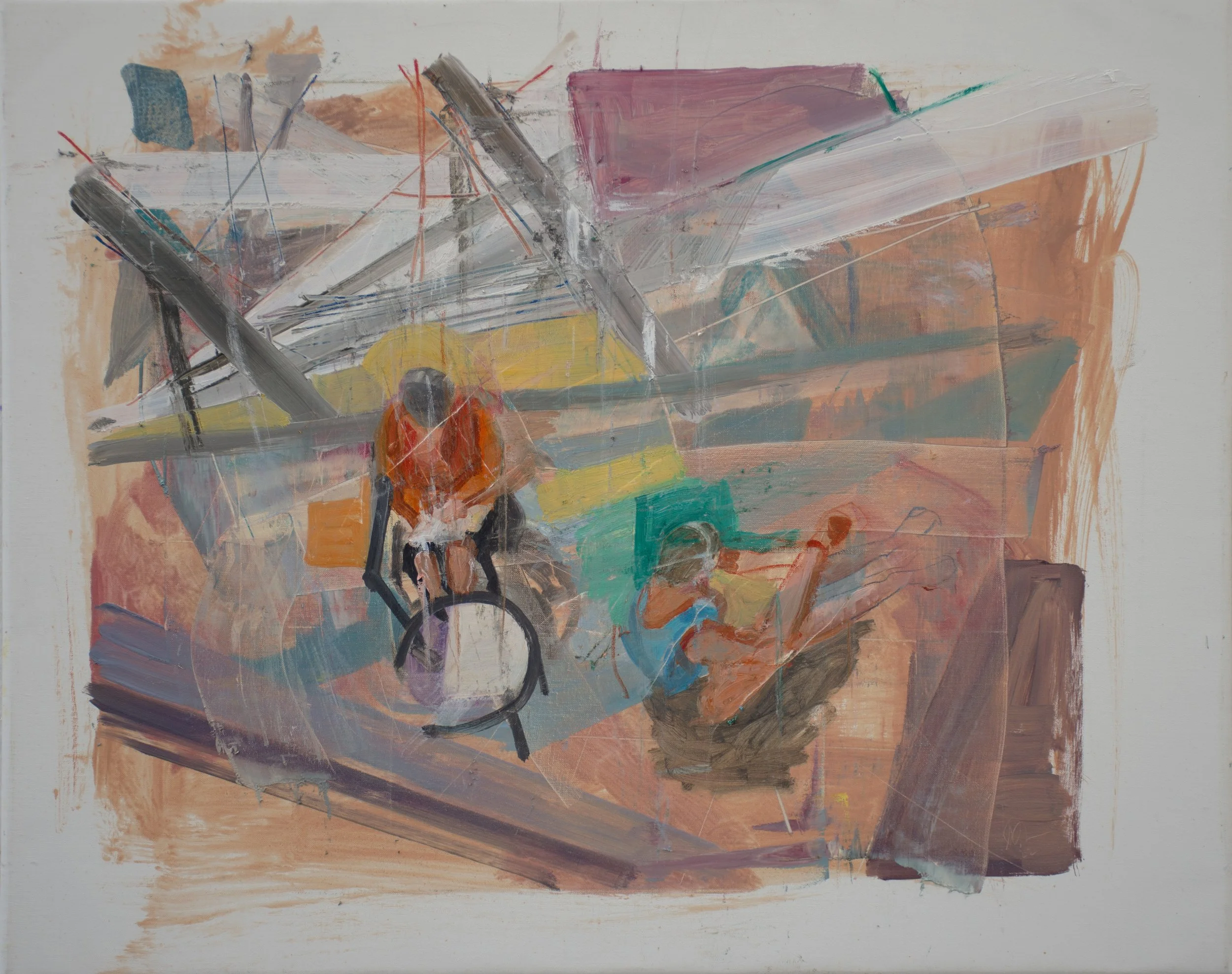 DETAIL:ndancing creek II,oil & collage on portrait linen, 2024
