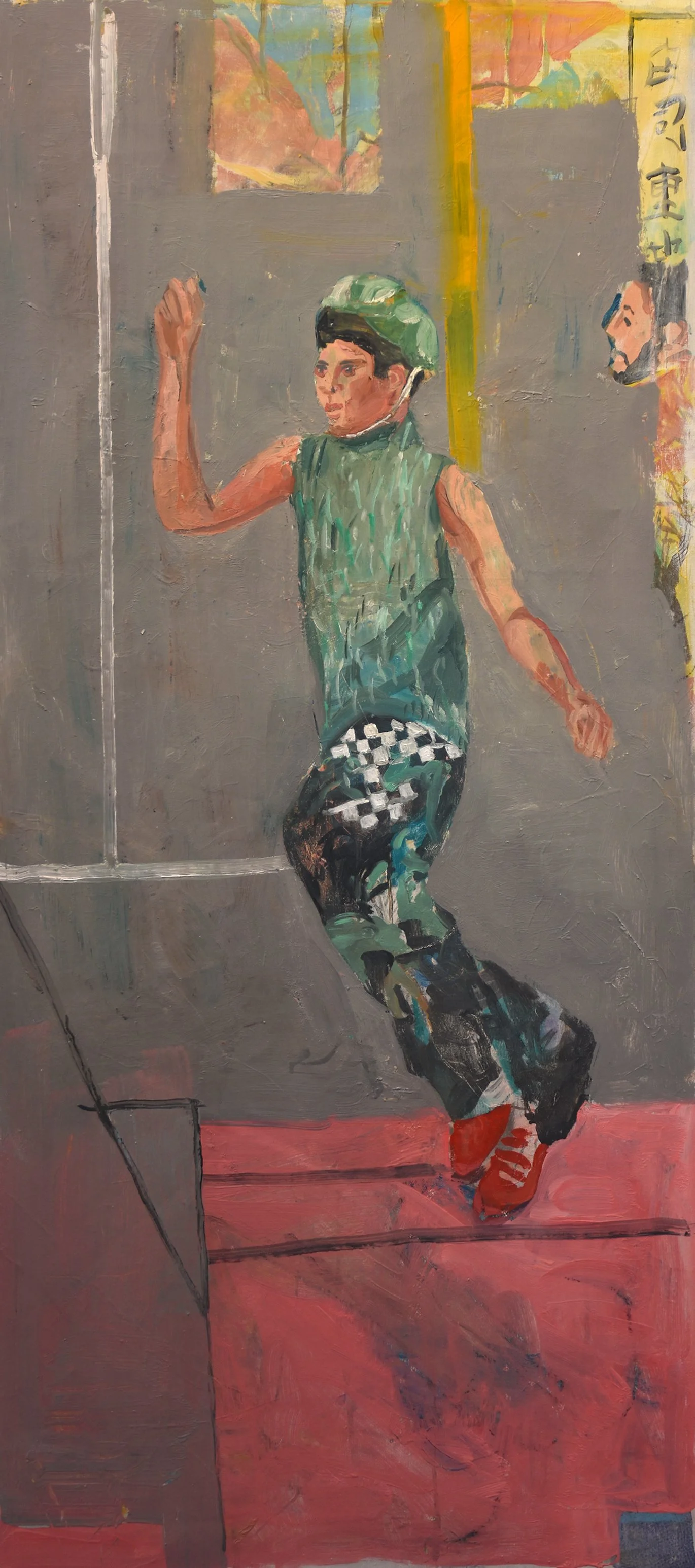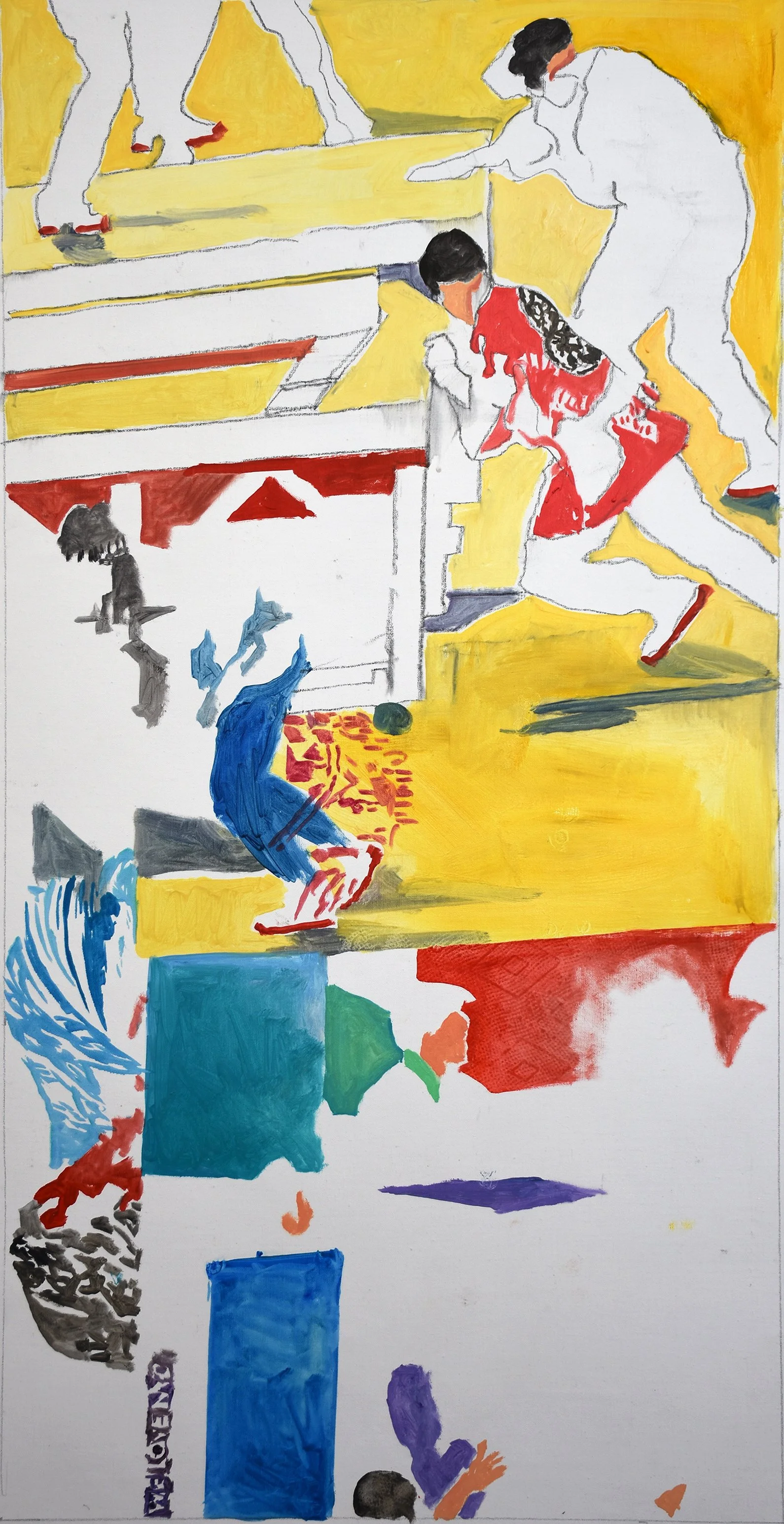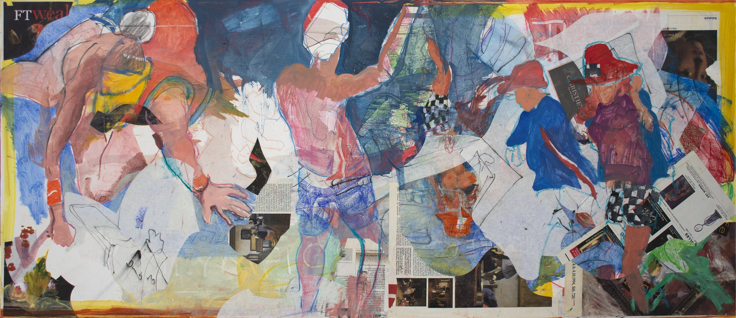 tokyo olympics 1 16x40” oil & collaged paper on portrait linen