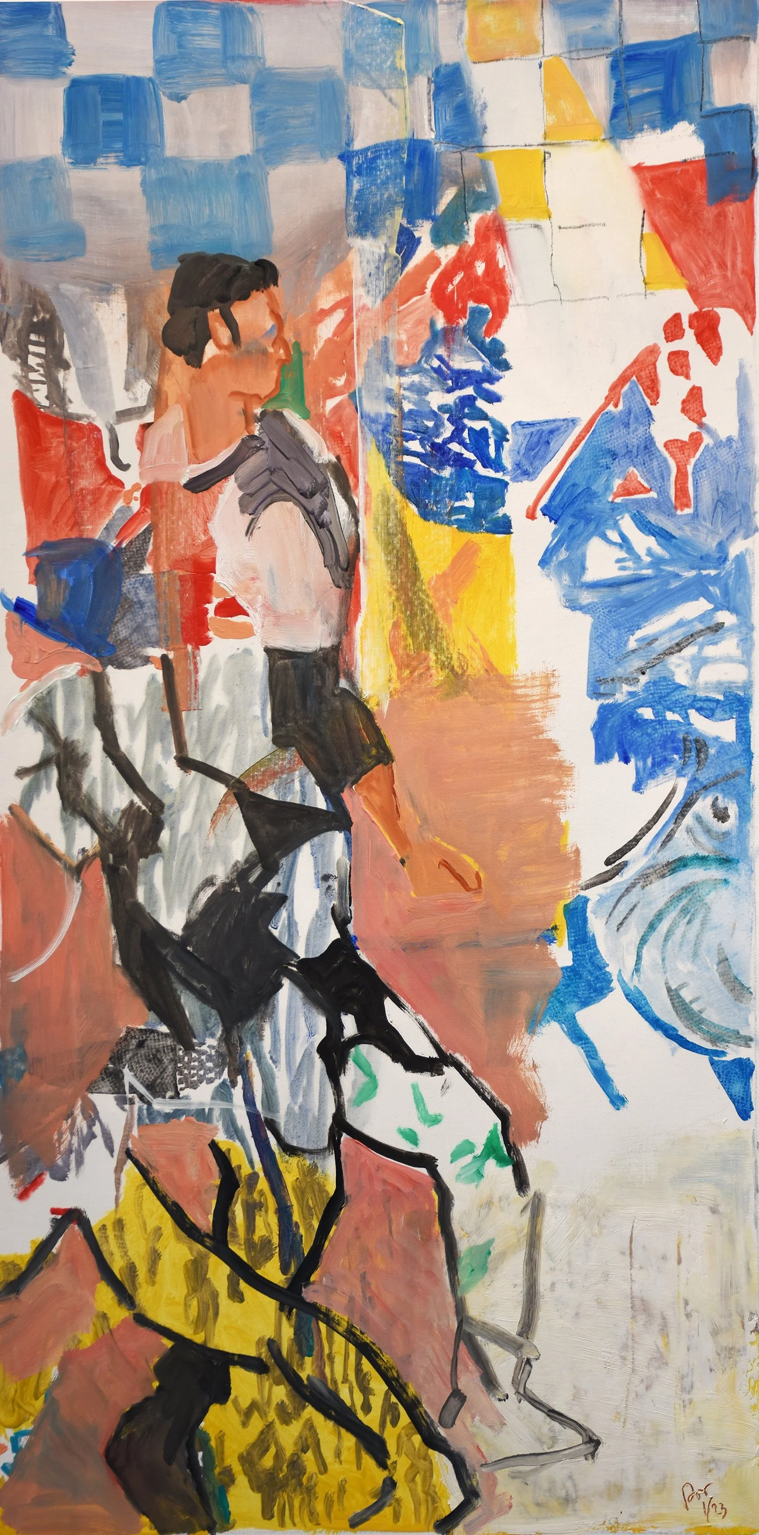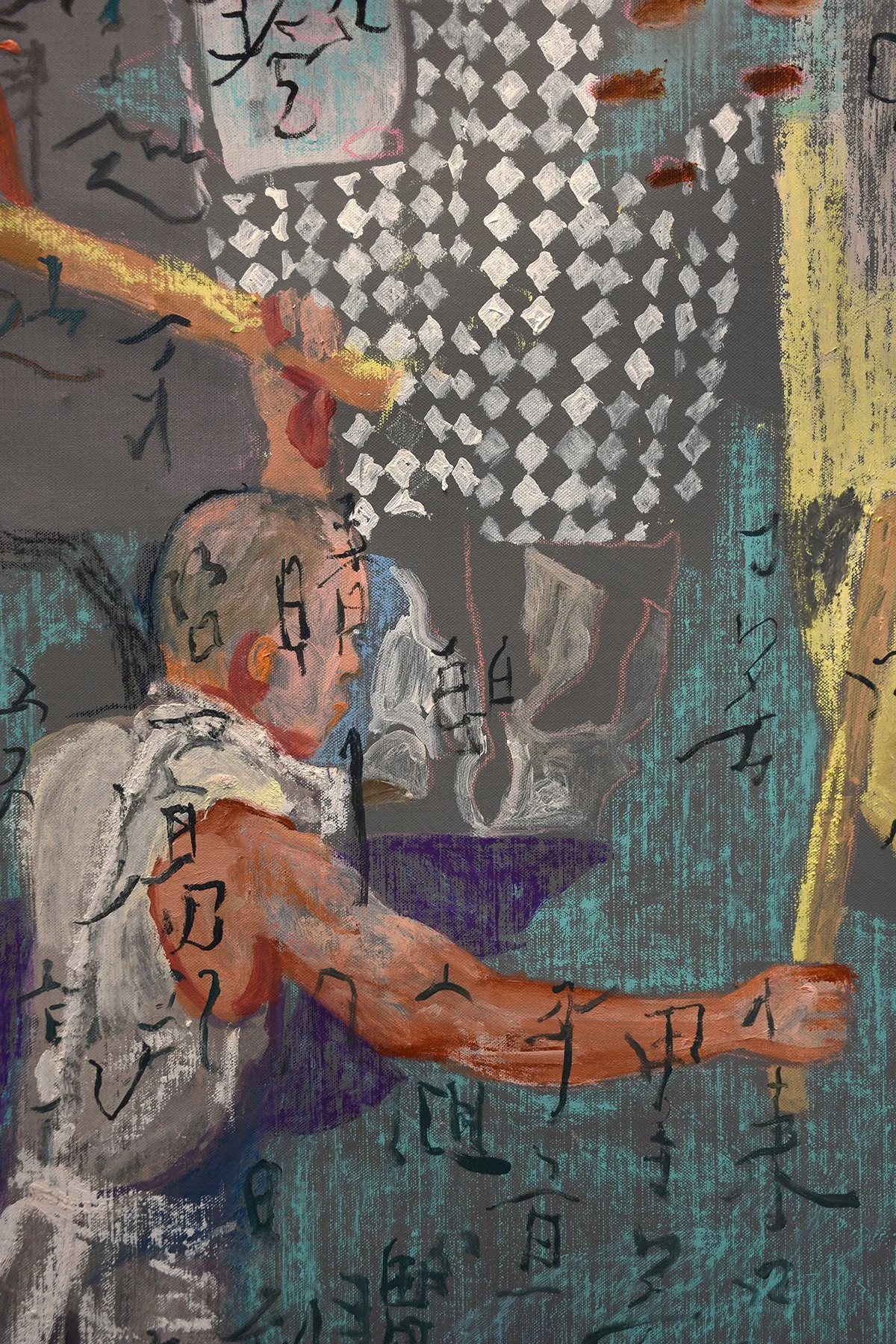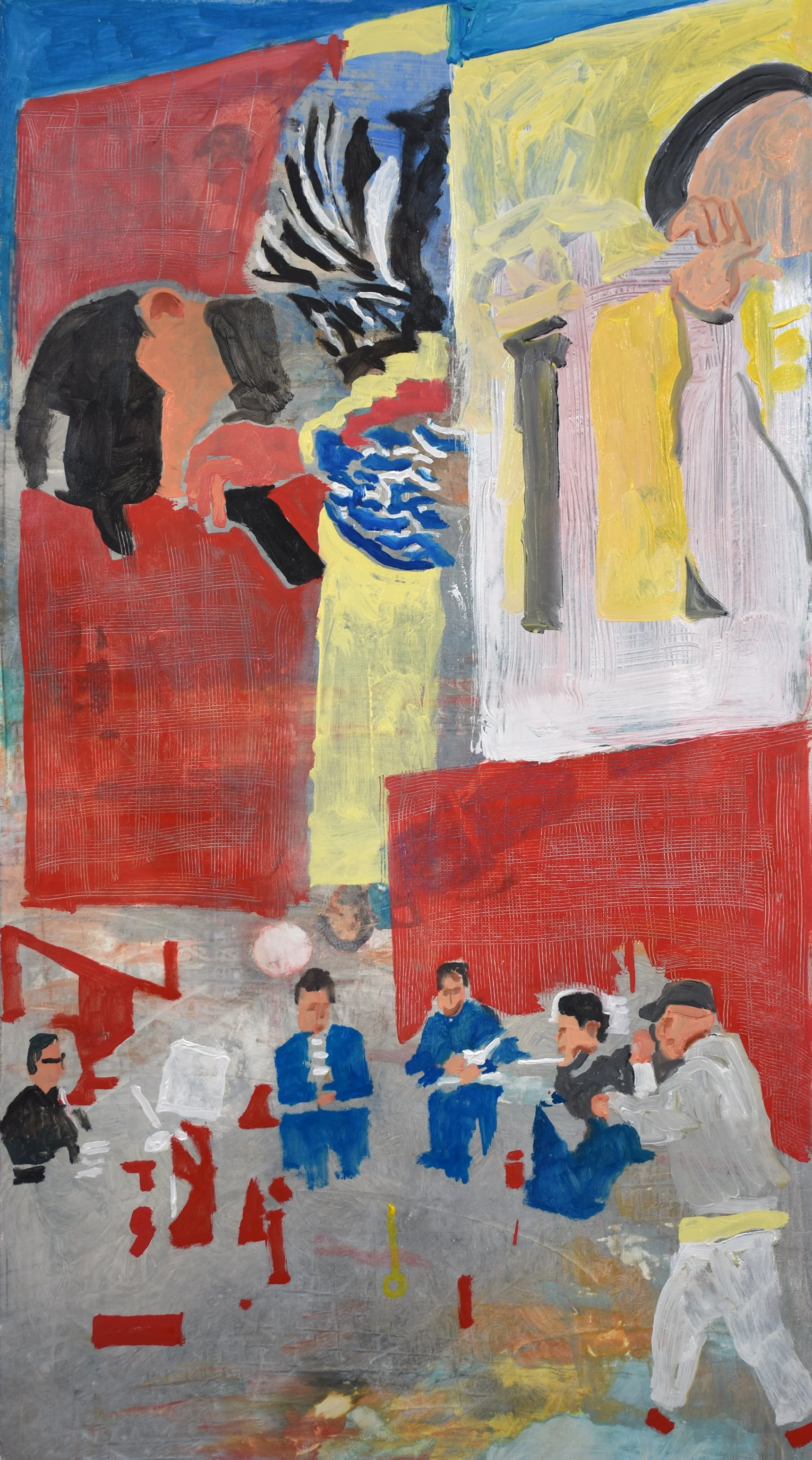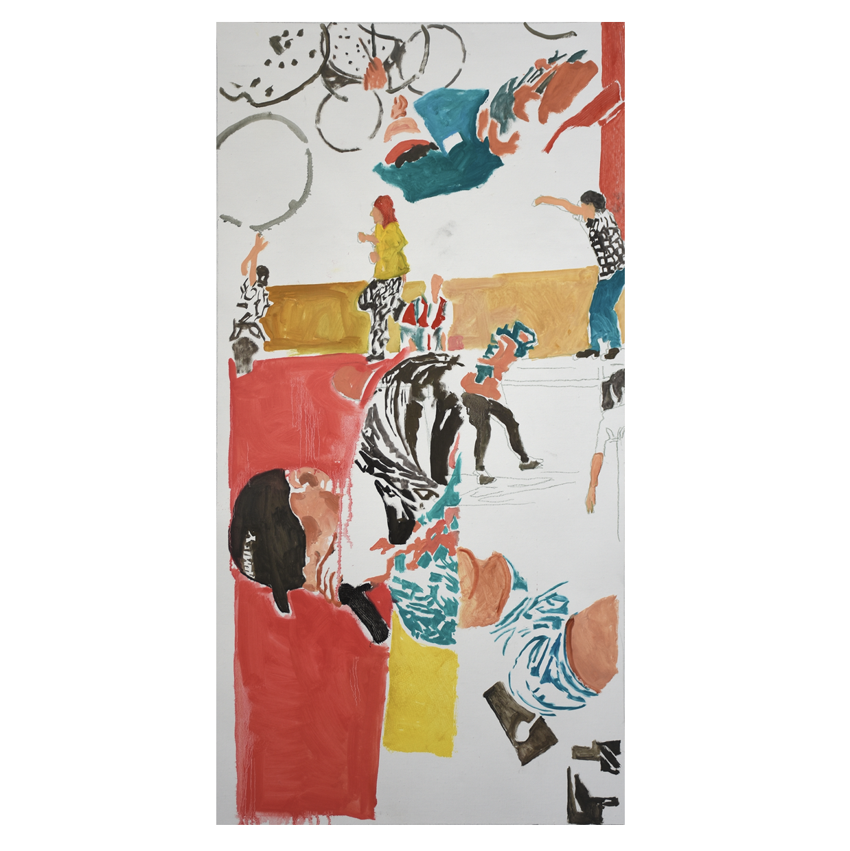 tokyo olympics 1 16x40” oil & collaged paper on portrait linen