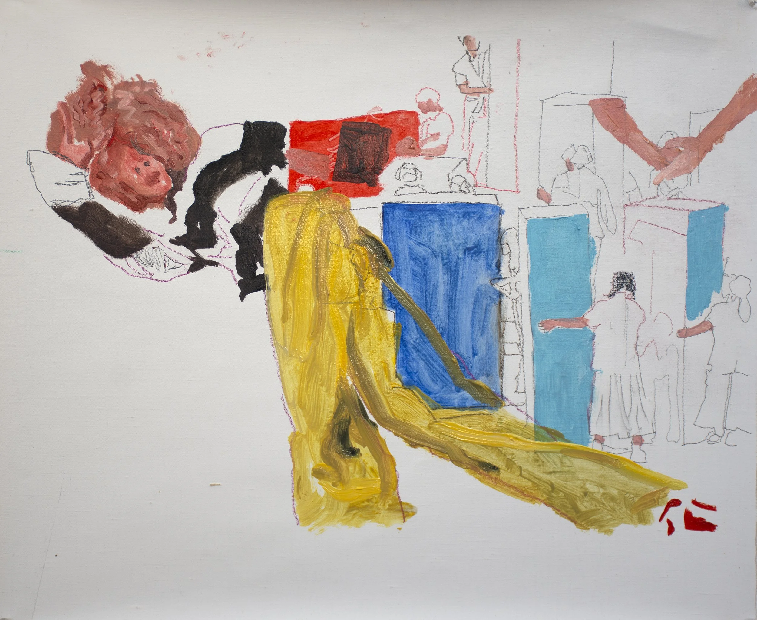 BELOW: 15x17” / 38.2x43.2 cm. oil, oil stick & collage on portrait linen