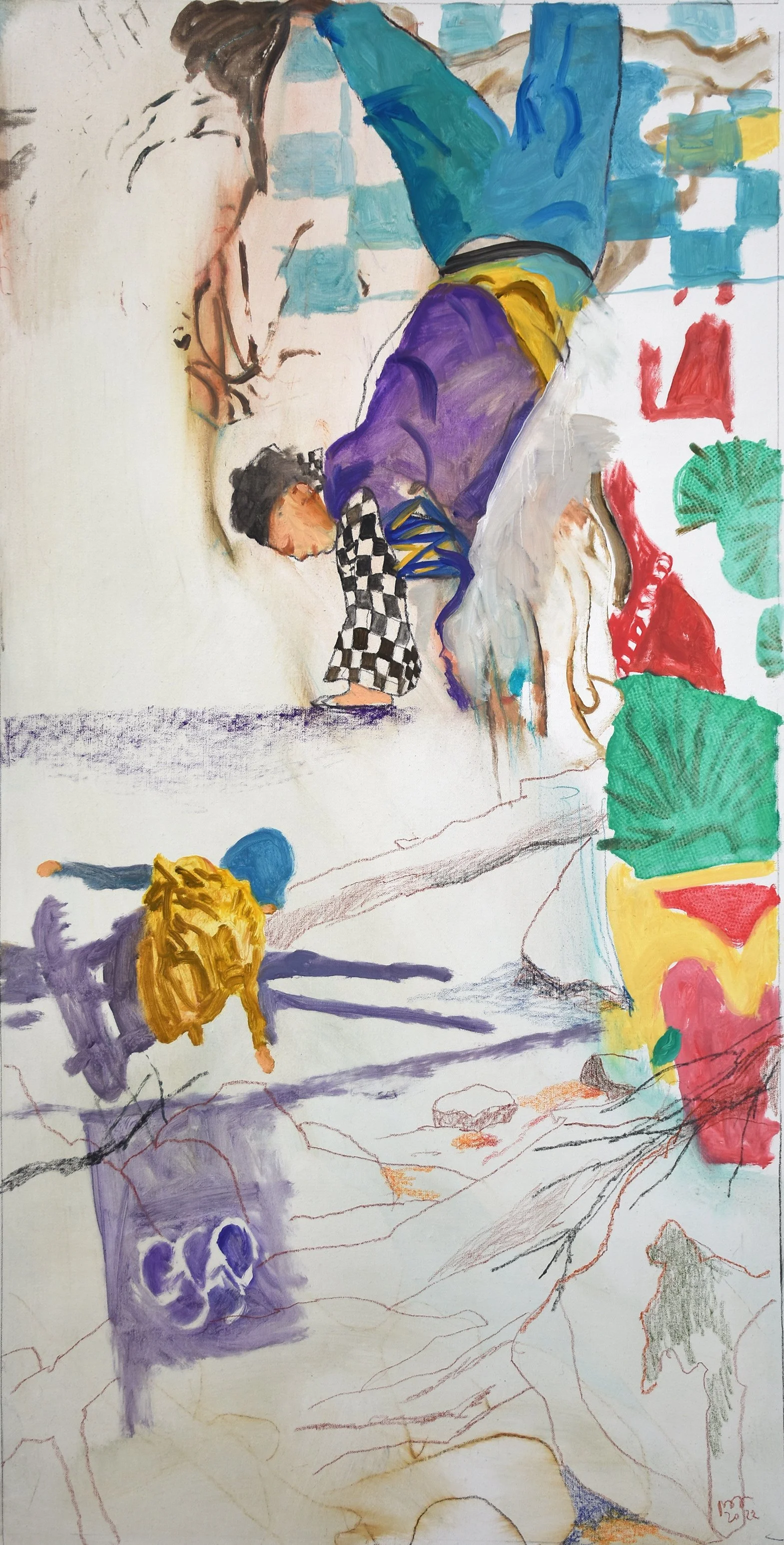 BELOW: left: handstand, 72x28” 6/2022 right: tokyo drummer 72x28” 6/2022