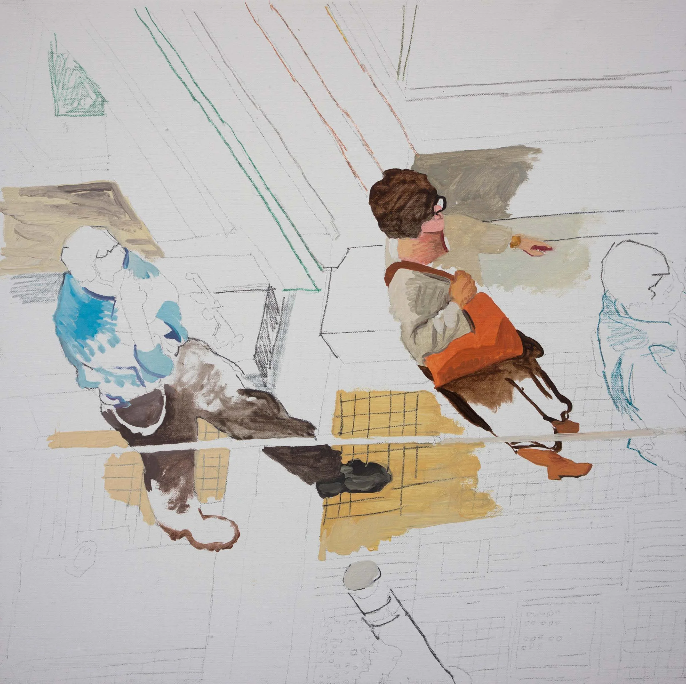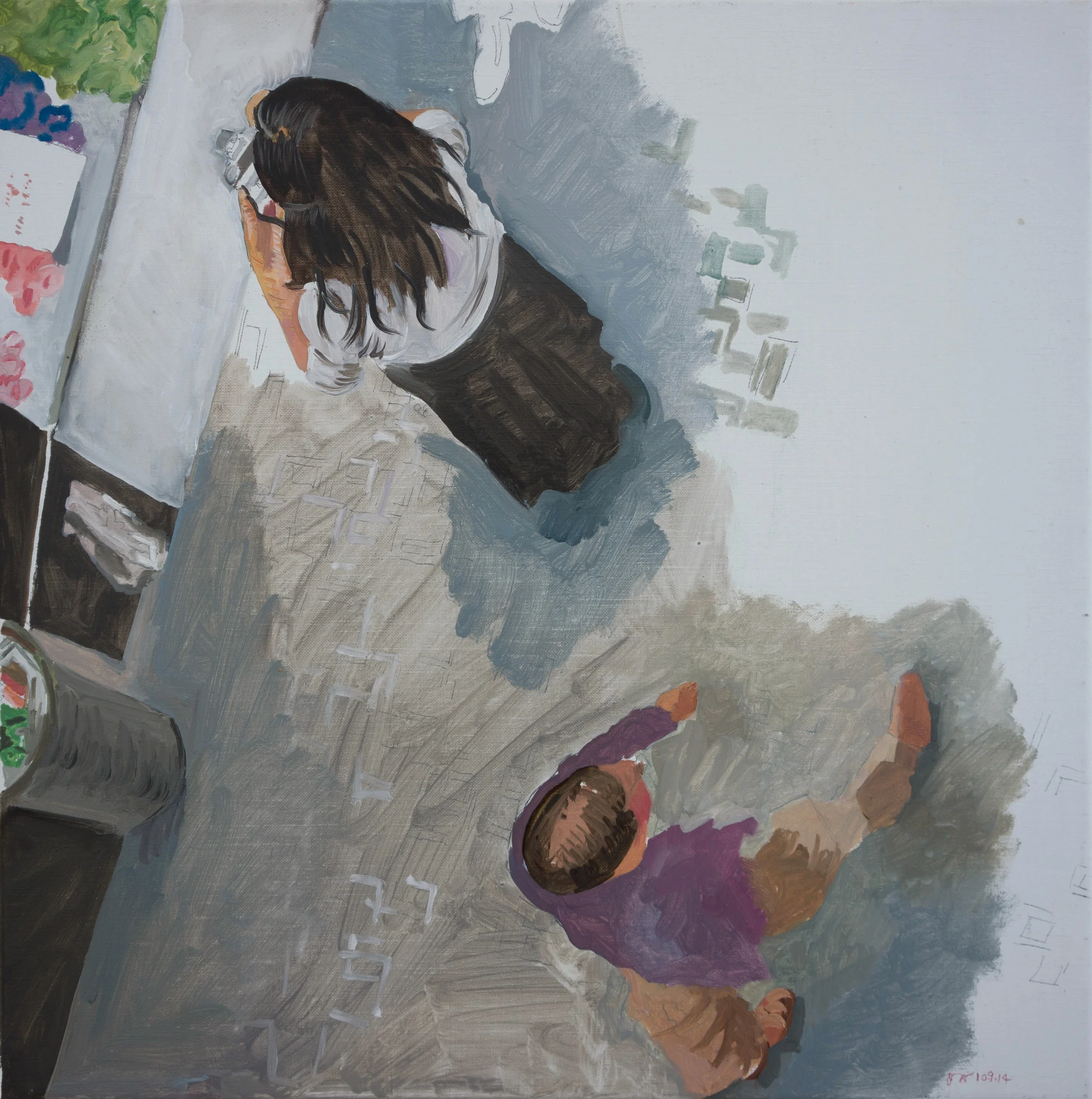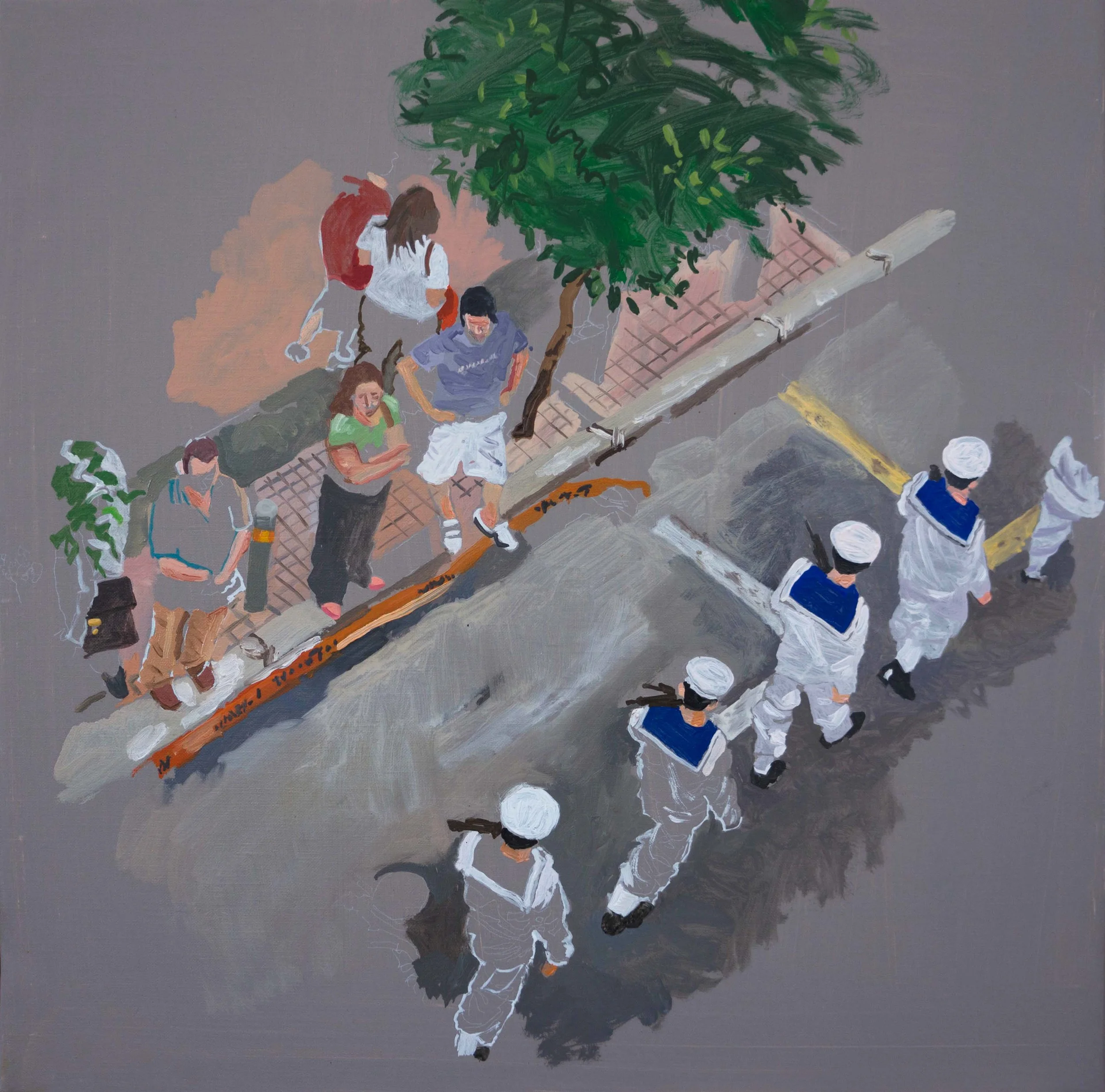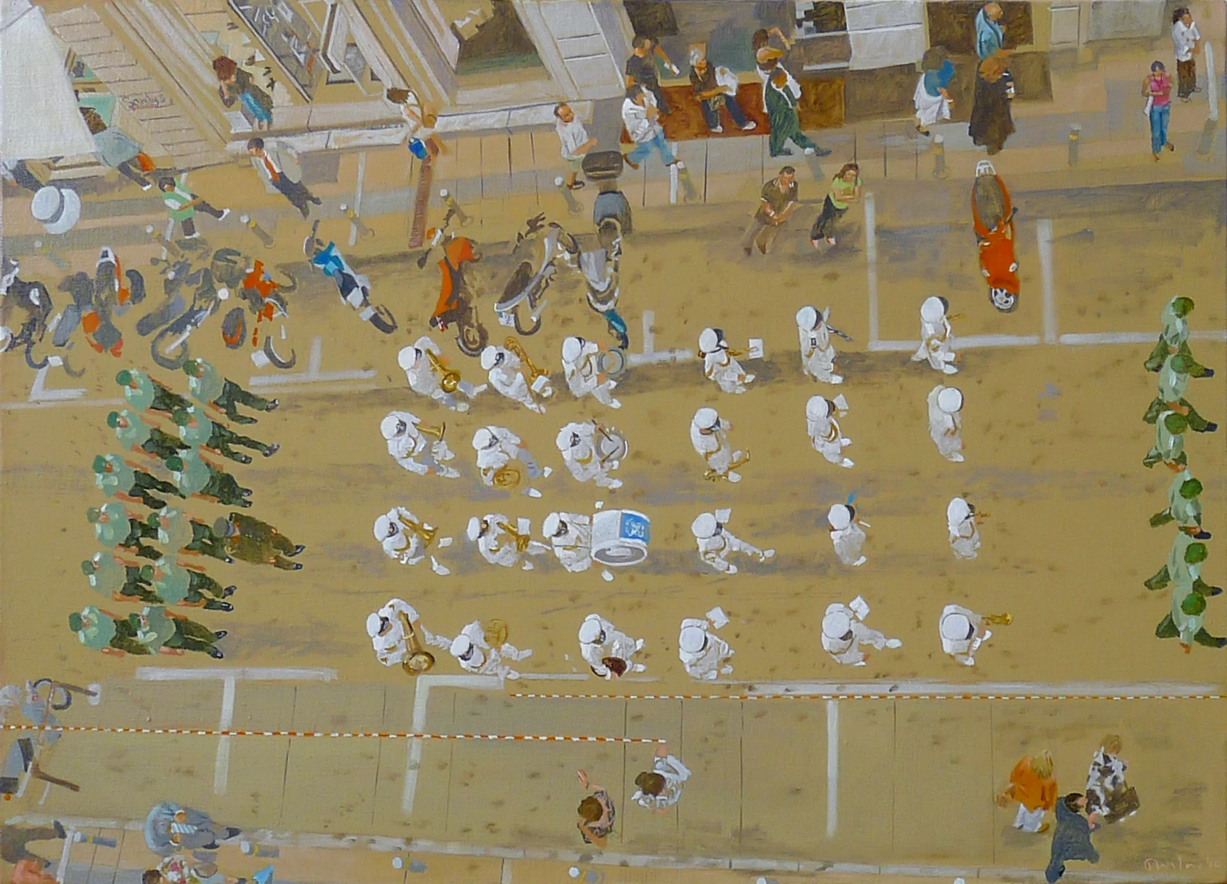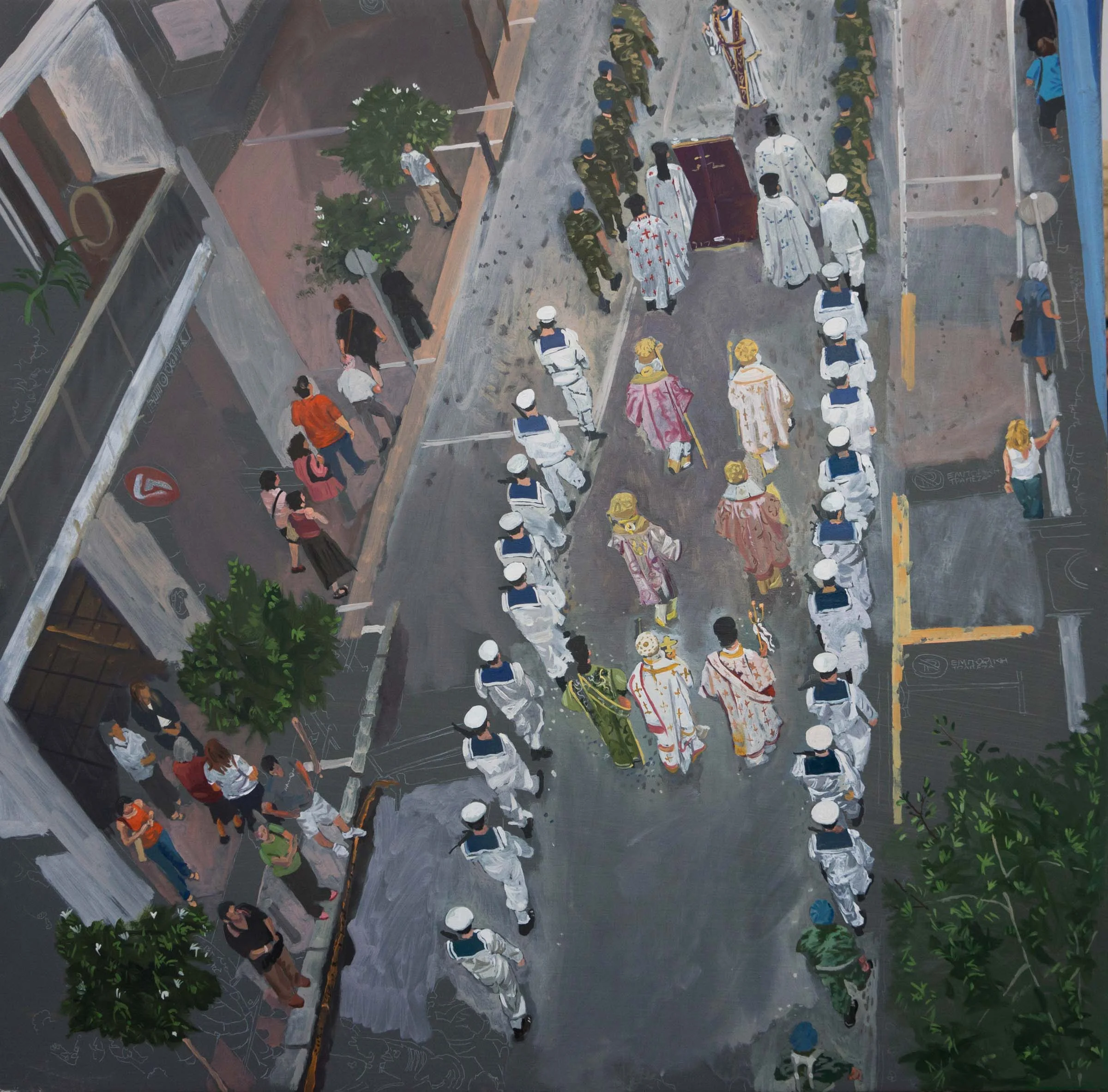 on the right is a painting titled parade. it's based on photographs i took of a parade in athens in 2009. it was shown in my 2010 solo show at skoufa gallery, athens, and is now in a private collection.