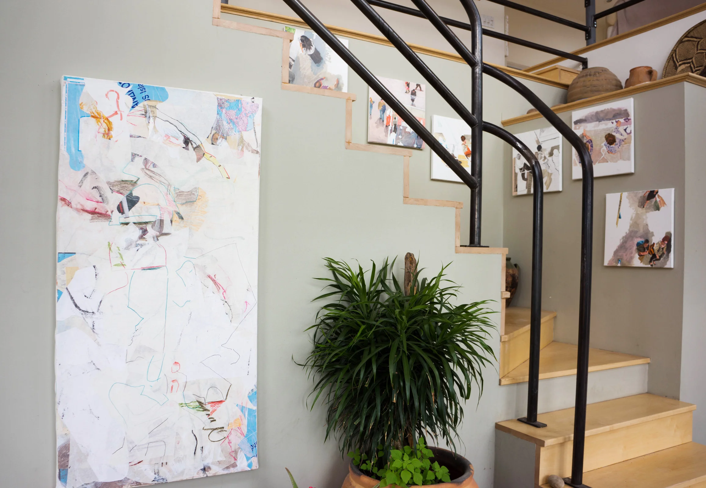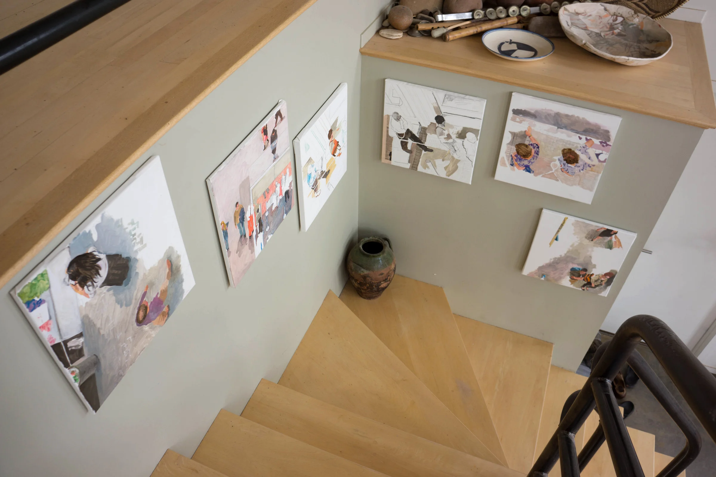 BELOW: paintings from the series shown hanging in 2 different areas of our house, highlighting how well they can work in spaces not normally used for art.