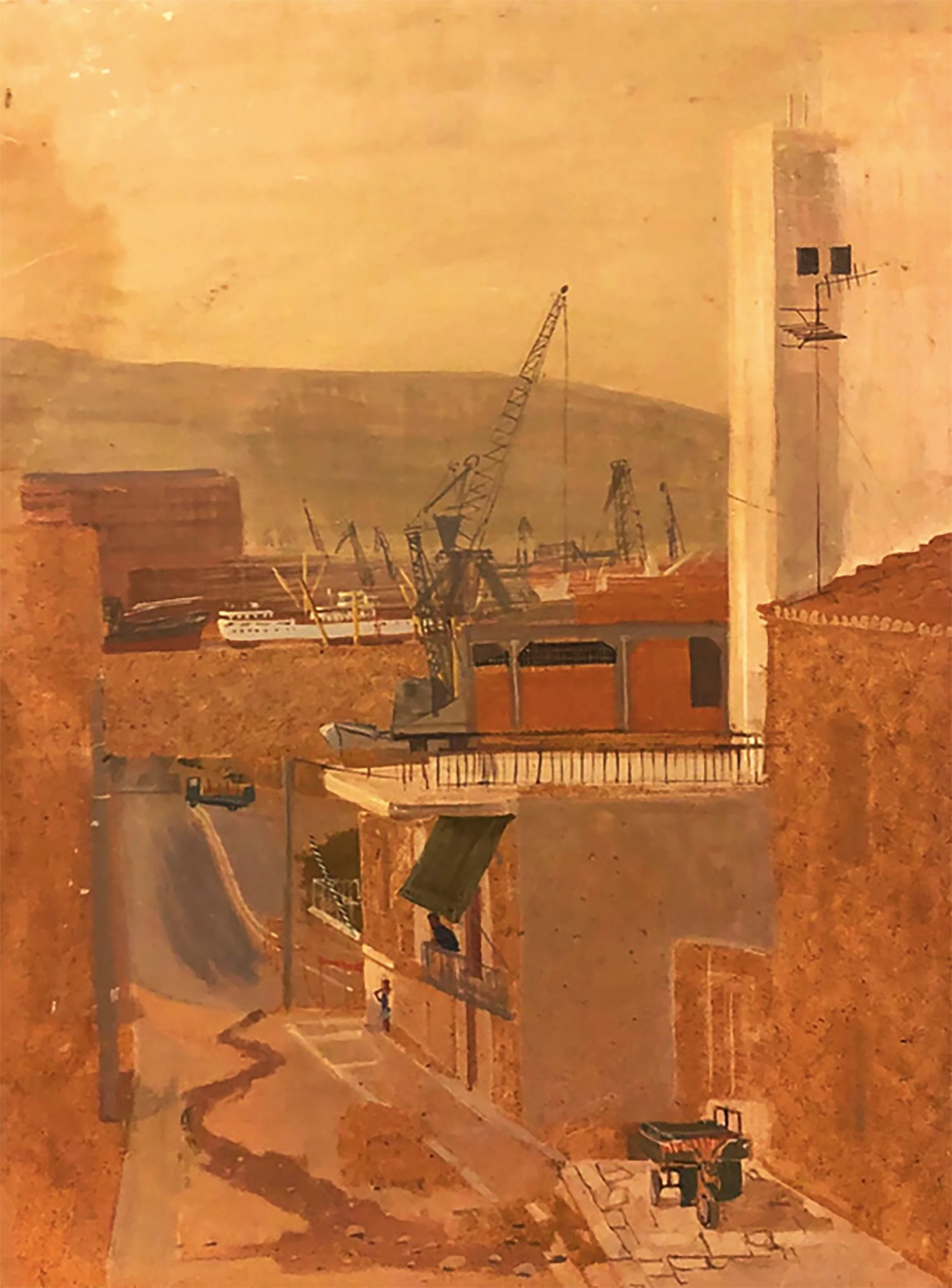 ca. 1975, egg tempera on board. this is characteristic of the paintings I made when my mother-in-law, the painter niki Karagatsi and I would drive down to the port of pireaus & paint plein air.