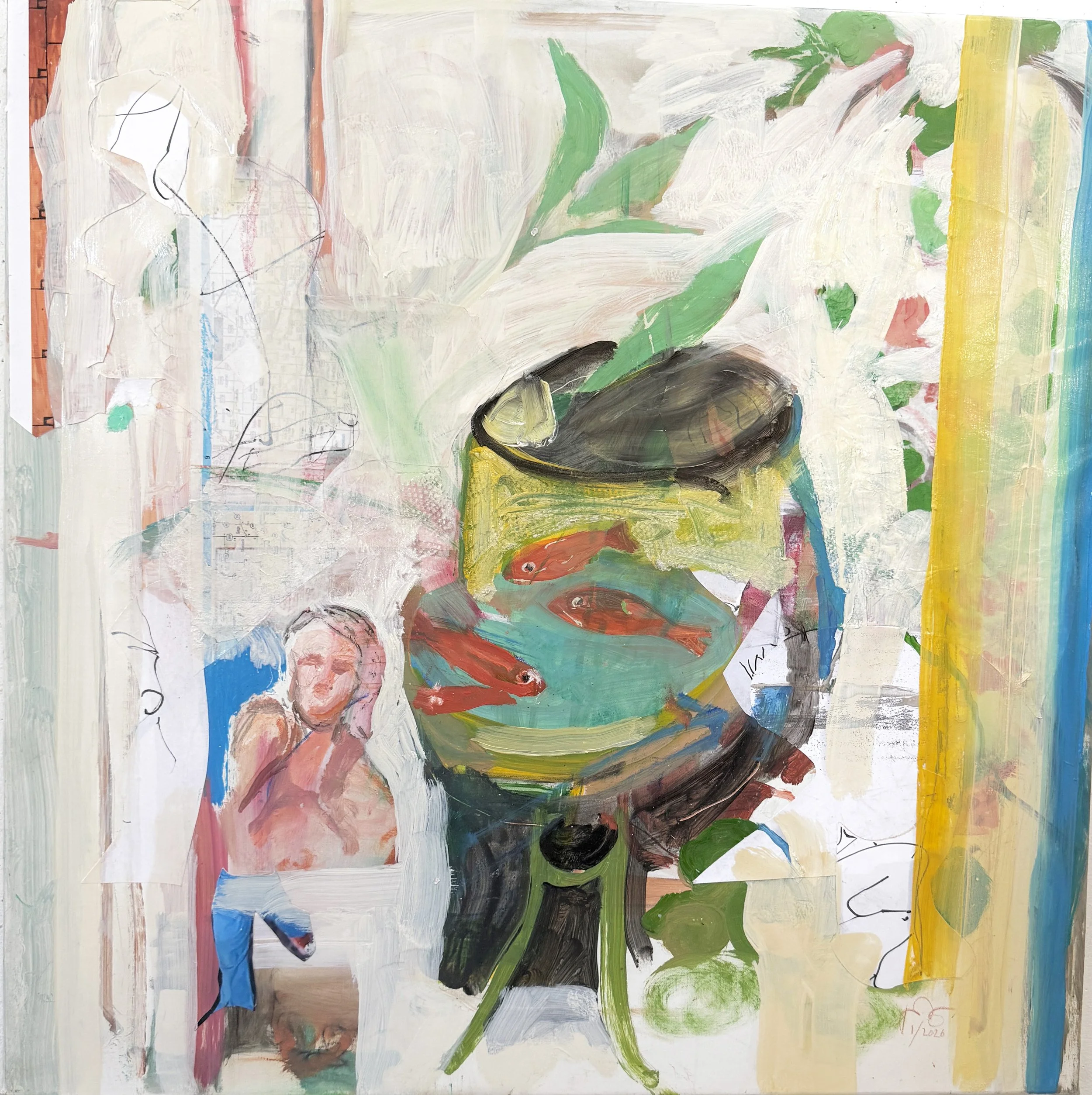 fish wish, 10/20/25 28x28” oil on portrait linen