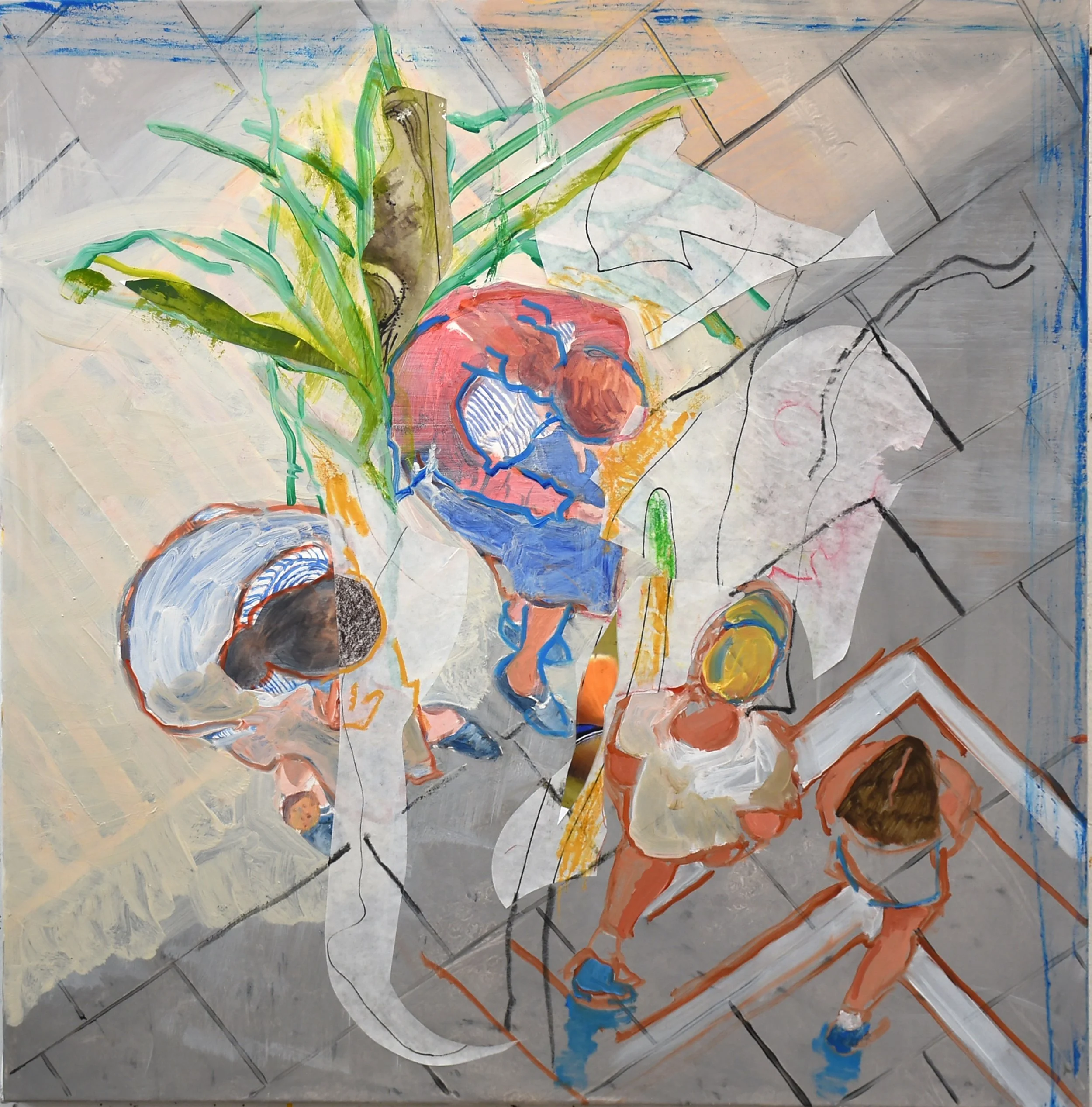 euphoria, 36x36” oil & collage on linen, 2024