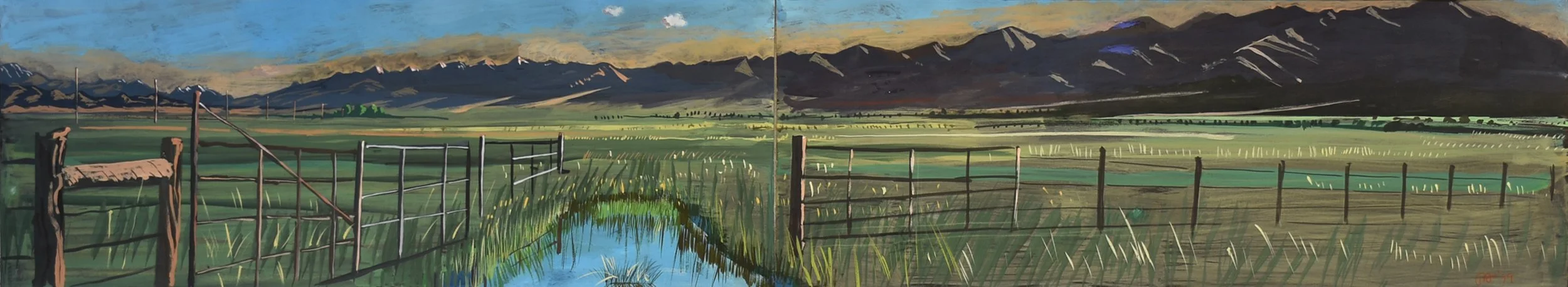9:33 AM: in 1999, i made a series of paintings while sitting in our car, which i drove out to a spot with a view of the San Luis Valley. This one is 20x113.5cm. , gouache on paper, in 2 pieces. it’s one of the best, and i’d like to get it framed professionally in the next few weeks.