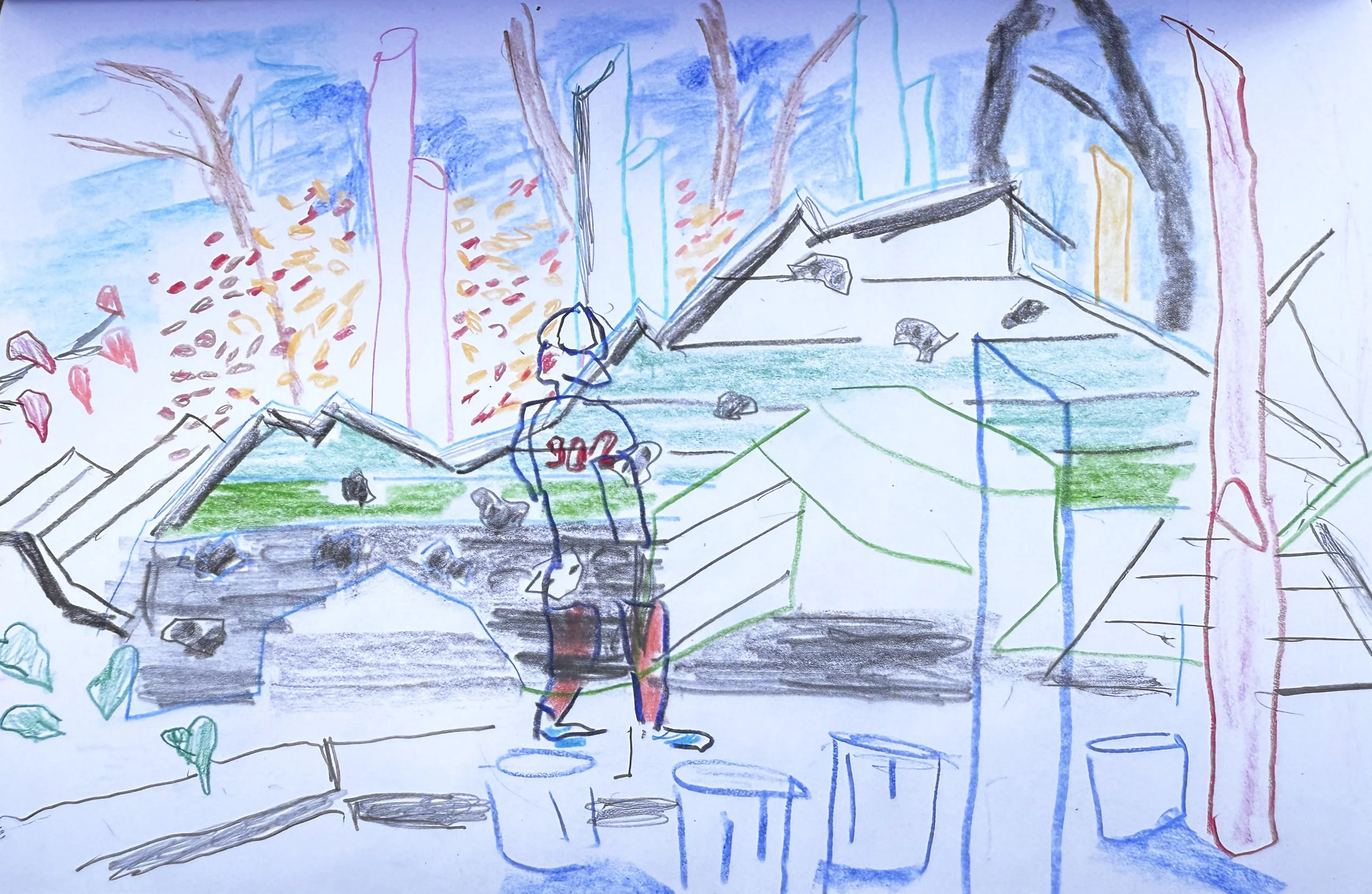 the salida playground with figure, 6x8.5” 10/1/25, colored pencil on paper
