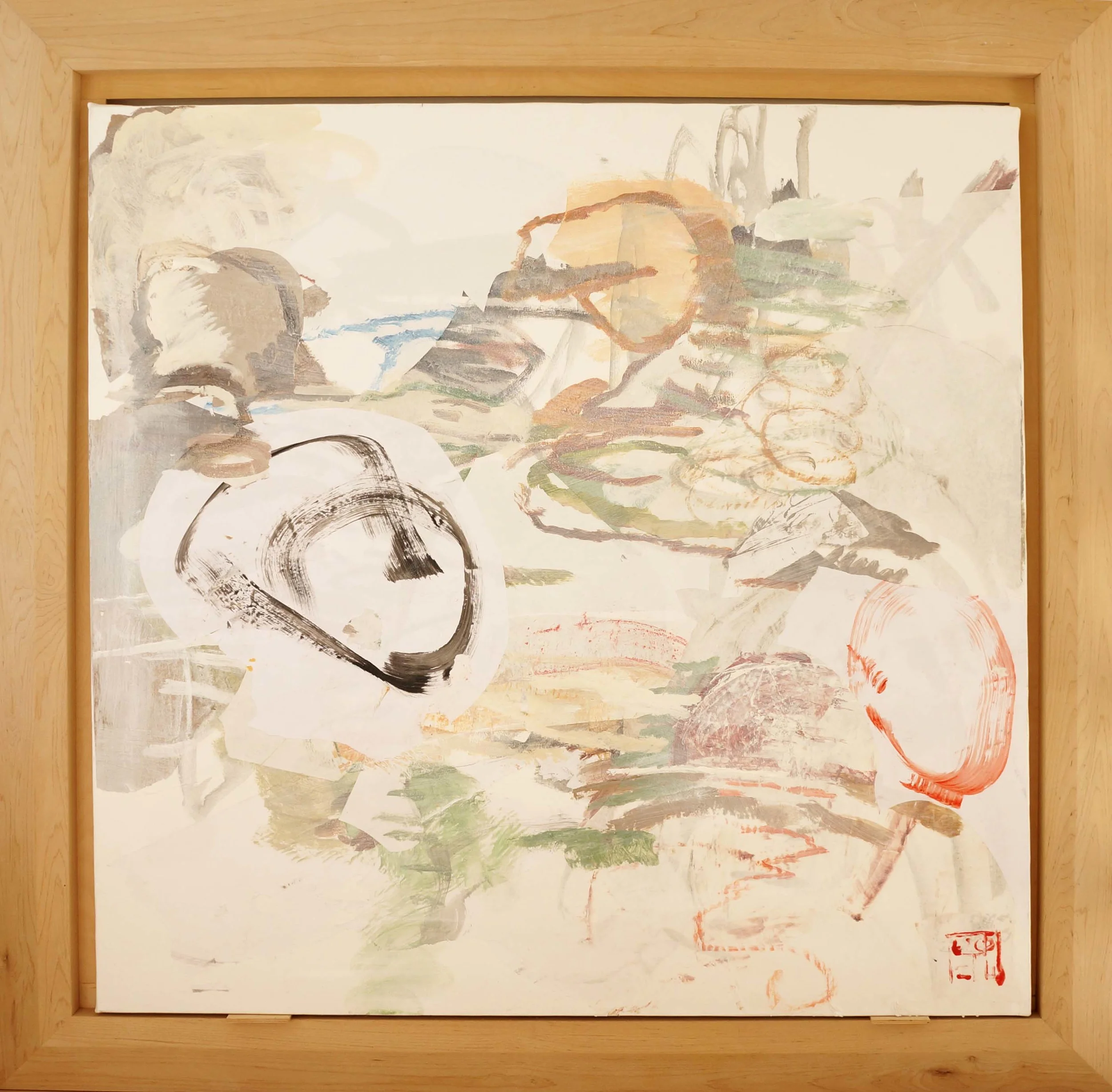 and we brought ku ding creek to our living room & placed it in this temporary hardwood frame. my friend and mentor tsarouchis used to refer to the frame as "the painting's john," or "davadzis" in greek. he was full of juicy, always spot on comments such as this. in this case, it proved true beyond expectations.