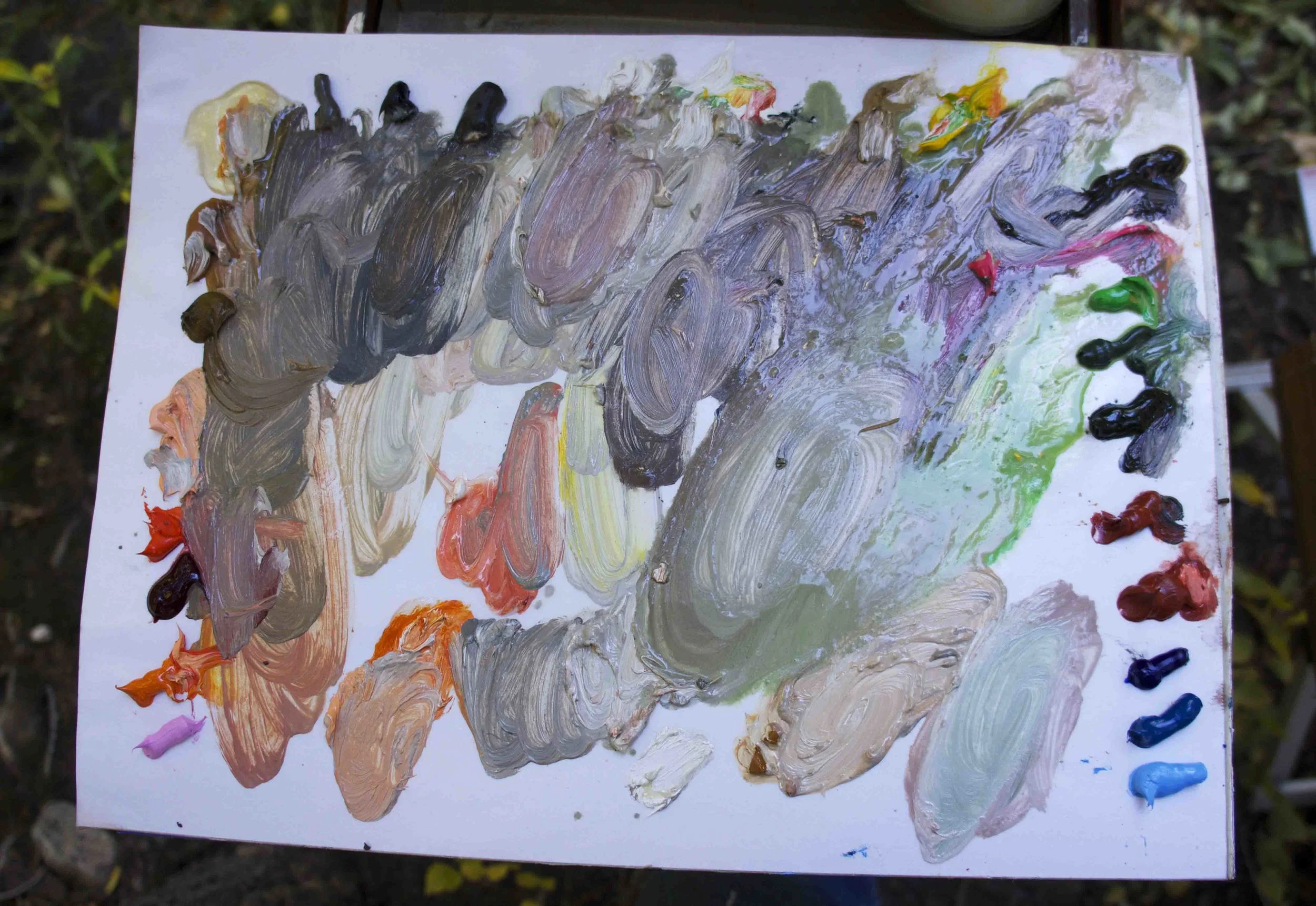 the previous gap between the more descriptive pleine air oil paintings of 2012 and earlier and the larger abstracted, more ambiguous & suggestive studio acrylics is slowly narrowing. have a look at the 2 details below, then click on the pleine air page and compare to 2012.