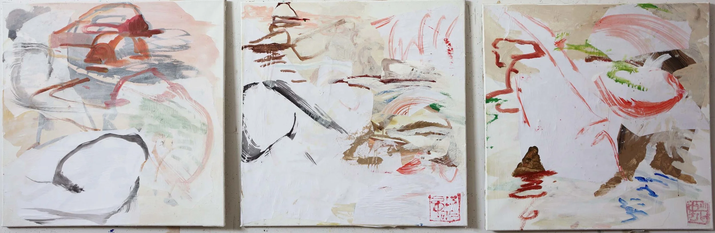 today i worked on what was yesterday the 1st canvas on the left & is now in the middle.
