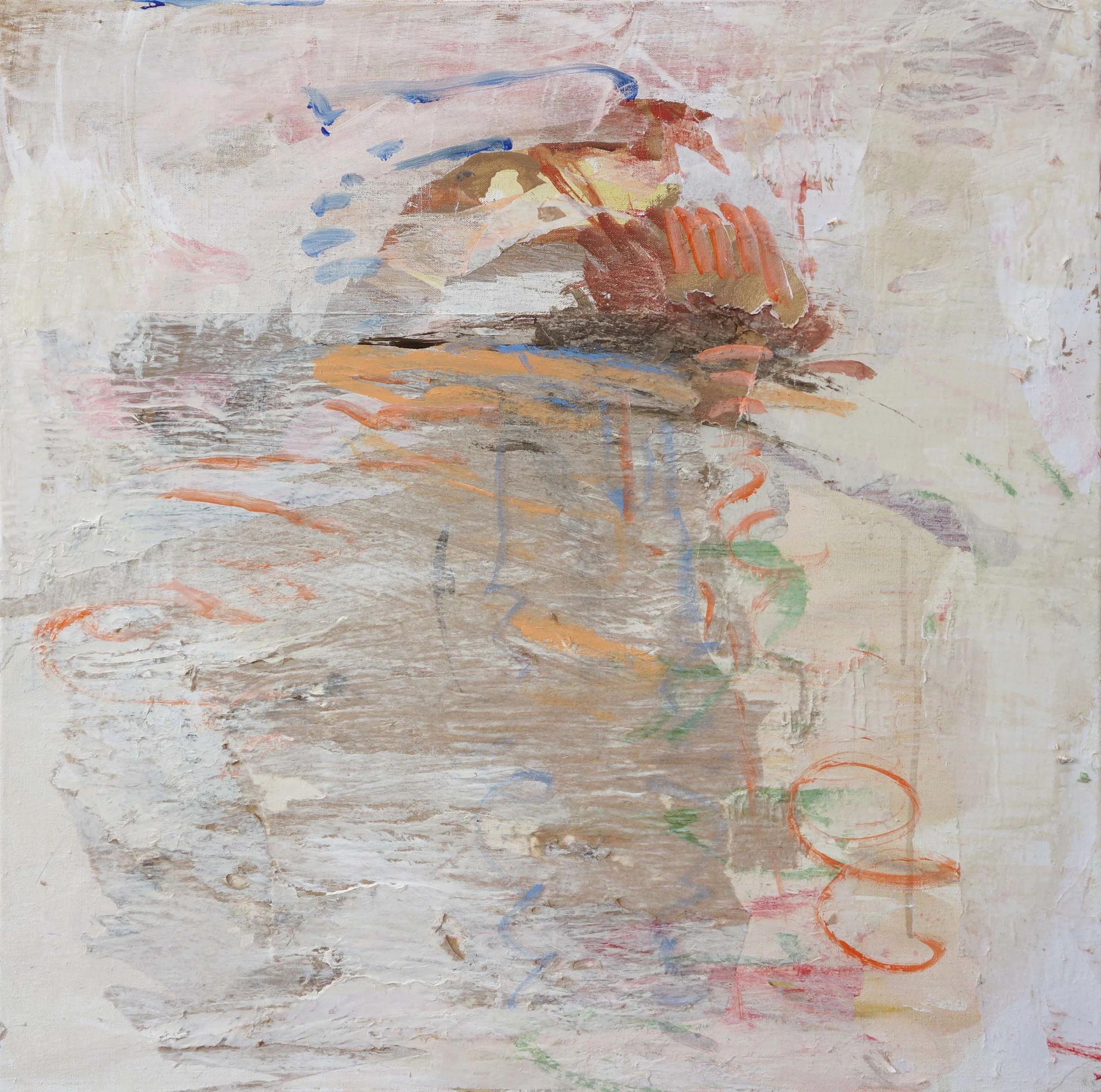 today i reworked this 1st canvas of creek tryptich, which consists of three 25x25" panels. i scraped, i glued paper, i scraped away the paper, i sanded, i painted. and all of this with forearm tendonitis, diagnosed friday by a physical therapist in salida. painful.