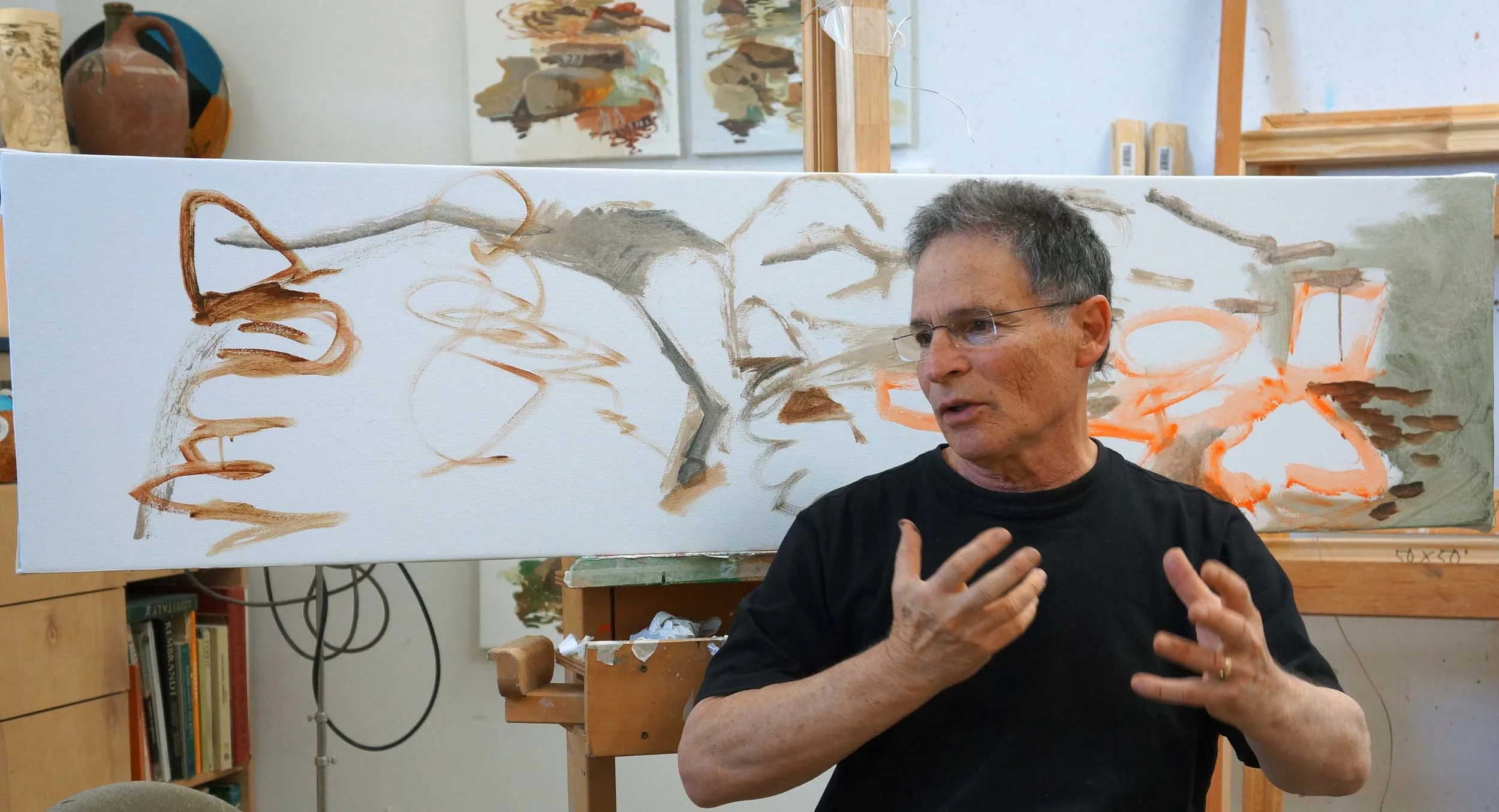 here are 2 stages of ni zan creek. the first, painted this morning, left me feeling trepidation. i love the early, fresh & painterly stage of a new painting. i knew this one needed more, but was afraid to screw it up. mikela came over & interviewed me about my dilemma. then we danced. then i worked on it some more, which you can see below as stage 2.