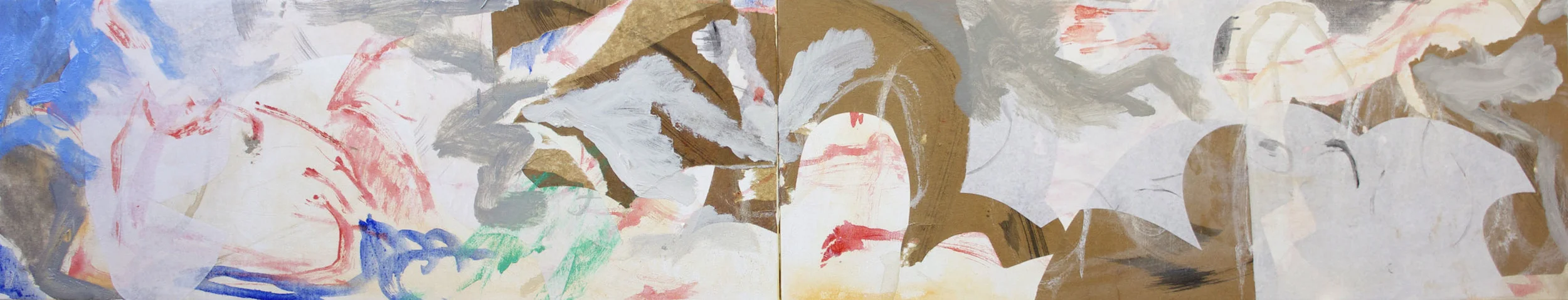 8/27 worked on this one a lot today. it's become a horizontal and there is some stuck energy right about in the middle of the right panel, where that brown semi-circle ends too abruptly in a straight vertical. so i'm about to go back into it. it's usually hard to go back in & keep my mind out, avoiding any tendency to hold on to a passage i'm attached to in favor of the whole. stay tuned.