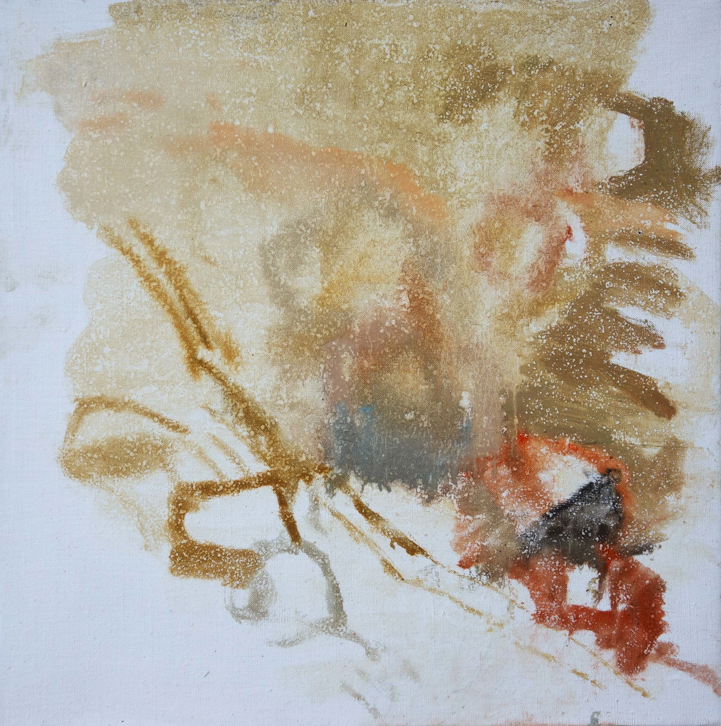 what you see below is the result; an unfinished painting splattered with rain drops, proving once again that oil & water don't mix. it created a very beautiful pattern however.