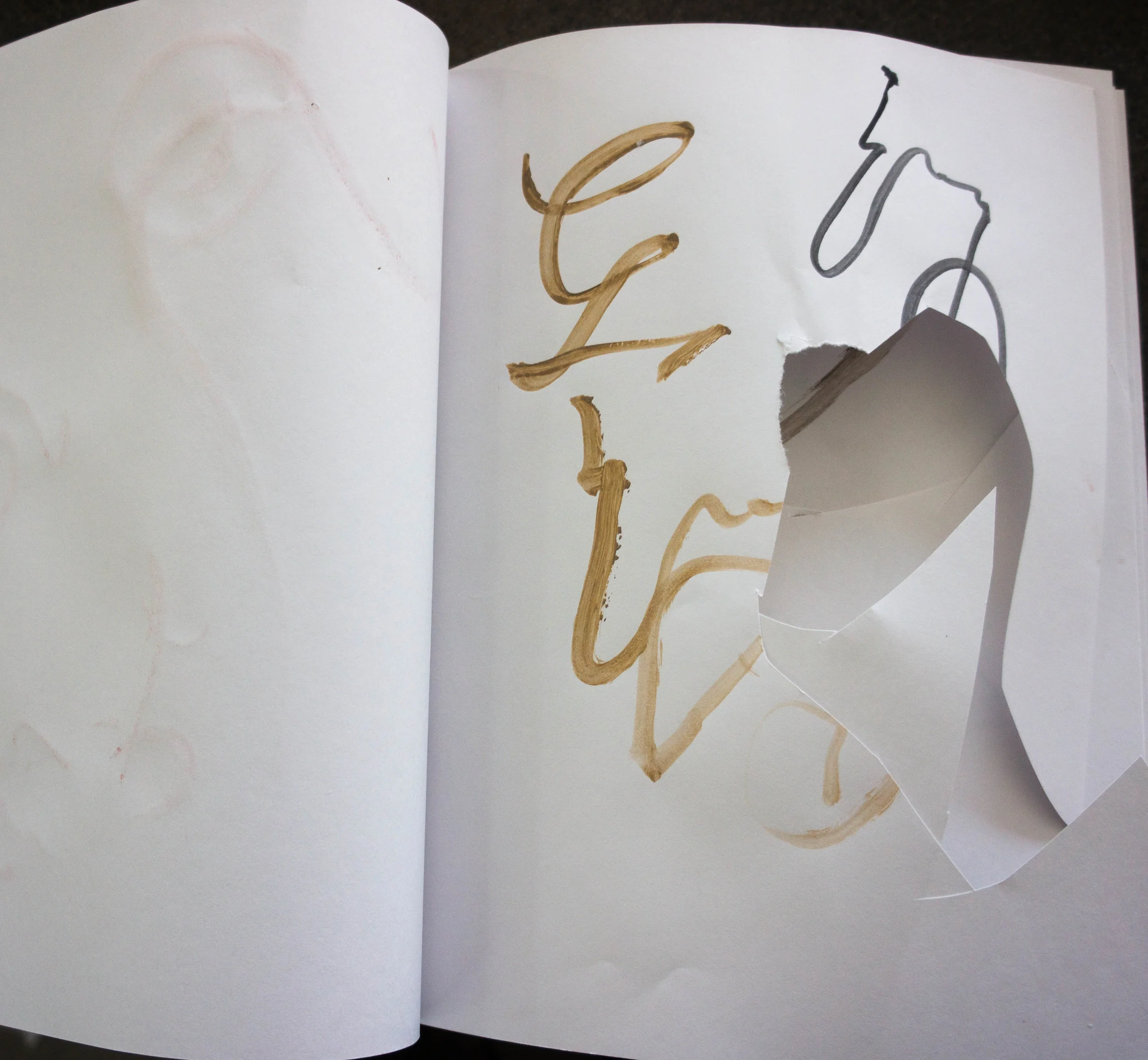 study of 11th c. chinese calligraphy cut up for insertion in a collage