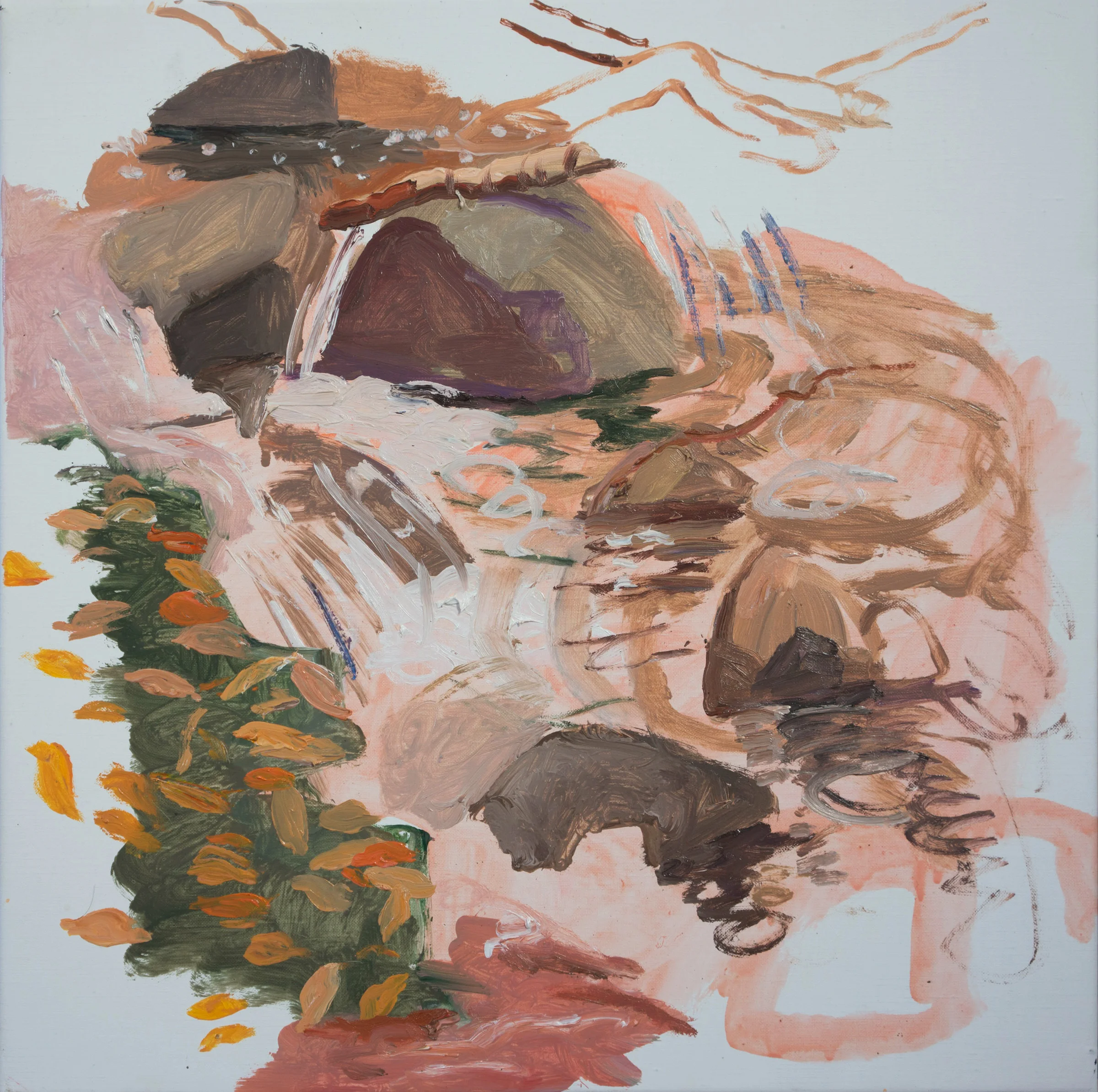 6:11 pm: just back from the creek. the painting is below,. 2nd row right: look how close to the creek the rear leg of my easel is. it's resting on unstable mossy grasses, so it's tricky to not have it tip over as it did last week.