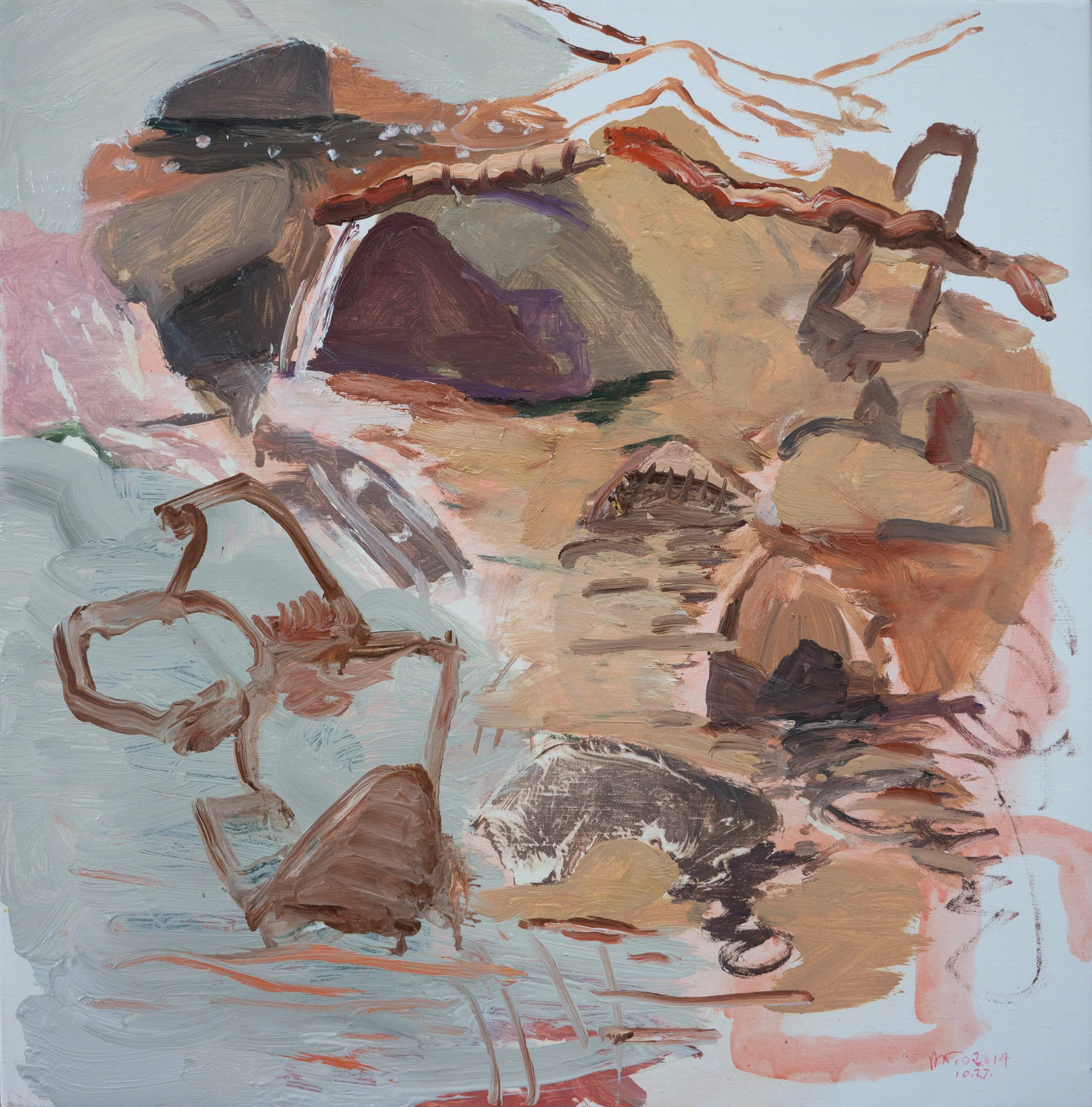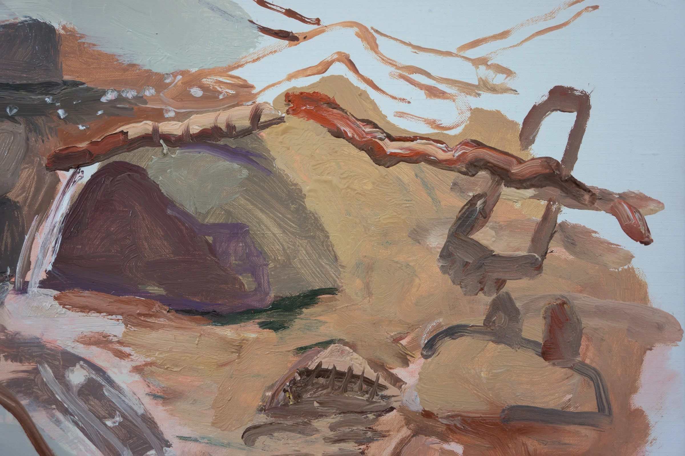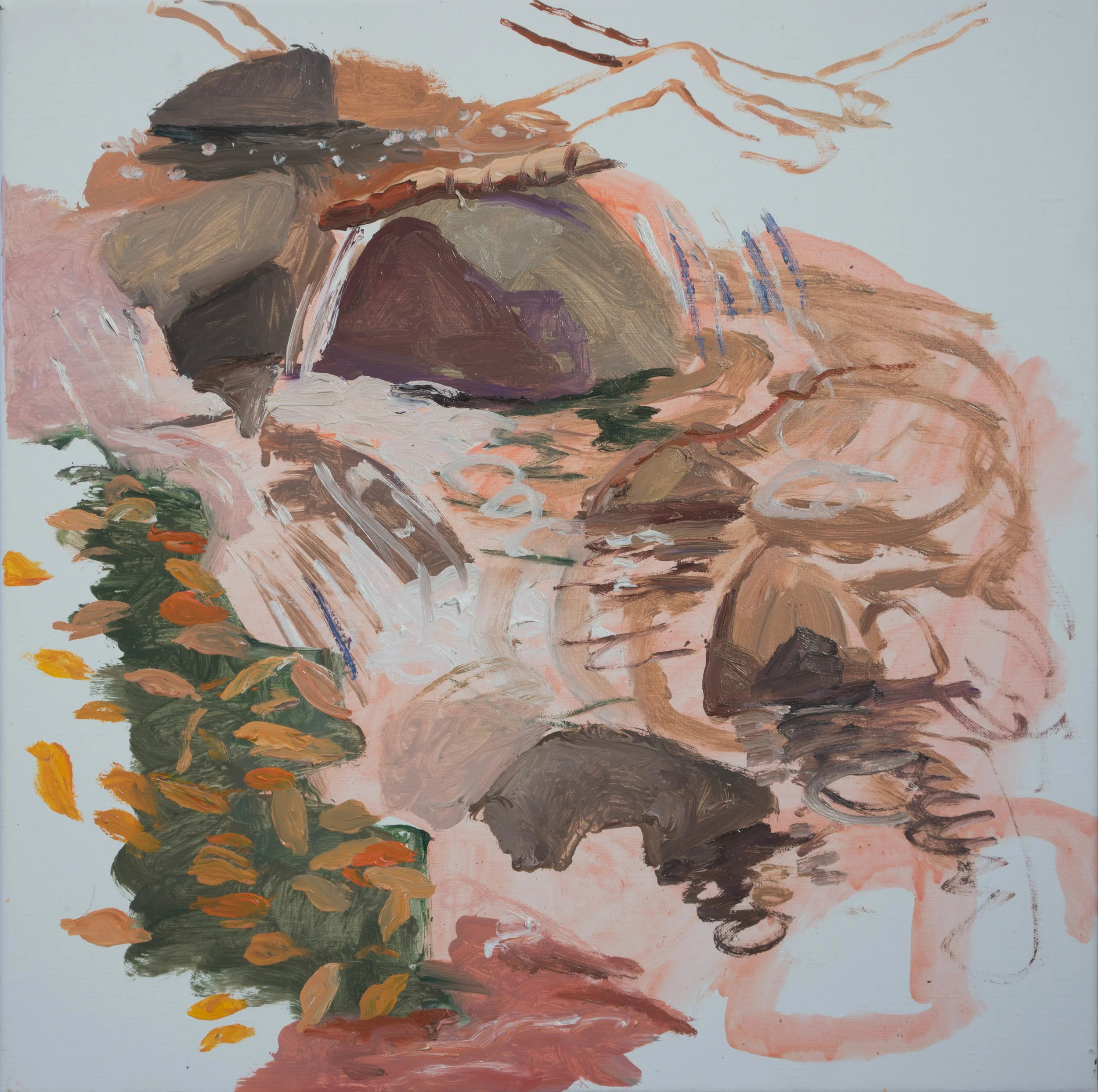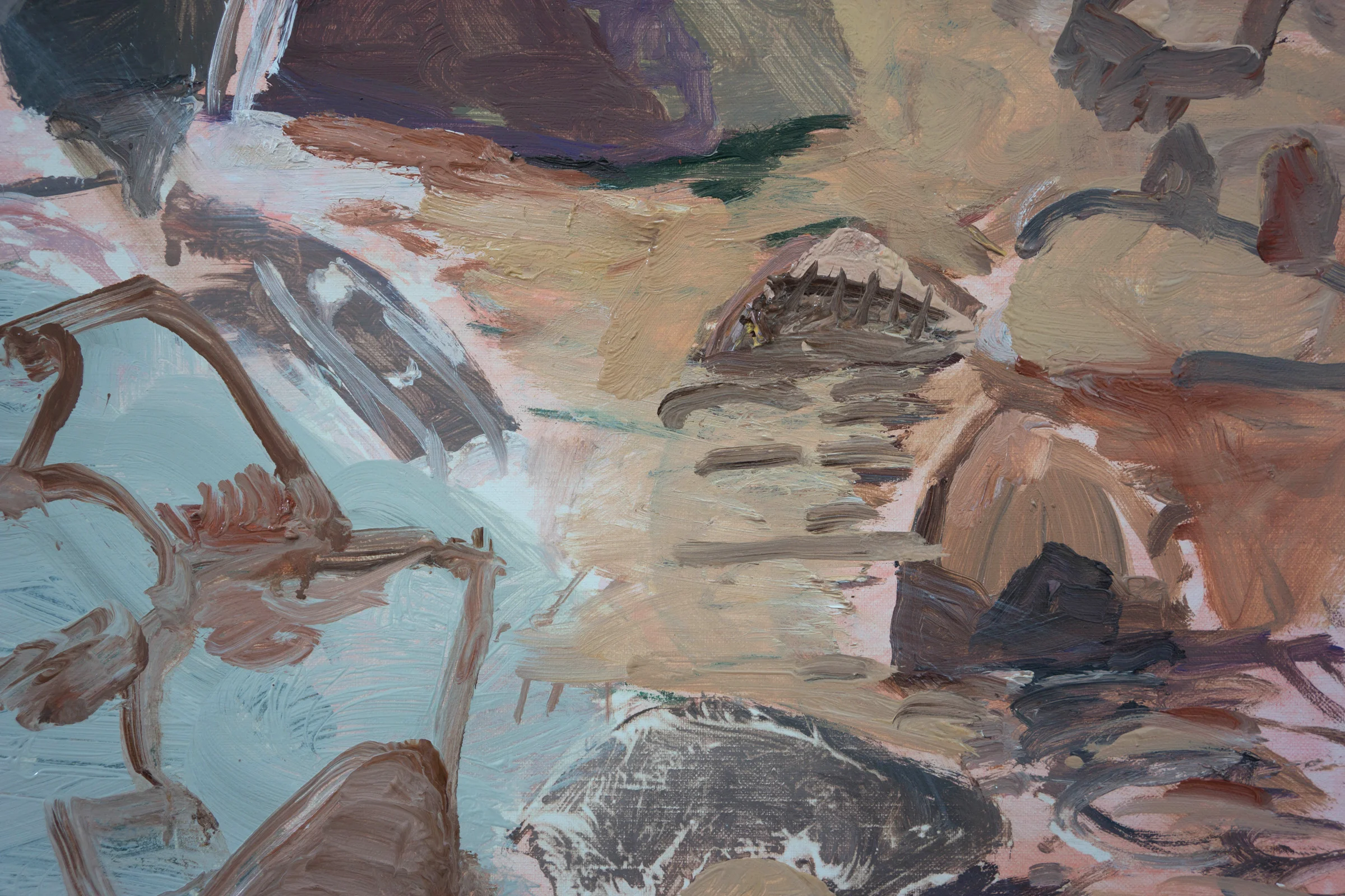 i feel it's now a far better painting. a much more interesting painting. i'm surprised i was able to successfully work on it far from the energy of the creek. if you click and make it full screen, then flip between the two, you may notice that your eye has an easier time navigating the space, and that the new elements i introduced on the upper right serve as anchors.
