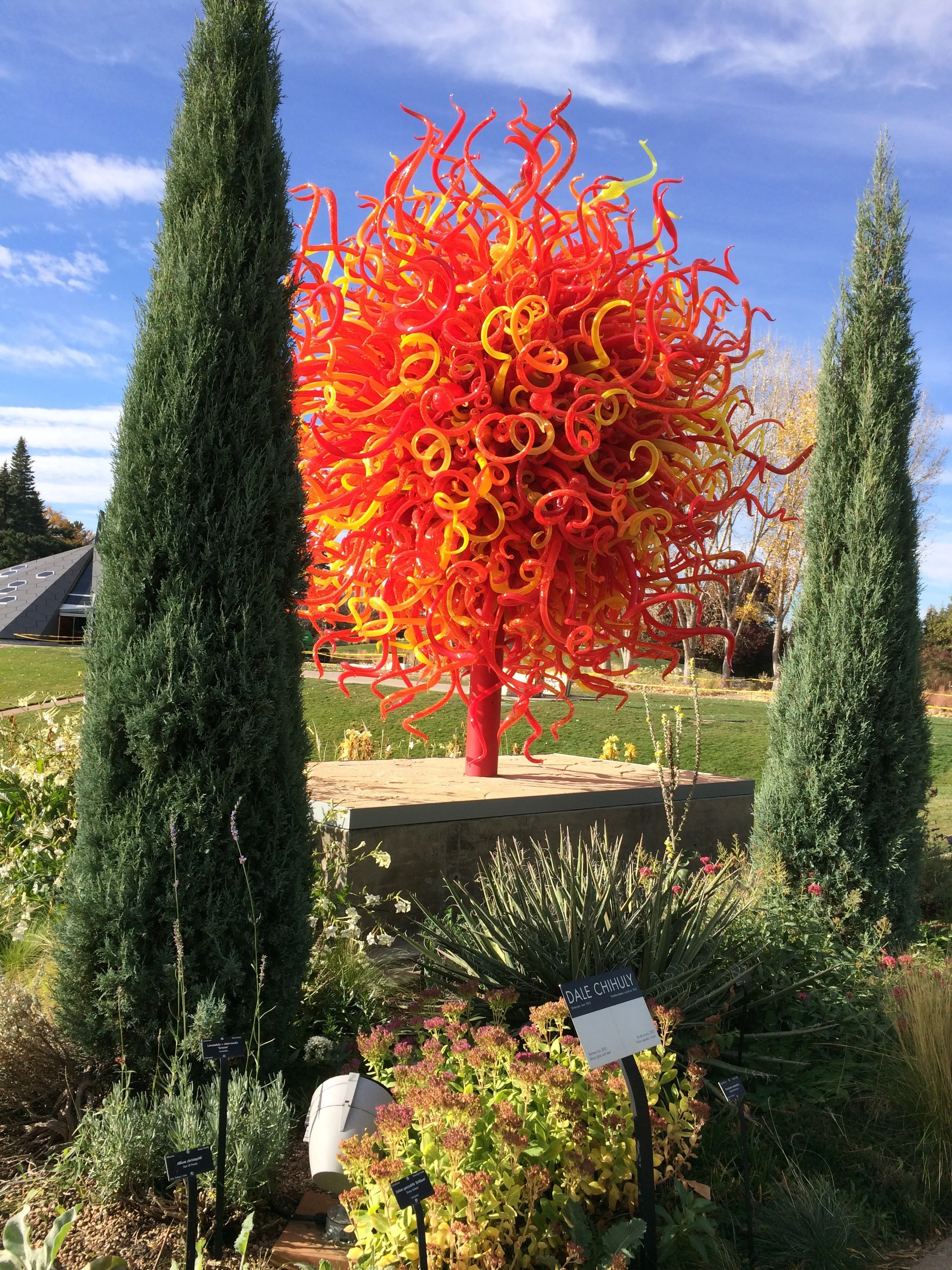 this morning we went to the denver botanical gardens with our friend erin & daughter isla. the chihuly outdoor exhibition was excellent, & i made a few drawings, one of which is below. i loved the pieces that were placed in ponds & reflected in the water. there were lots of kids, from stroller age up, who were obviously delighting in the well designed spaces, paths, tunnels, bridges, and so on. chihuly added a LOT, and it's unfortunate the evening tickets are gone; seeing them lit would be a treat.