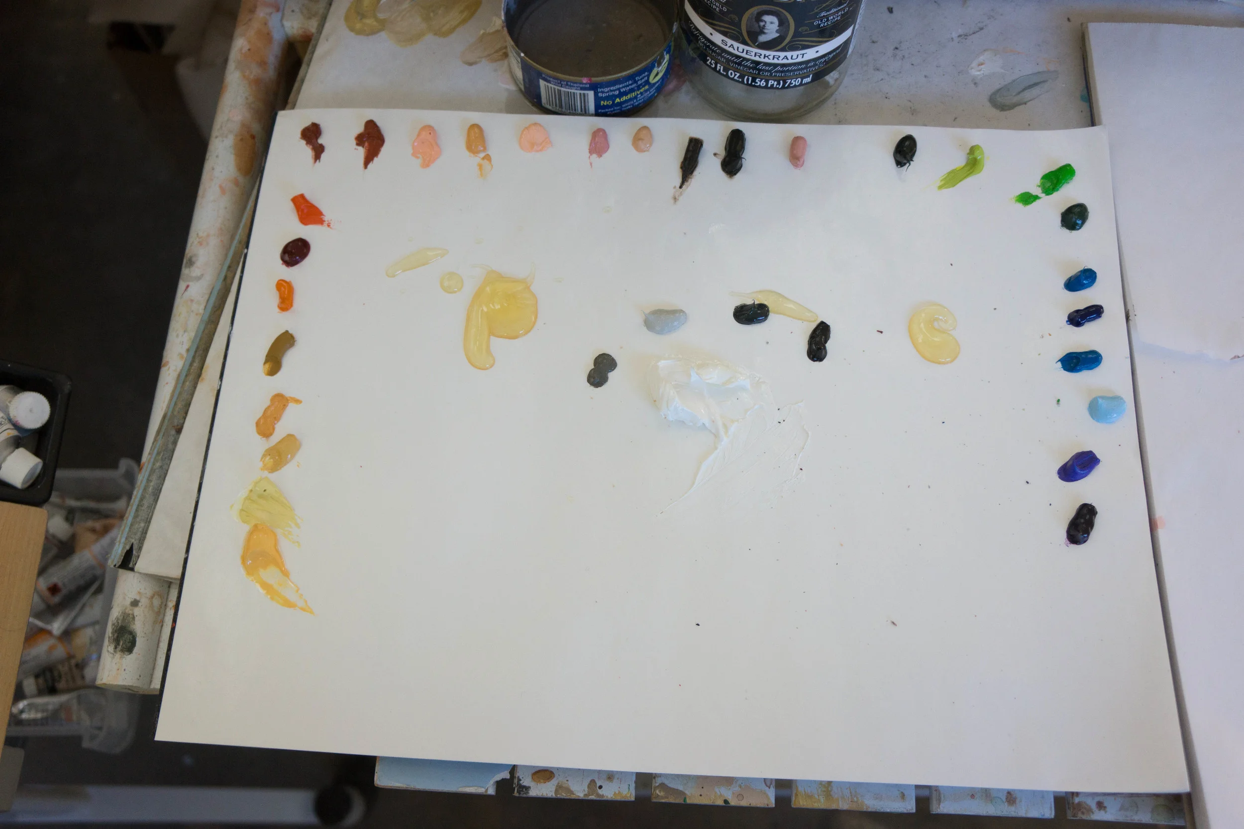 12:39pm update: process process process. it's all about process. some (unadjusted...no time right now...) shots of today's process. back to work now. just found out one of my '70's greek landscapes is up for auction next week in athens. just now found it; it's on the right: a view of painia, a suburb of athens where my son dimitri now lives.more later....