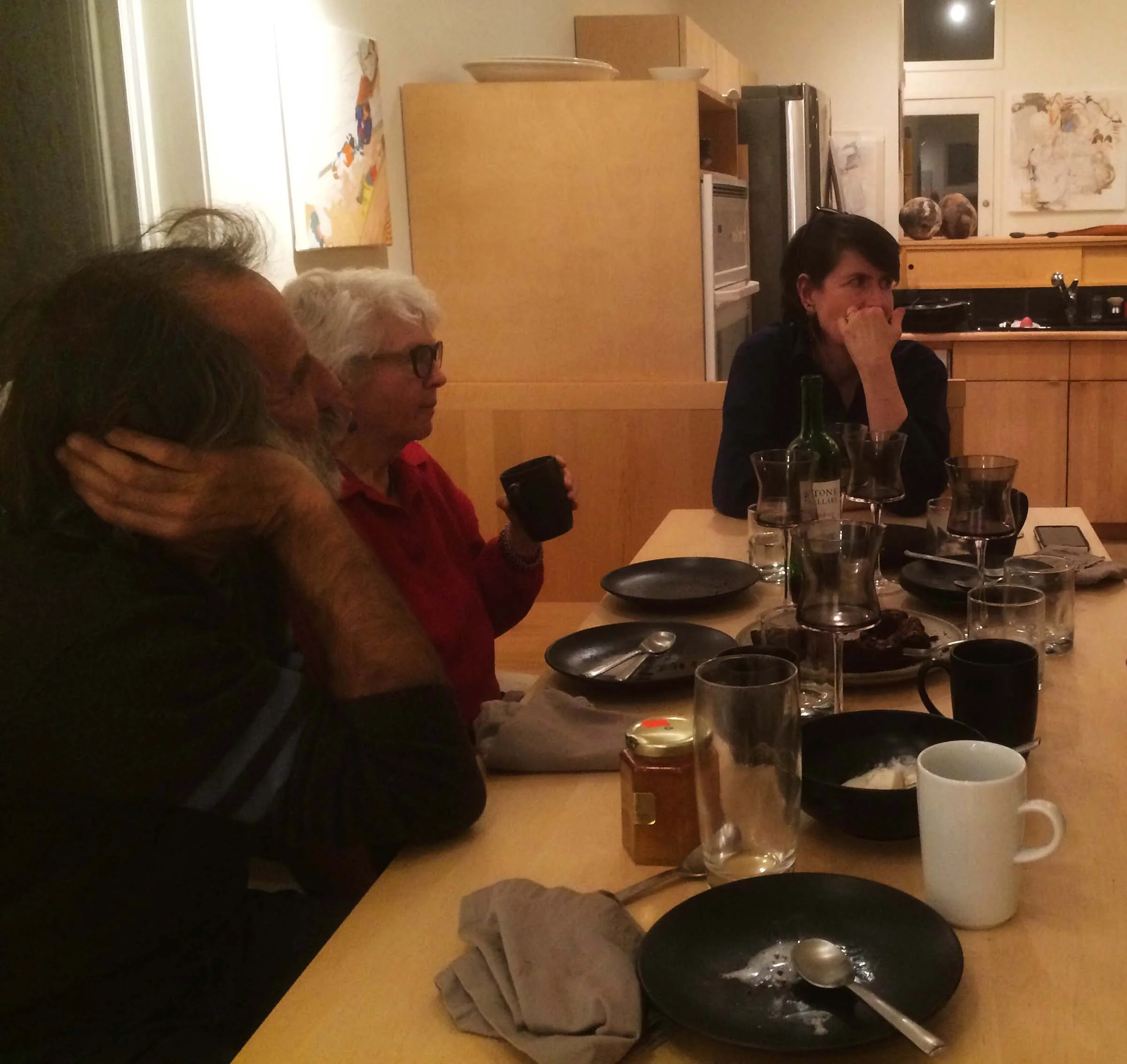 i deliberately hung parade 18 in a spot in our house where i could look at it during our dinner last night. while bantering with our guests my eye wandered frequently to the painting. you can see it on the wall on the upper left of the photo. by the end of the evening, it was clear to me: as much as i love the unfinished aesthetic, the painting needs more work. it's unresolved. so that's what i'm up to on this christmas day. i'll post pics at the next stage for your review.