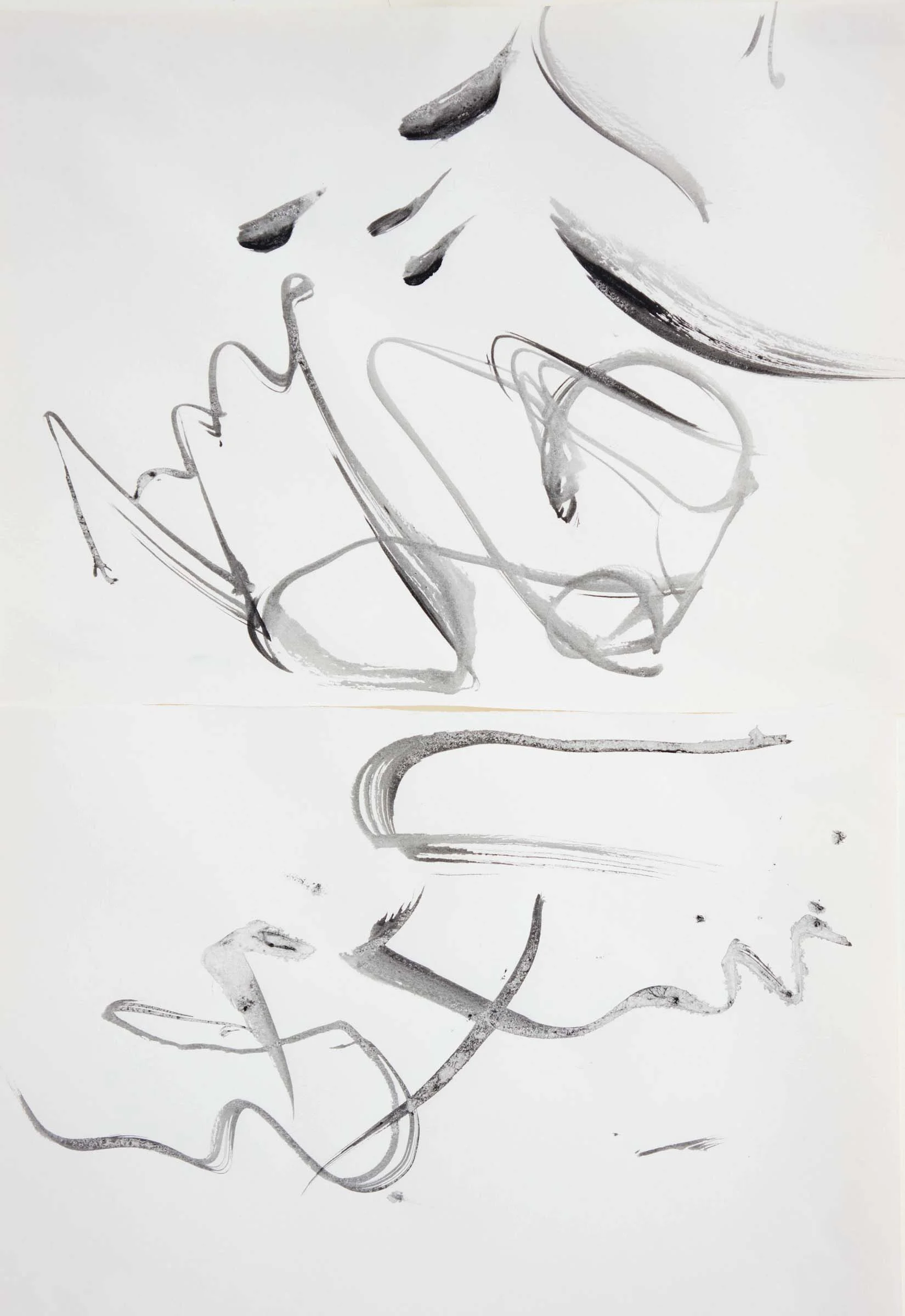 on the left, carrera, which refers to the tag heuer watch you will see in the upper right quadrant of the collage. on the right, calligraphic warm-up exercise based upon the calligraphy of an 11th century artist. both have elements of the preliminary sketches on the bottom row, which were later cut up and used as elements in these collages.