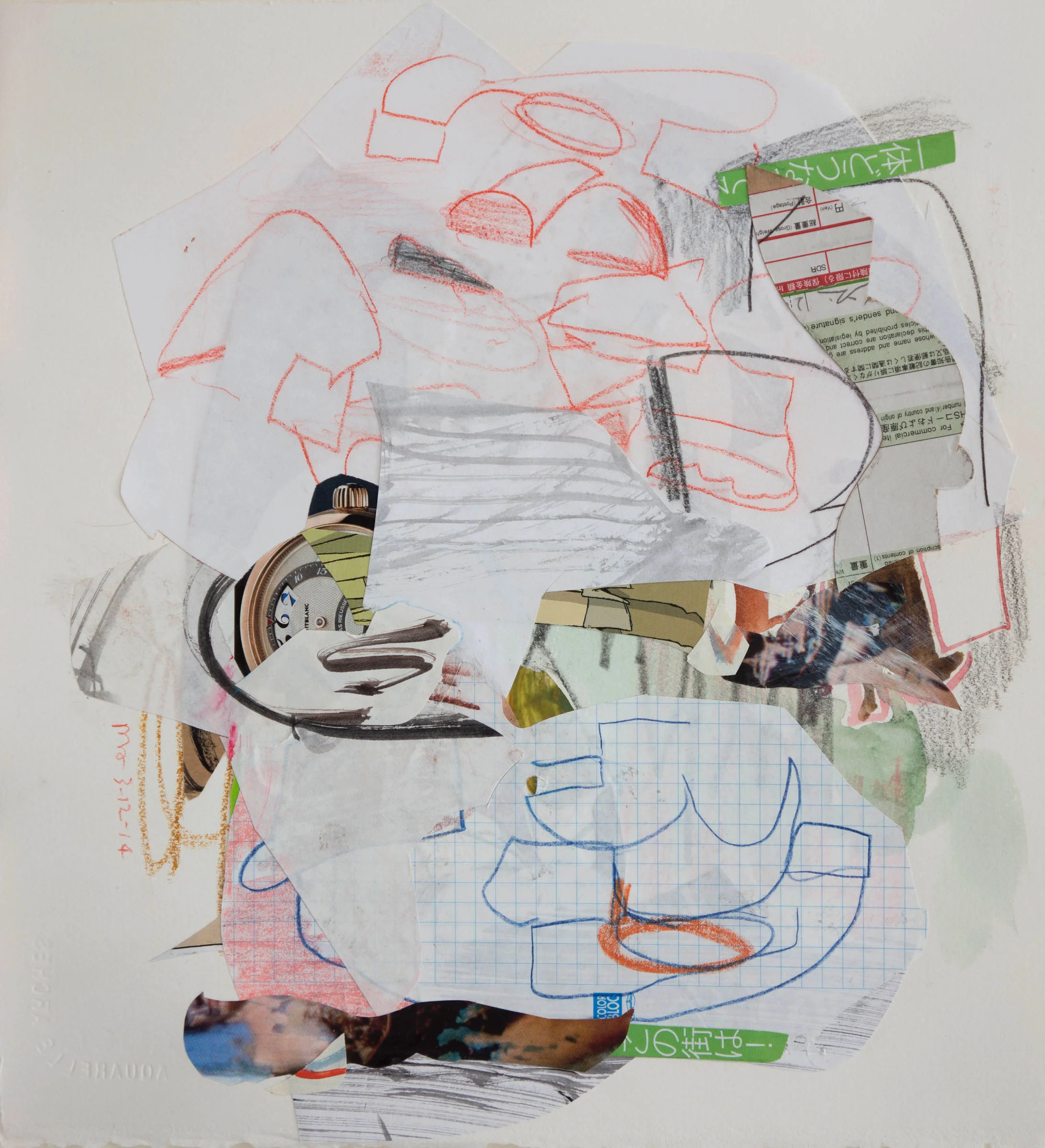 i've incorporated some images cut from the vintage 1990's anime book i just received form tokyo. i love the aesthetics of these little anime figures, the japanese text...everything about them. they seem to have inspired a lighter, more playful feeling. mikela also had an excellent day so far. we're usually totally in sync, she in her office, me 500 ft. away in my studio.
