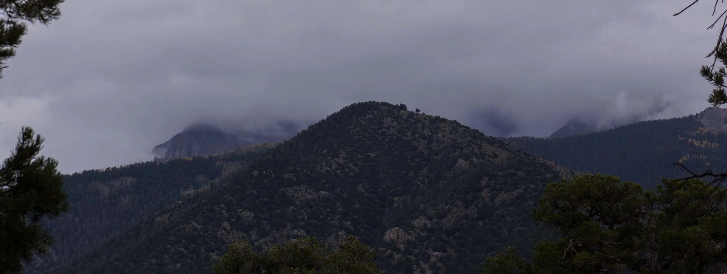 the wind was howling all night and when we awoke the 14k mountain peaks had running dark clouds shrouding them. the air was colder than it's been and the forecast calls for temps hovering around freezing tomorrow night; our first freeze.