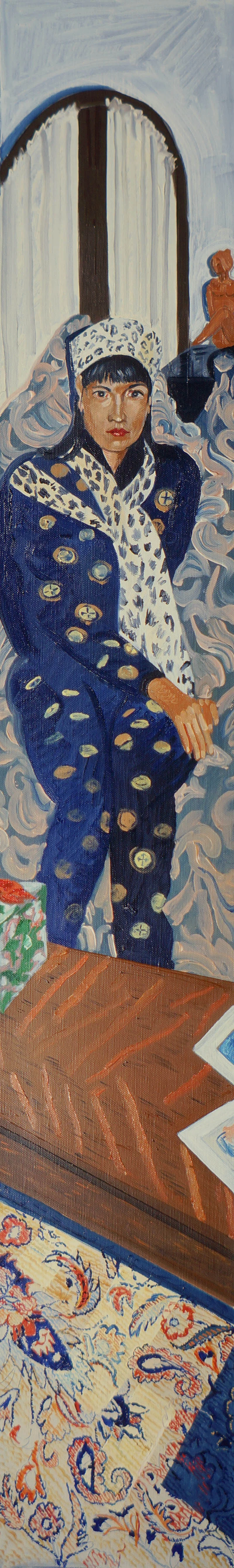 morning post: an art consultant in L.A. who represented my work 20 years ago recently sent me an email wanting to return a set of transparencies of my paintings of interiors from that period. they arrived via FEDEX a few days ago. i haven't had time to digitize them, so i'm shooting them by placing them on a light box. not perfect, but they will give you a peek at my work from that pre-web world. most of the originals are in private collections in houston. below: 2 examples of the paintings. comparing them to my current parade series, i'm finding the parade paintings far more interesting. they're obviously affected by the abstract collages i've done over the past few years, and have, i believe set me free from the pitfalls and possible restrictions of making realist paintings.