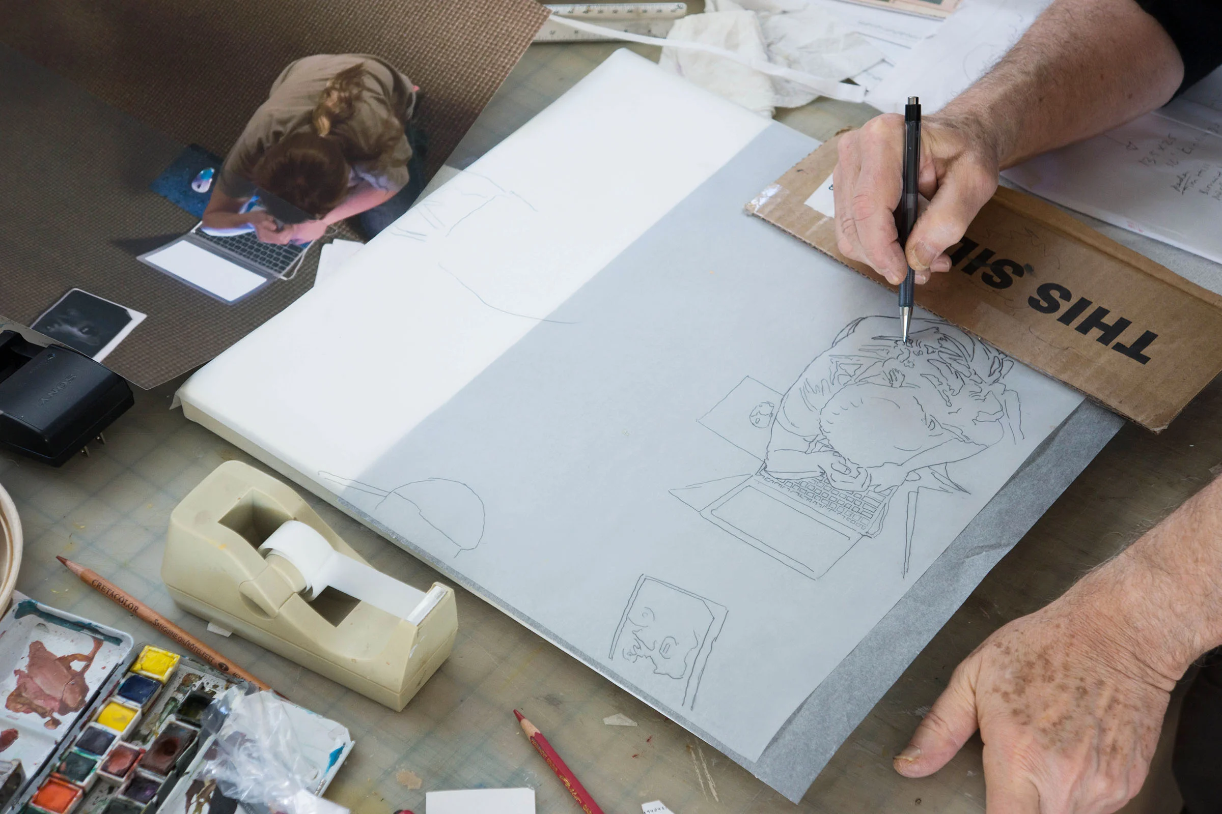 2:48PM UPDATE: i transferred the drawing of the new parade 20 image to the canvas, and should be able to start painting tomorrow morning. just got off the phone with an old friend i haven't spoken to in years: ny sculptor john duff. he's having a pop up show on canal st. in march, and mikela & i will try to make it.