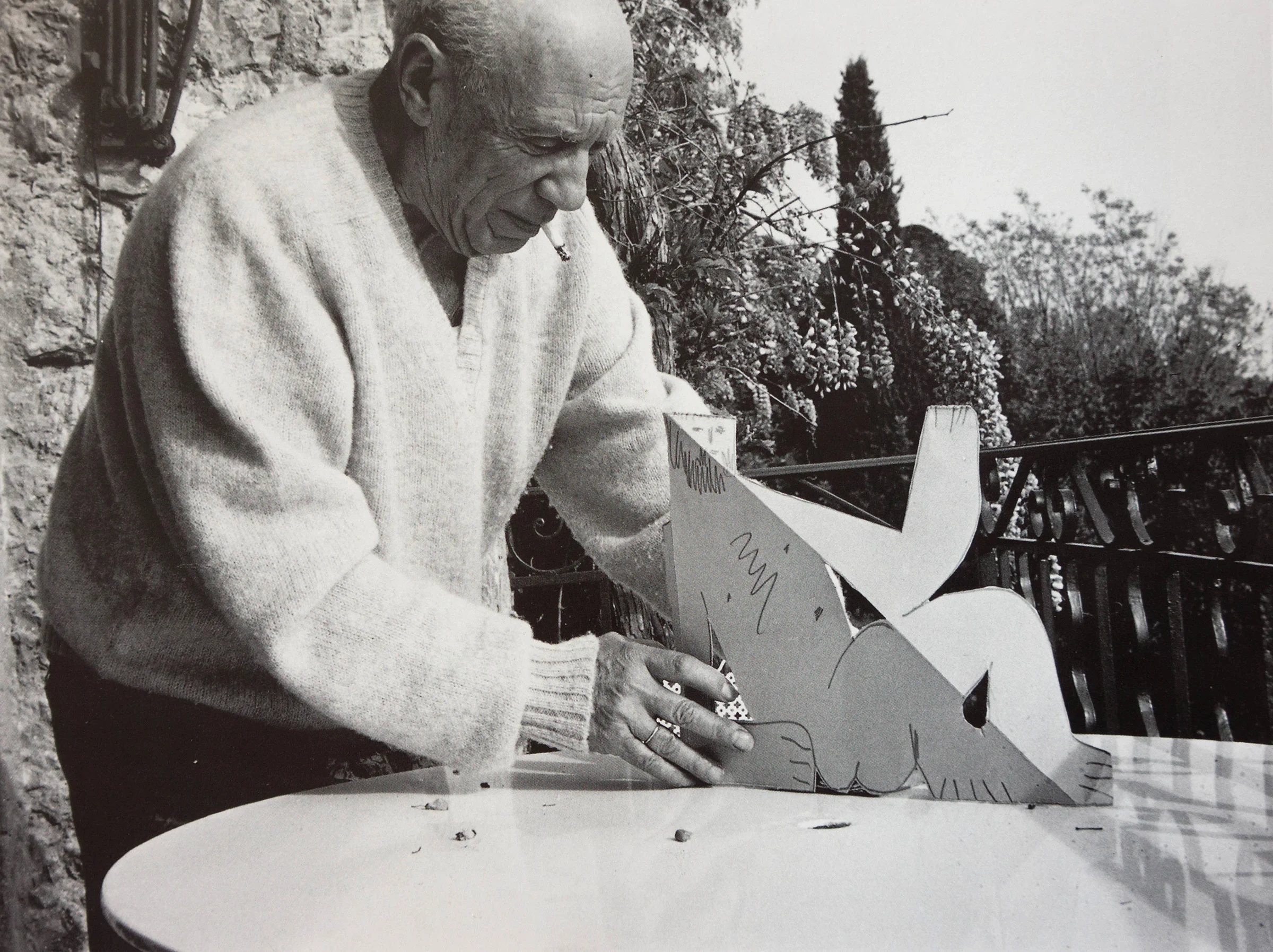 picasso ca. 1964, at 83, with a maquette for "le dejeuner sur l'herbe" in mougins