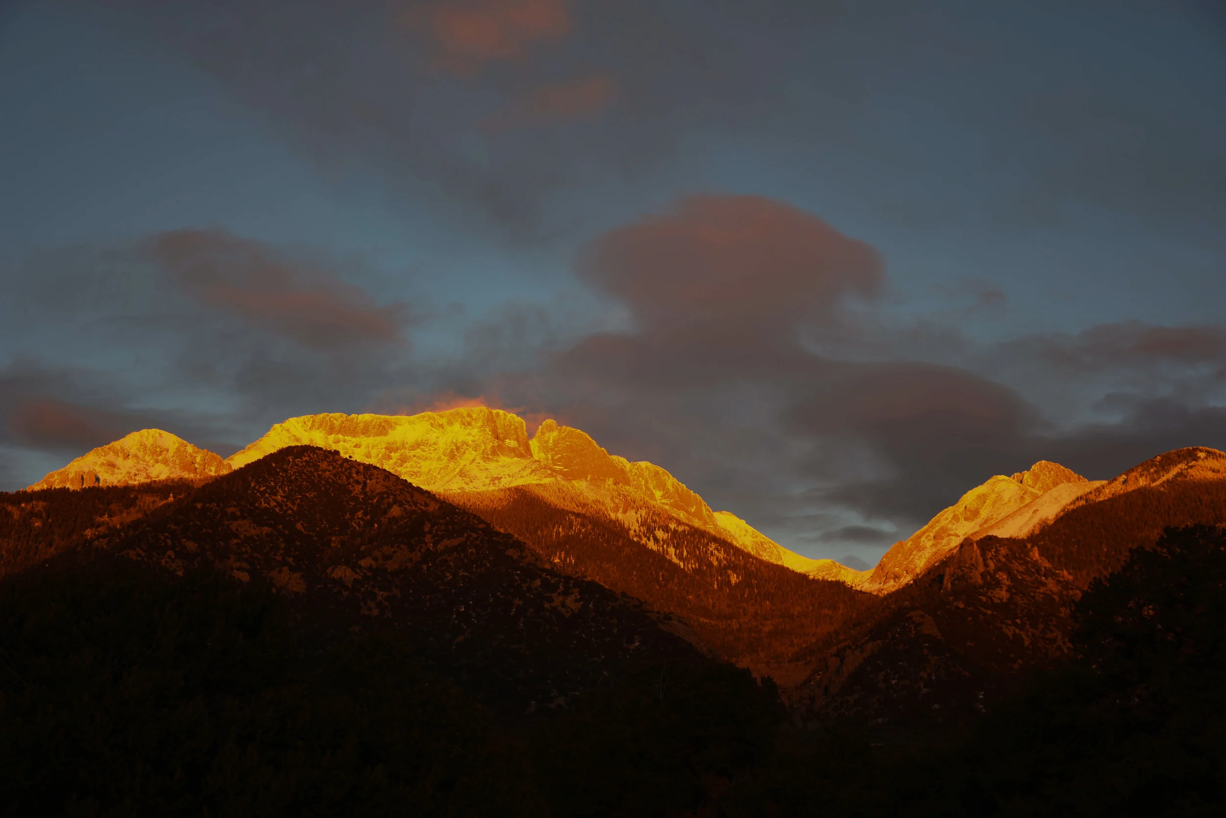 4:58 pm: for the second day in a row, as we looked east from our deck, we experienced a spectacular few minutes just before sunset, as the sangre de christo peaks glowed orange/red