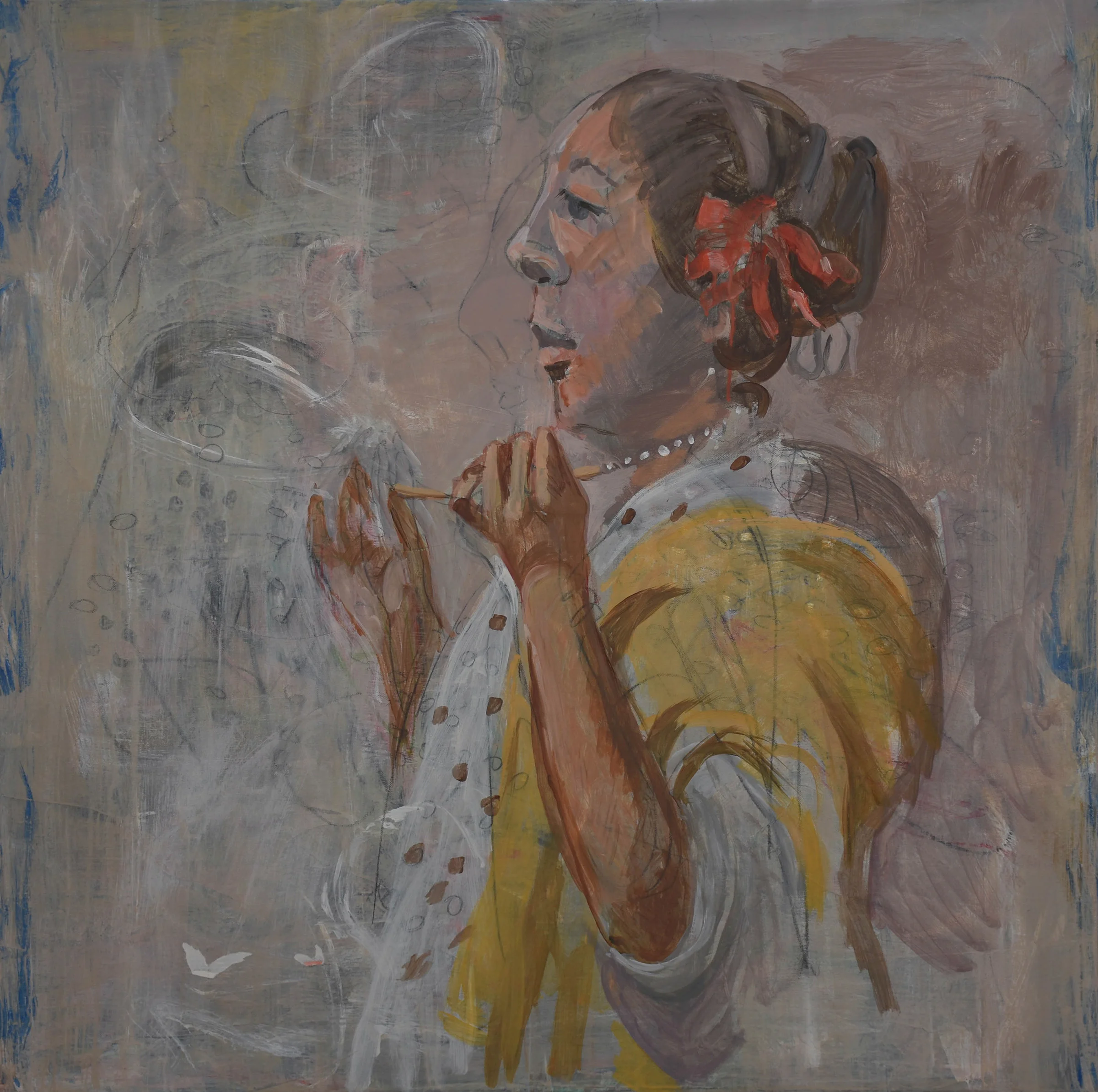 so it was with some trepidation that i entered my studio today to continue work on this painting. as part of the process of taking it further, casper was painted over, and only shows up if you really look for him. but i do feel i had a good day, and grey 5/the lady with the pearl necklace improved significantly.