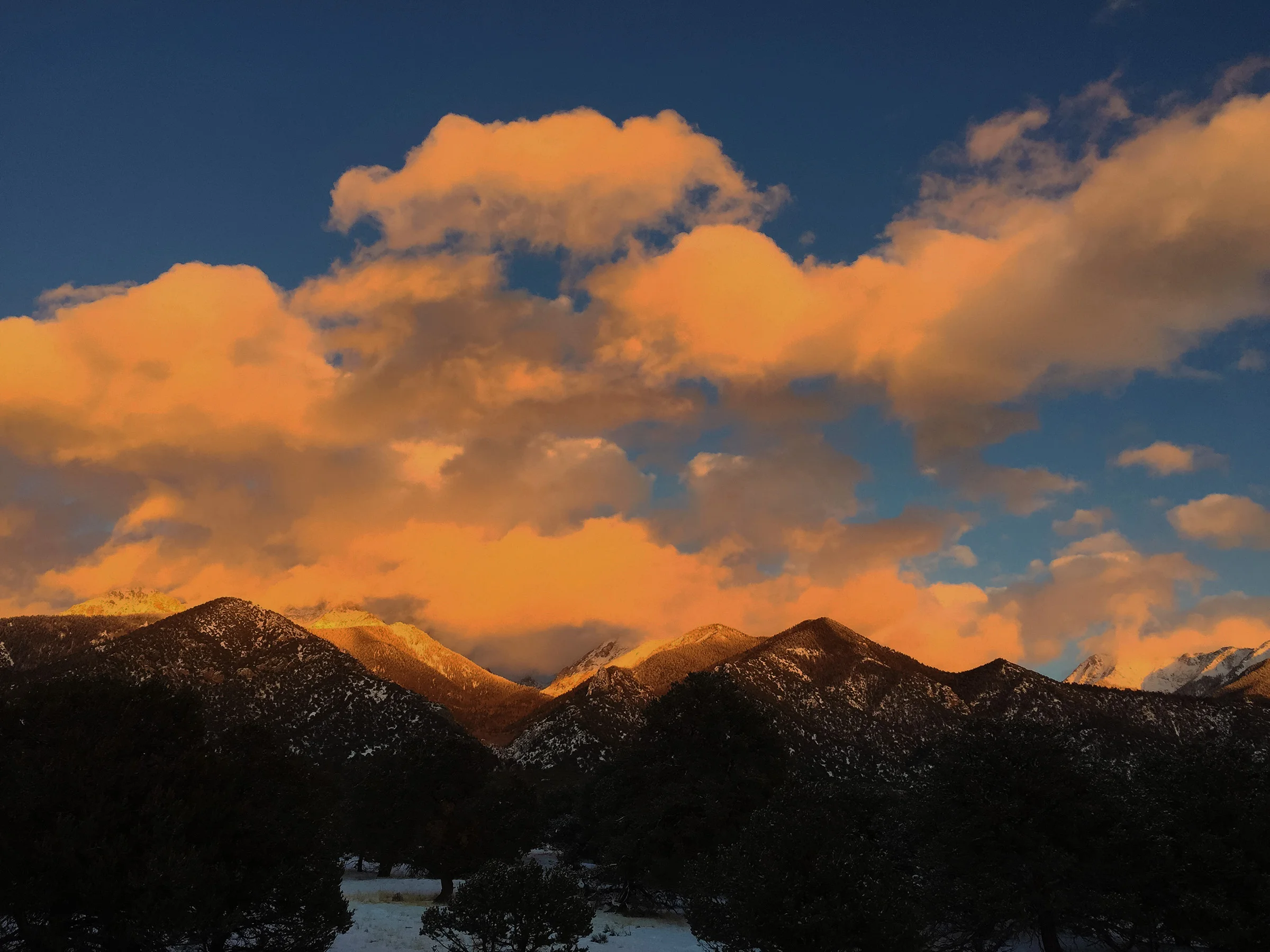 after a couple of inches of snow fell within an hour, the sun broke through at sunset.