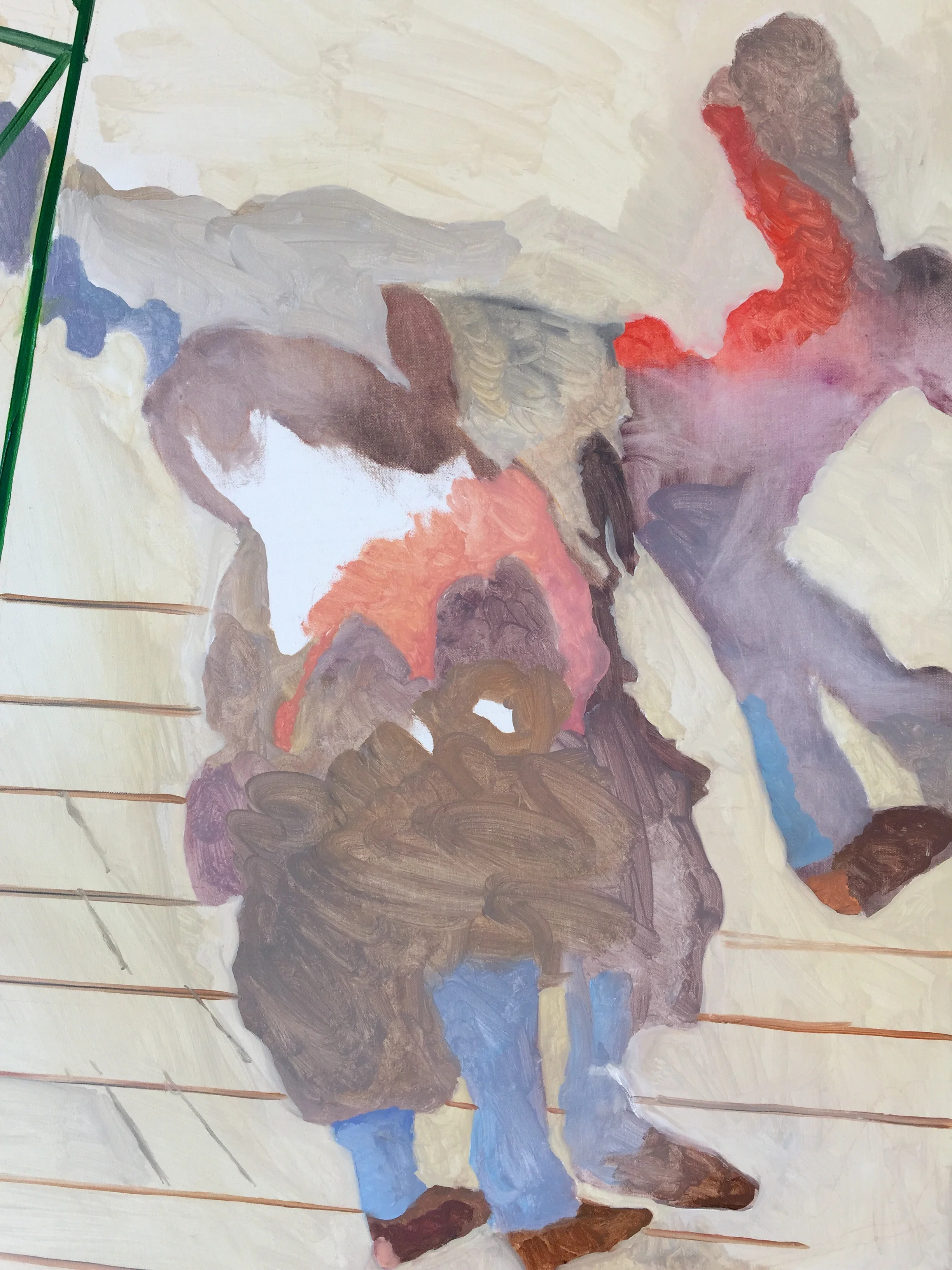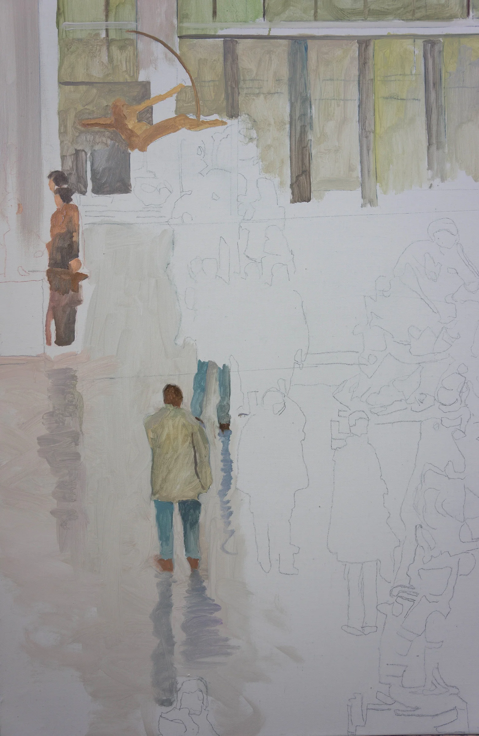 4:50pm update: below is as far as i went with parade 36. each new painting has it's own life, it's own presence, and draws different things out of me, stretches me. moving around the surface with my brushes is, at the same time, provocative, pleasurable........i've never painted the interior of the MET, which has been like my second home. i've shot countless photos from this particular vantage point because whenever i see it, i get very excited about it, visually. so i'll be able to work more on it tomorrow and then i' have to be out of the studio through thursday, and can resume work friday 3/27.