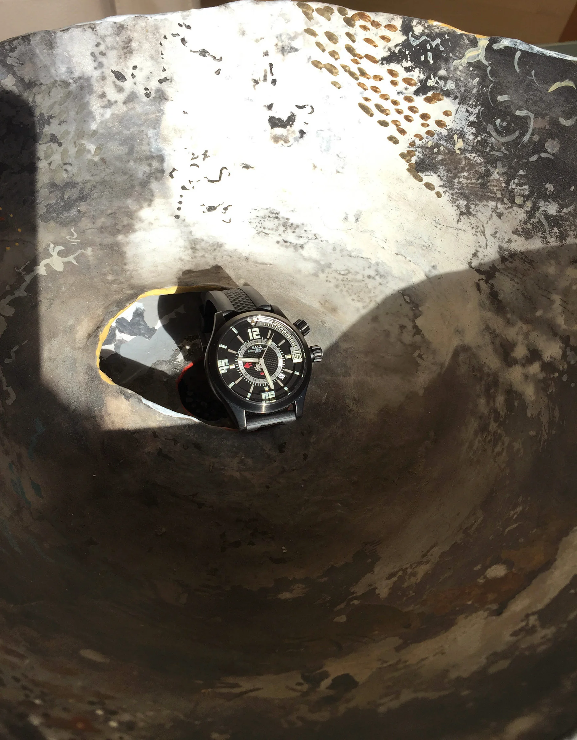 below are a few of her arrangements, which change regularly, especially after a clean up. if you make them full screen and mouse over, i've written short descriptions about each one. bottom right is a temporatry arrangement i made yesterday while sitting on our couch to meditate. my new ball watch sits in a ceramic bowl created by houston ceramic artist susan watt and painted by me.