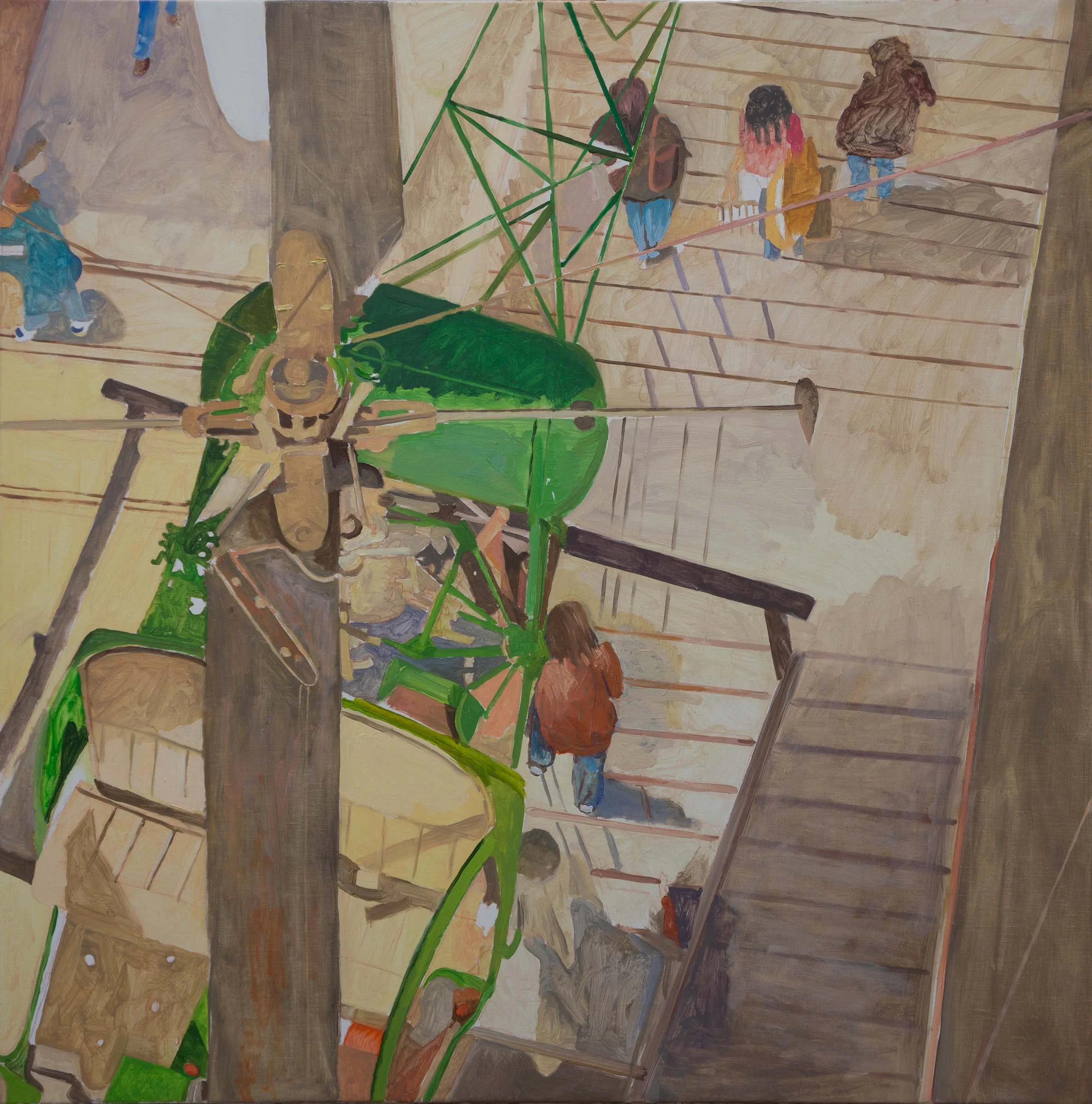 2:30PM update: i feel good about today's changes to parade 29. yesterday's and today's versions are on row two; today's palette on row 3. perhaps the biggest change is in the figure to the right of the helicopter and the figure furthest to the left in the upper central quadrant. as well, the lower 'copter blade has had some subtle touches of color introduced, breaking up the grey mass that it was, and the shading on the stairs in the lower right quadrant has been lightened.