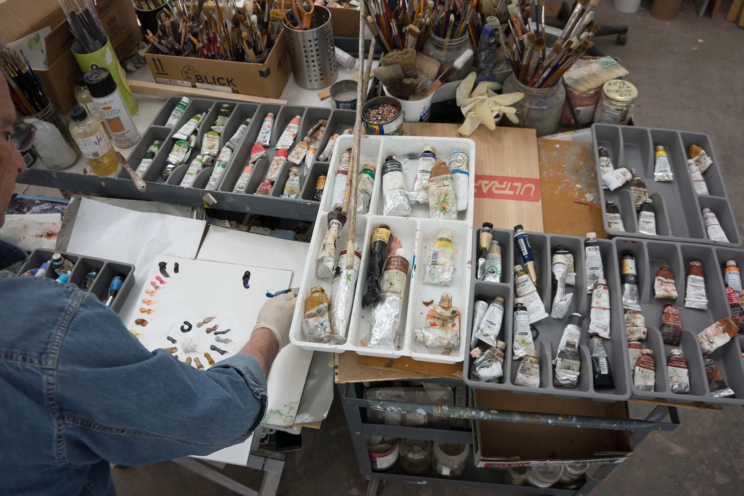 squeezing out my colors onto the palette this morning.