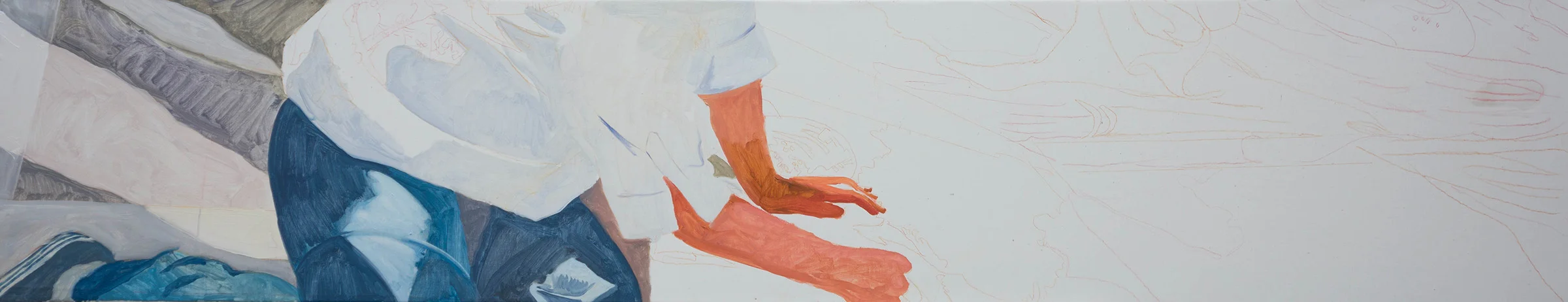 when i entered my studio this morning, after being away for 2 days, i confirmed with my first glance that parade 28 was resolved. so i'll be preparing to start work on parade 30, which is already stretched and is 12"x60". the imagery derived from photos taken in downtown denver 8 or 9 years ago, of a street artist drawing in pastels on the sidewalk. more a bit later, once i've begun painting.