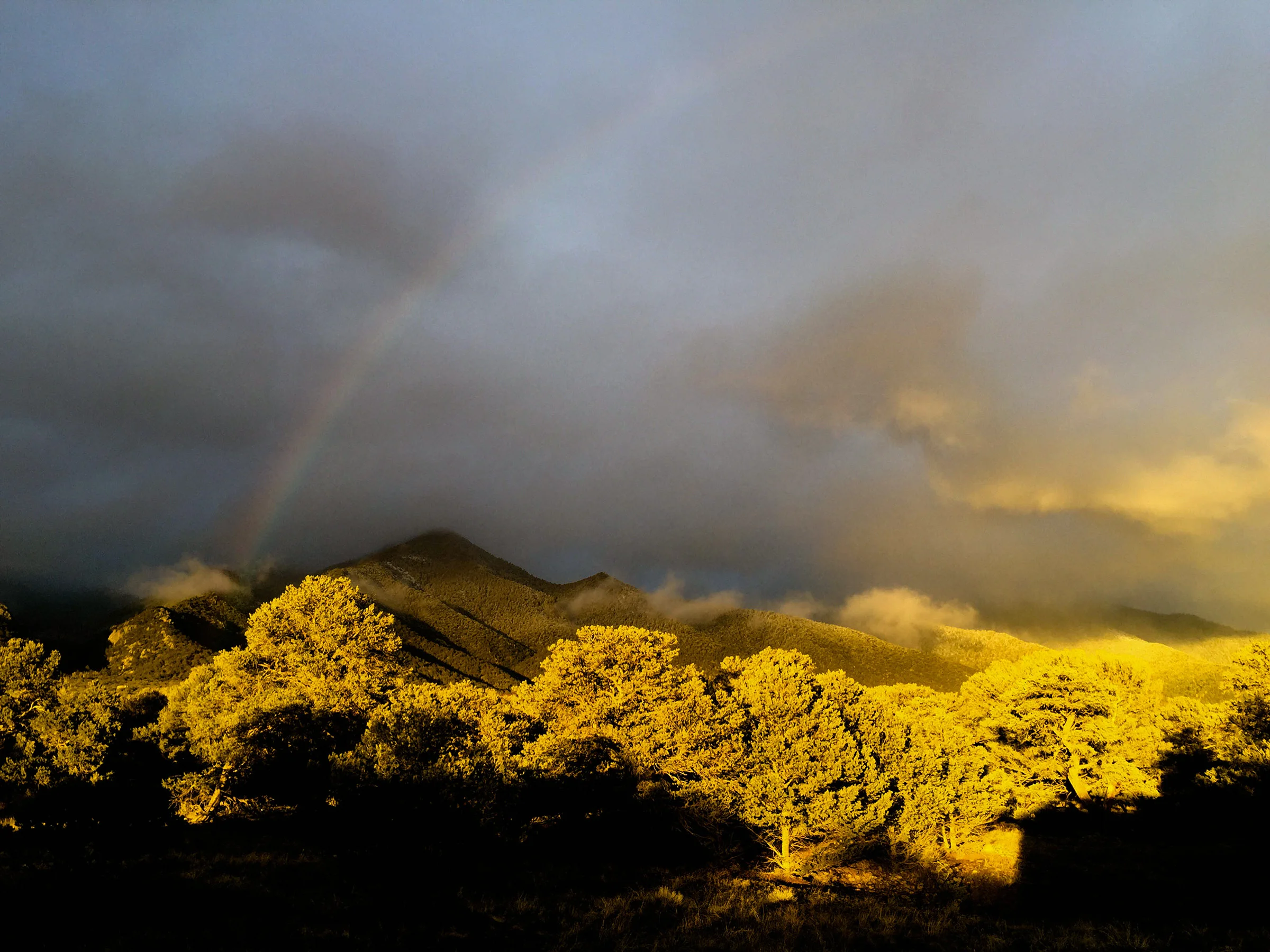 there were storms yesterday around 6. then there was a rainbow. then we took a walk at 8 and the sky was rich and when we returned home, our house was beautiful against the night sky.