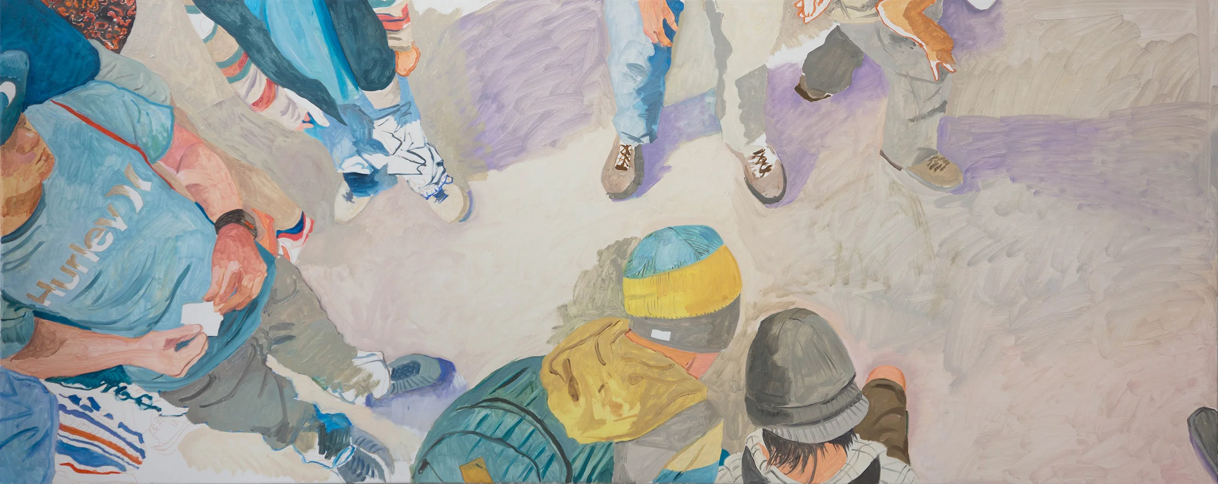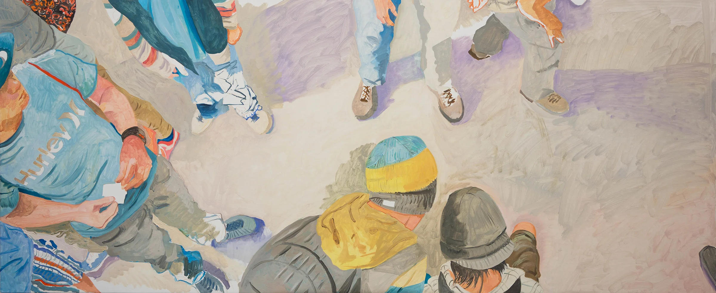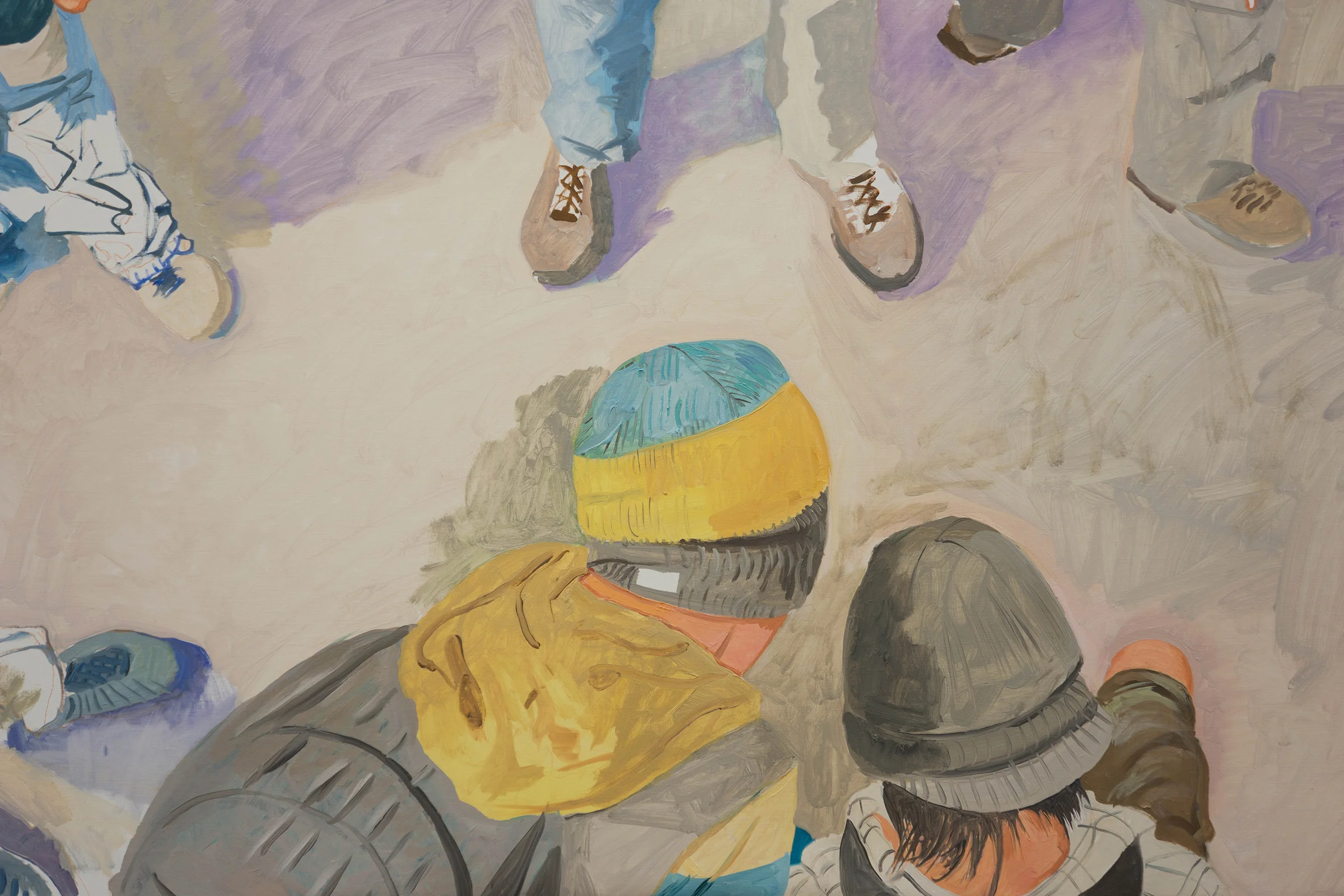 2:49 update: PARADE 39 RESOLVED? i'll know better tomorrow morning when i enter the studio. i may lighten the blue jacket on the upper left; now that everything else has been so finely tuned, it stands out a bit too much as i scan the painting from across the room. aside form that, i feel like i've done good work today, and that parade 39 now sings! i especially love the detail below, on row 2, right. a language....a shorthand is evolving that balances abstract form with representational specifics.