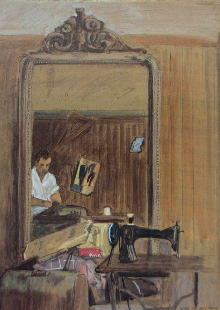 tailor shop in chania, crete ca. 1972 gouache on paper