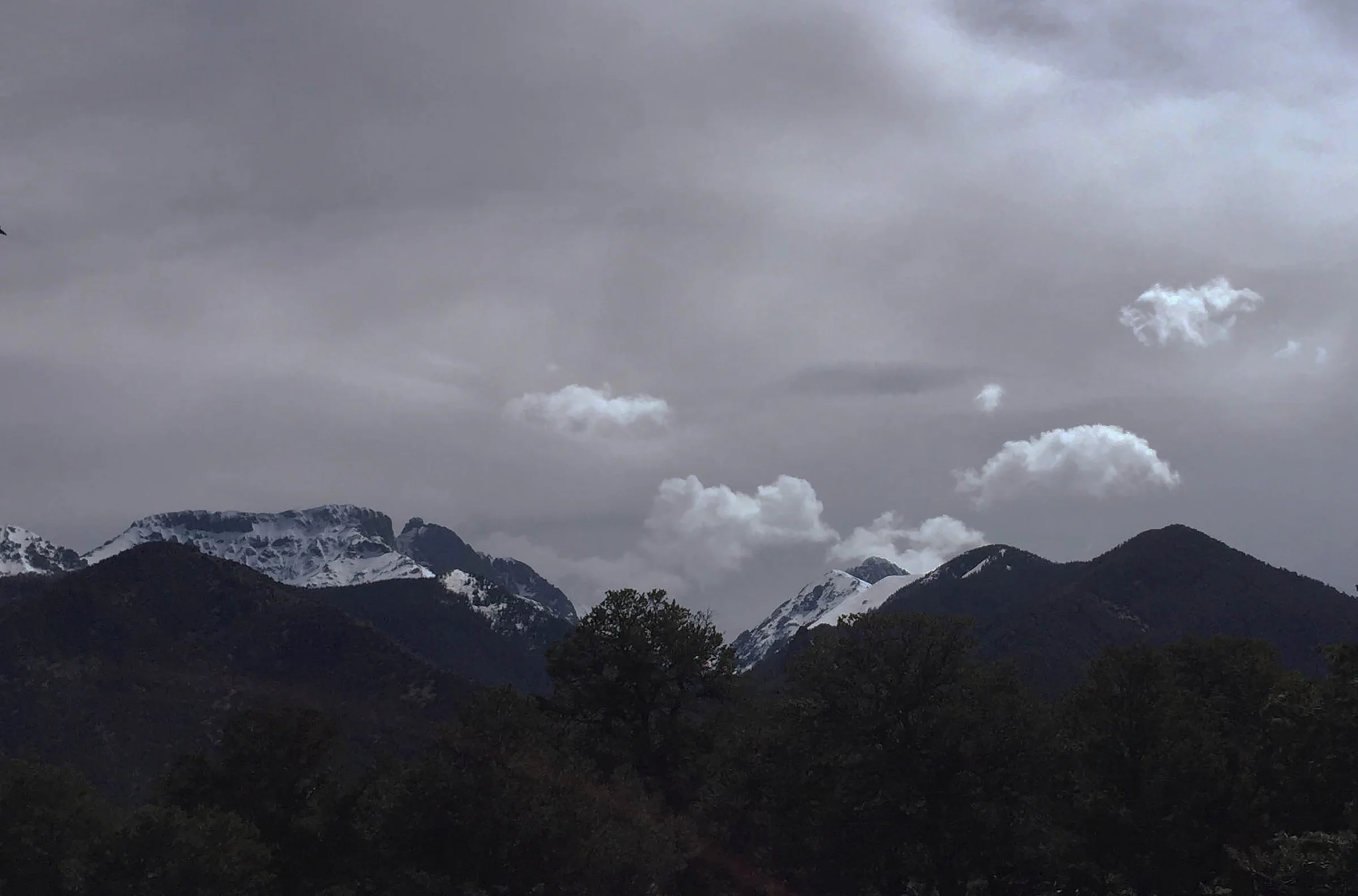 1:08 pm update: an approaching storm. right and left: the sky to the west. center: to the east