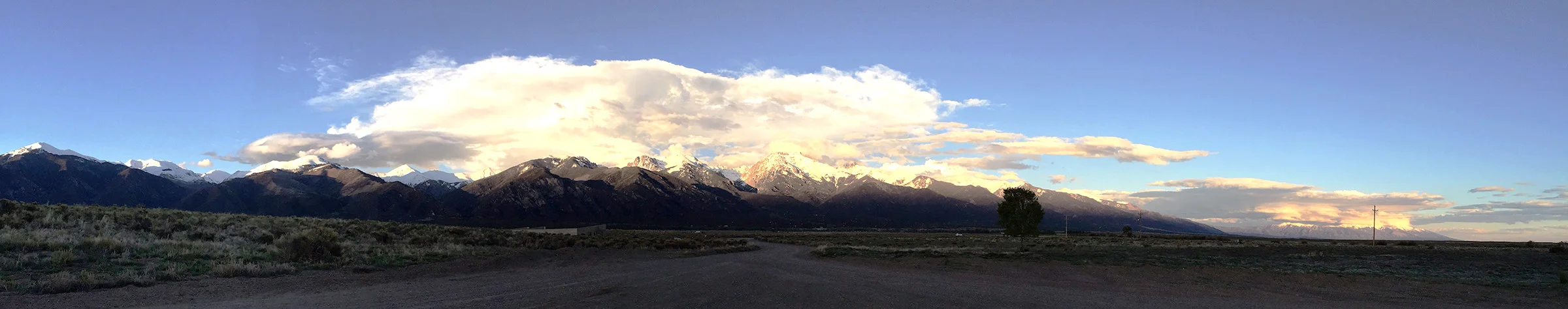 8:30 am update: after the thunderstorms yesterday, the sky cleared and we took a great walk up north crestone creek trail. at 8, we went to a POA meeting 3 miles west of crestone.when we looked back to the east, towards our house in the baca, here's what we saw.