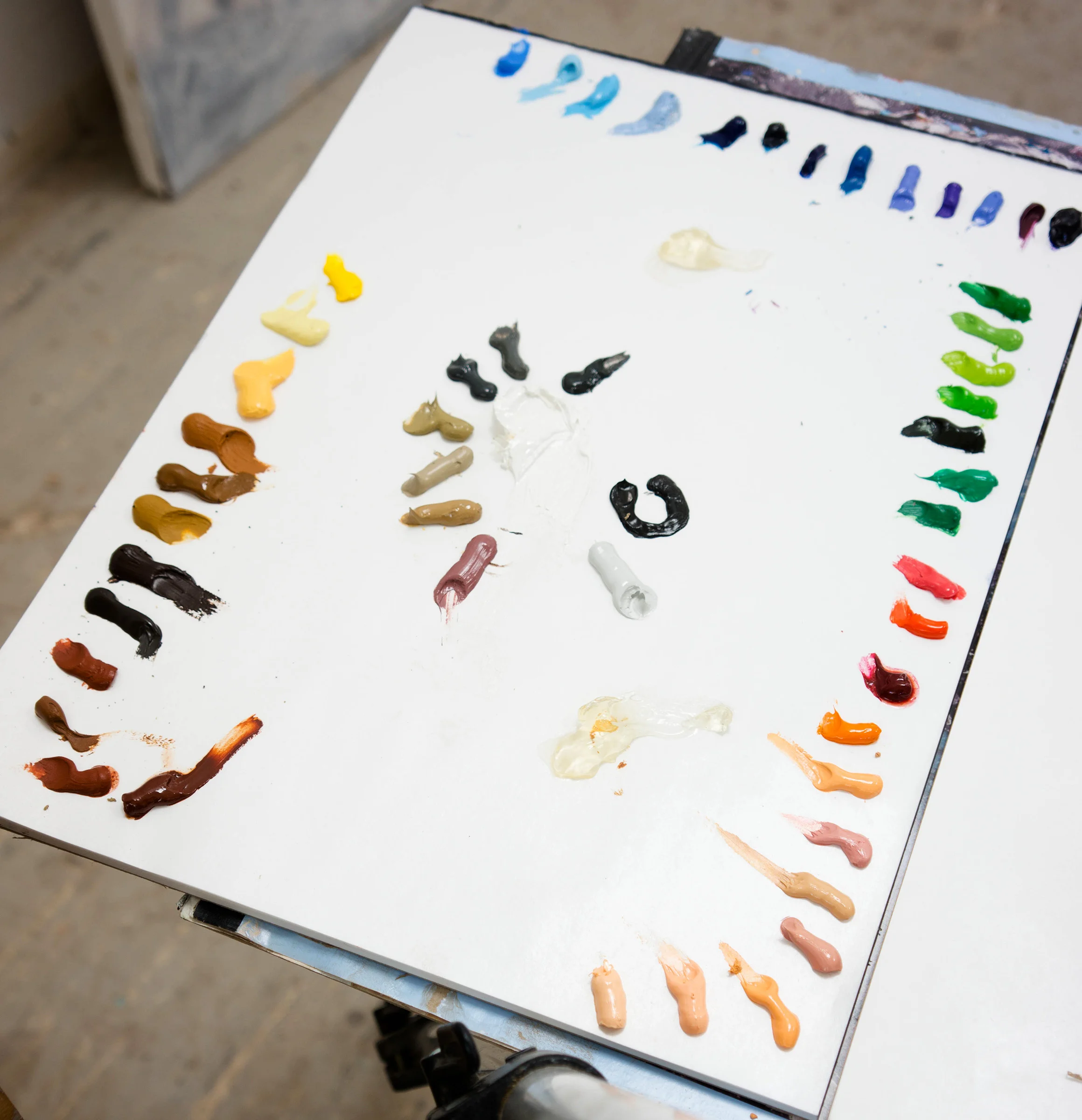 today's palette before getting to work. the flesh tones have names like: teinte char, canton rose and vleeskleur