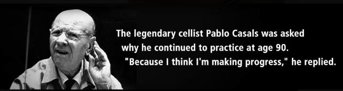 in a parallel activity, i've been making a series of abstract collages (go to the works dropdown menu at the ver top of the page and click on recent collages) with imagery and drawing sourced from my decade long series of plein air paintings (go to the works dropdown menu and click on plein air) and my ongoing study of 11th c. chinese calligraphy master, huang tingjian. the two paths feed into one another, always in unexpected ways, and keep me on my toes. the casals quote below sums up my attitude about growing older as an artist.